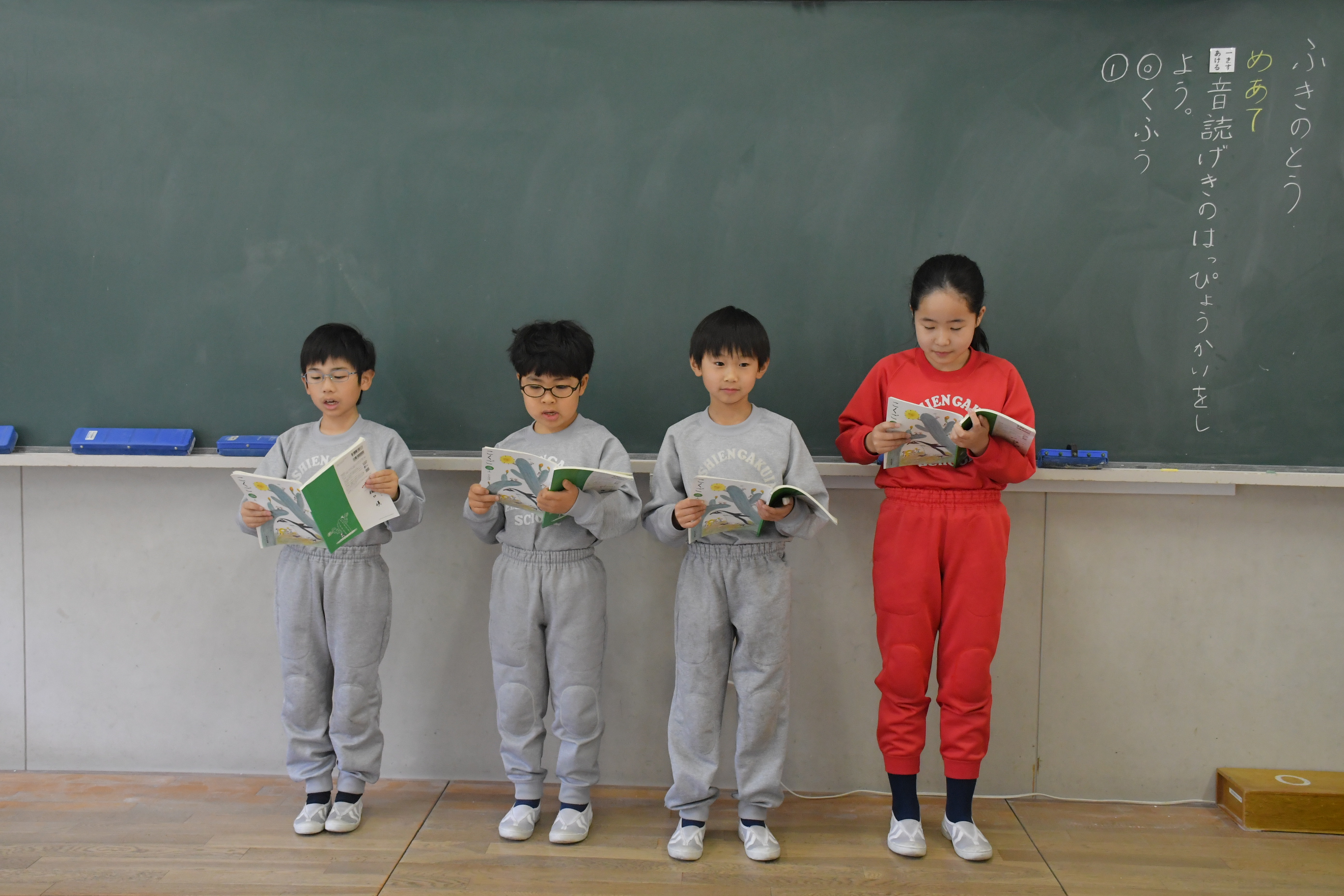 国語科で「ふきのとう」を学習しました。単元のまとめとして、グループで音読劇をしました。発表する子どもたちは緊張していましたが、頑張って発表することができました。また、聞いている子どもたちも集中して聞きながら、各グループの工夫をノートに書き留めました。聞く力の成長が見られました。