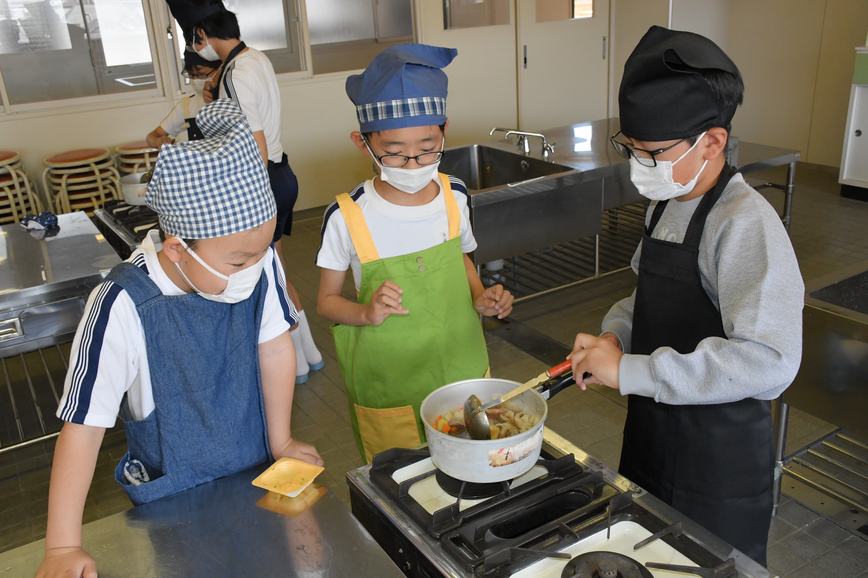 6年生は林間学校に向けての練習を兼ねて、ビーフシチューを作りました。慣れない手つきではありましたが愛情をこめて作りました。完成したビーフシチューを食べて、子どもたちは満足そうな表情を見せました。