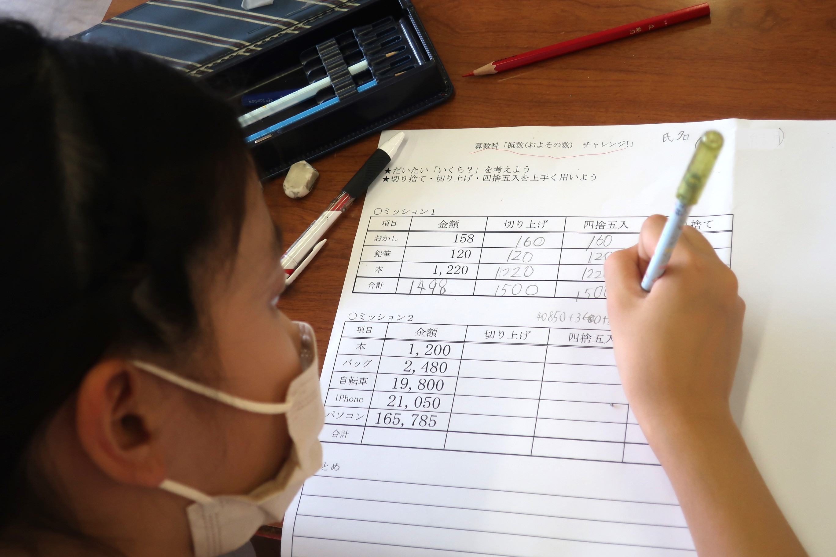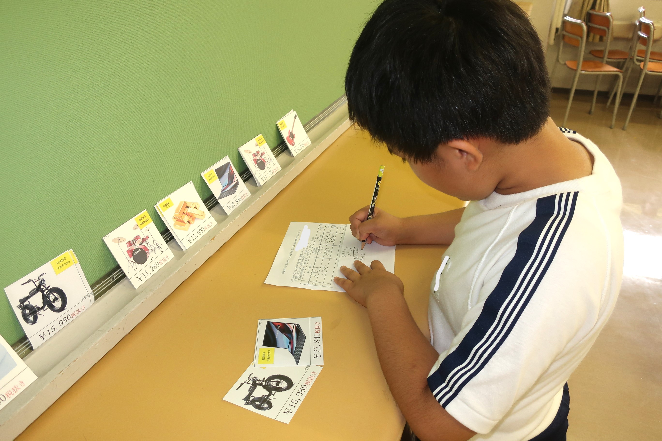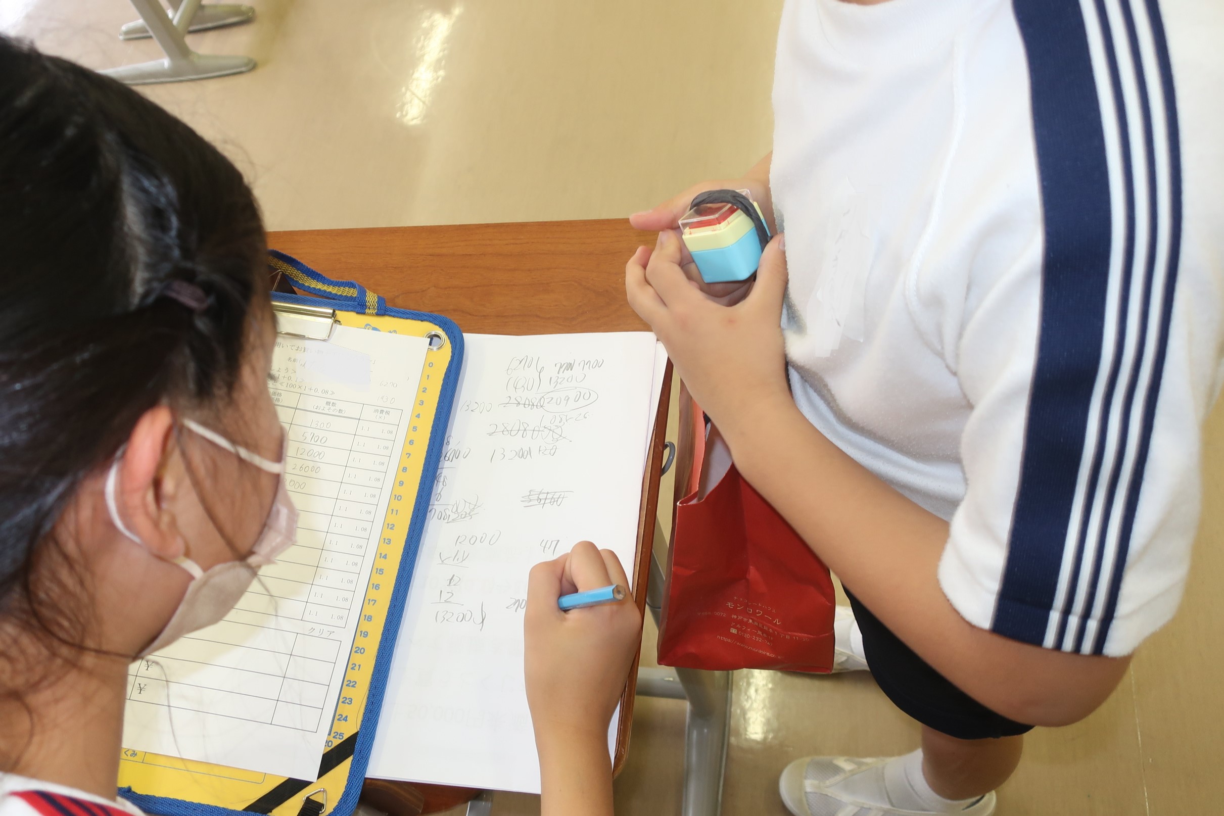 4年生では、概数の学習で「概数を用いてお買い物上手になろう」ということでお買い物ゲームをしました。