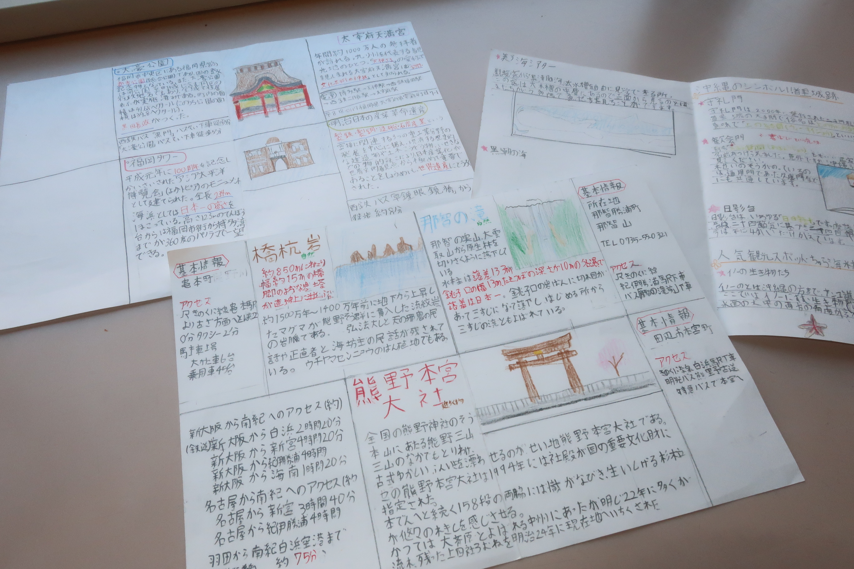 社会では、各都道府県の有名なものや世界遺産、文化財などについて知り、国語では文章をまとめることや読む人に興味を持ってもらえるような文章やデザインにすることを心掛けて学習しました。