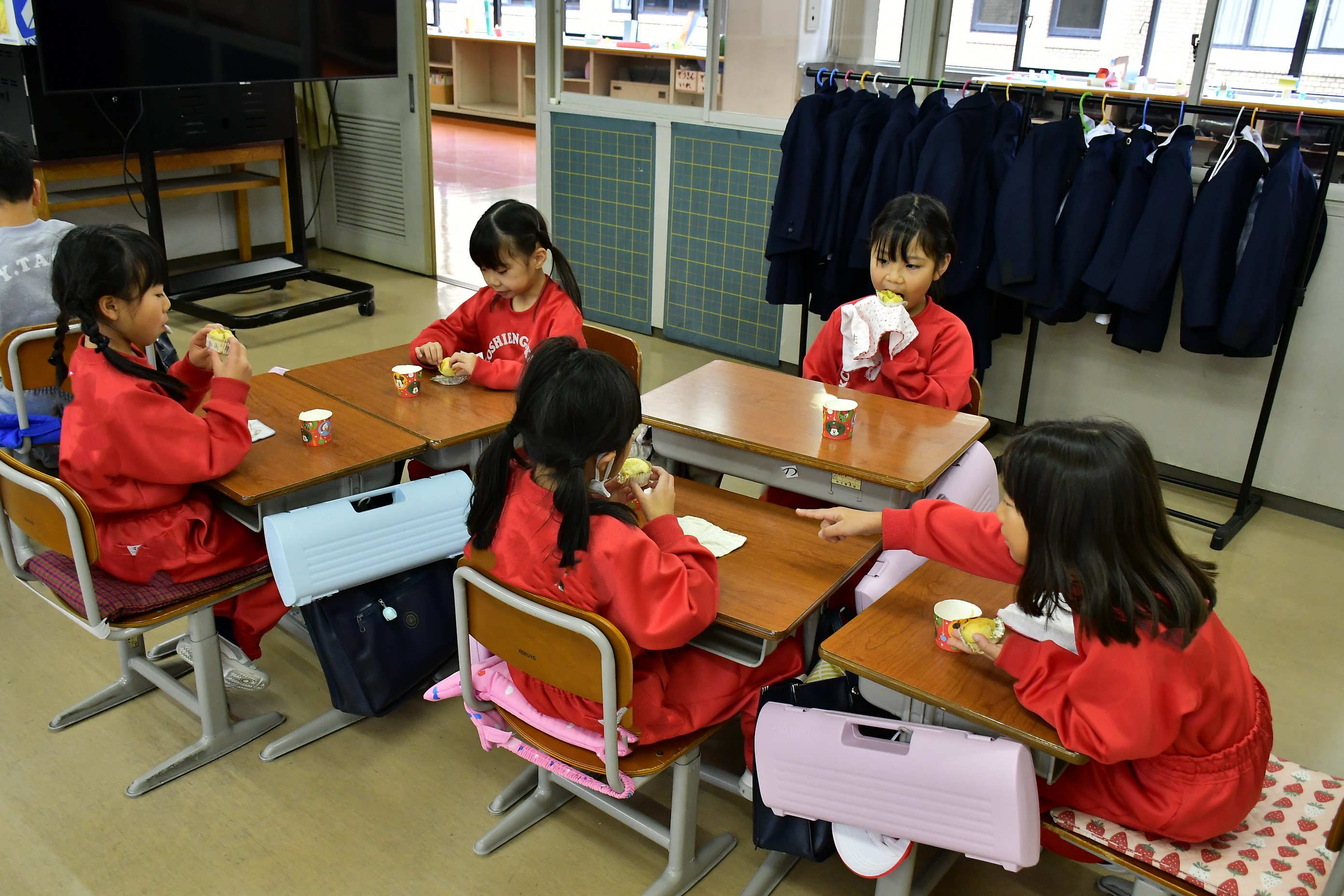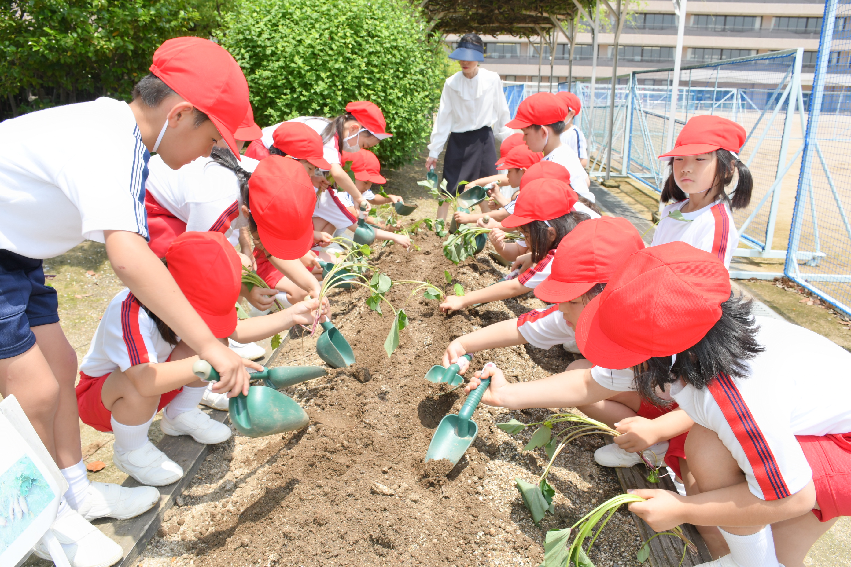 6月初旬にさつまいもの苗を植え、およそ半年後… 学級園で栽培したさつまいもを収穫しました。今夏の猛暑や降雨量の少なさからあまり大きなさつまいもを収穫することは叶いませんでした。それでも子どもたちは、収穫できた喜びを感じていました。そして、本日さつまいもを使って蒸しパン作りを行いました。丁寧に生地をカップに流しこみました。蒸されてできたパンを一口。子どもたちは「おいしい!」「あまーい!」と喜んでいました。こうした経験がこれからに生かされることを願っています。