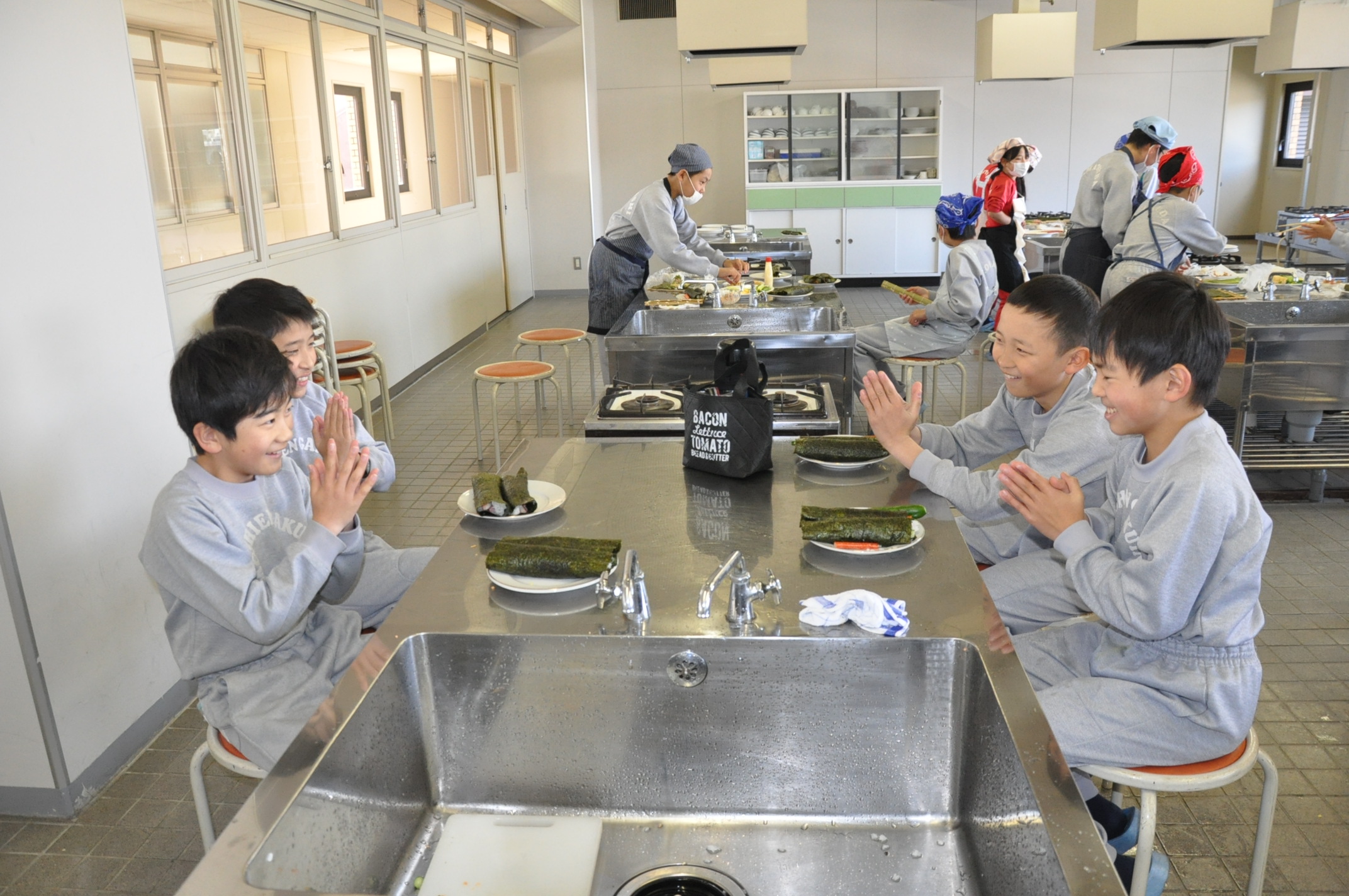 平成30年1月30日(火),家庭科の調理実習で恵方巻きを作りました。
