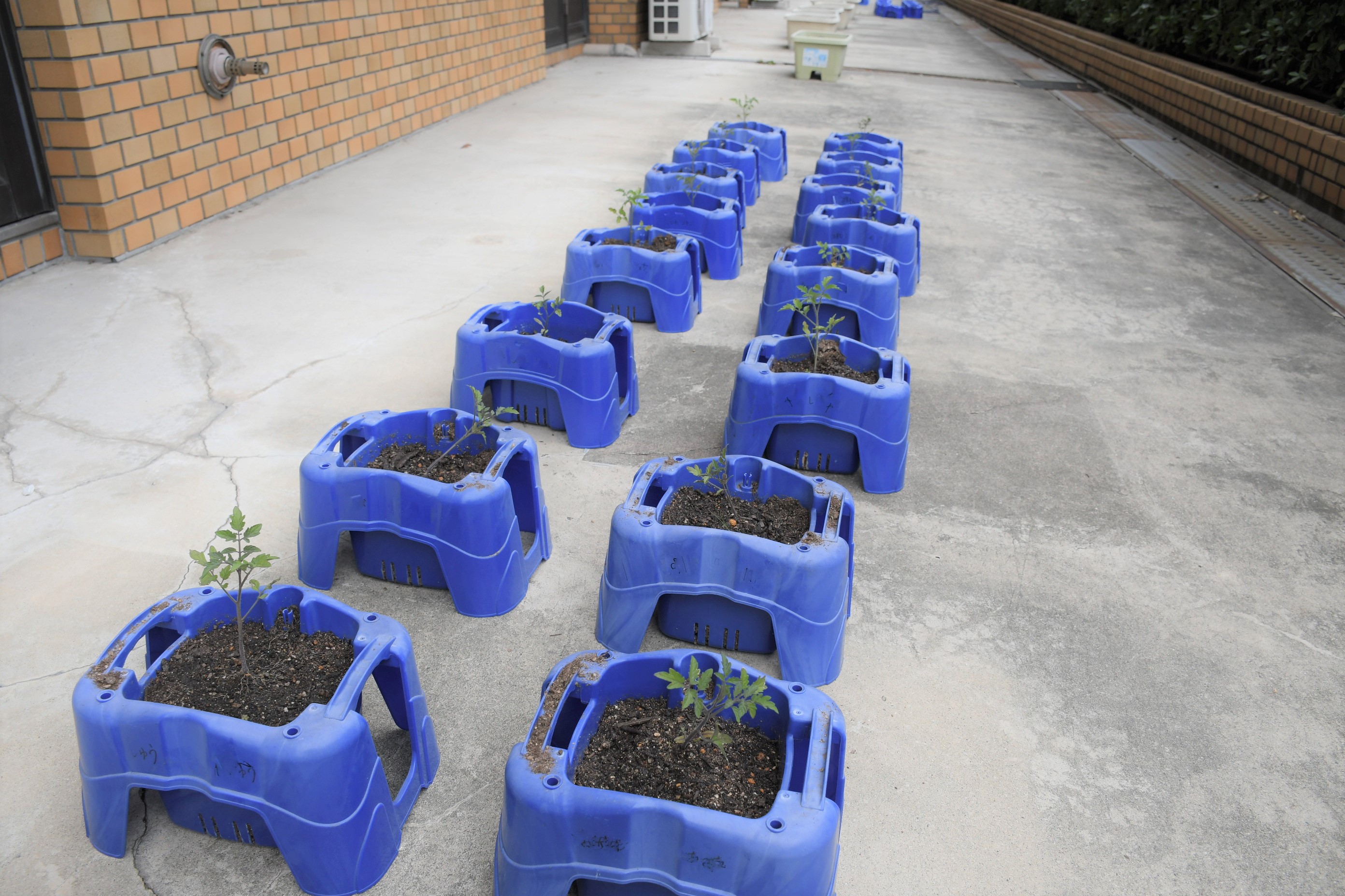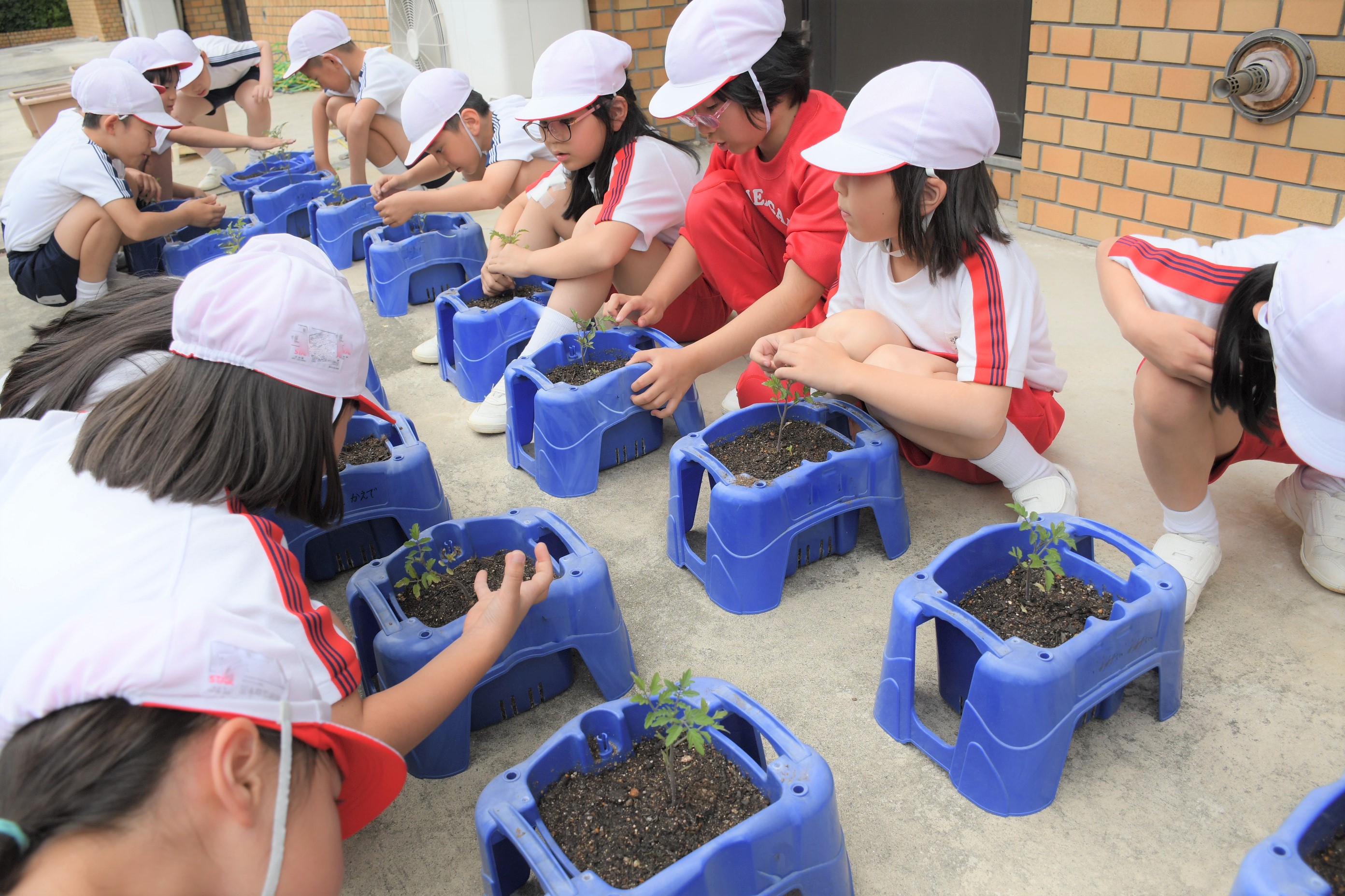 2年生は、一人一鉢ミニトマトのなえを植えつけ、観察しました。