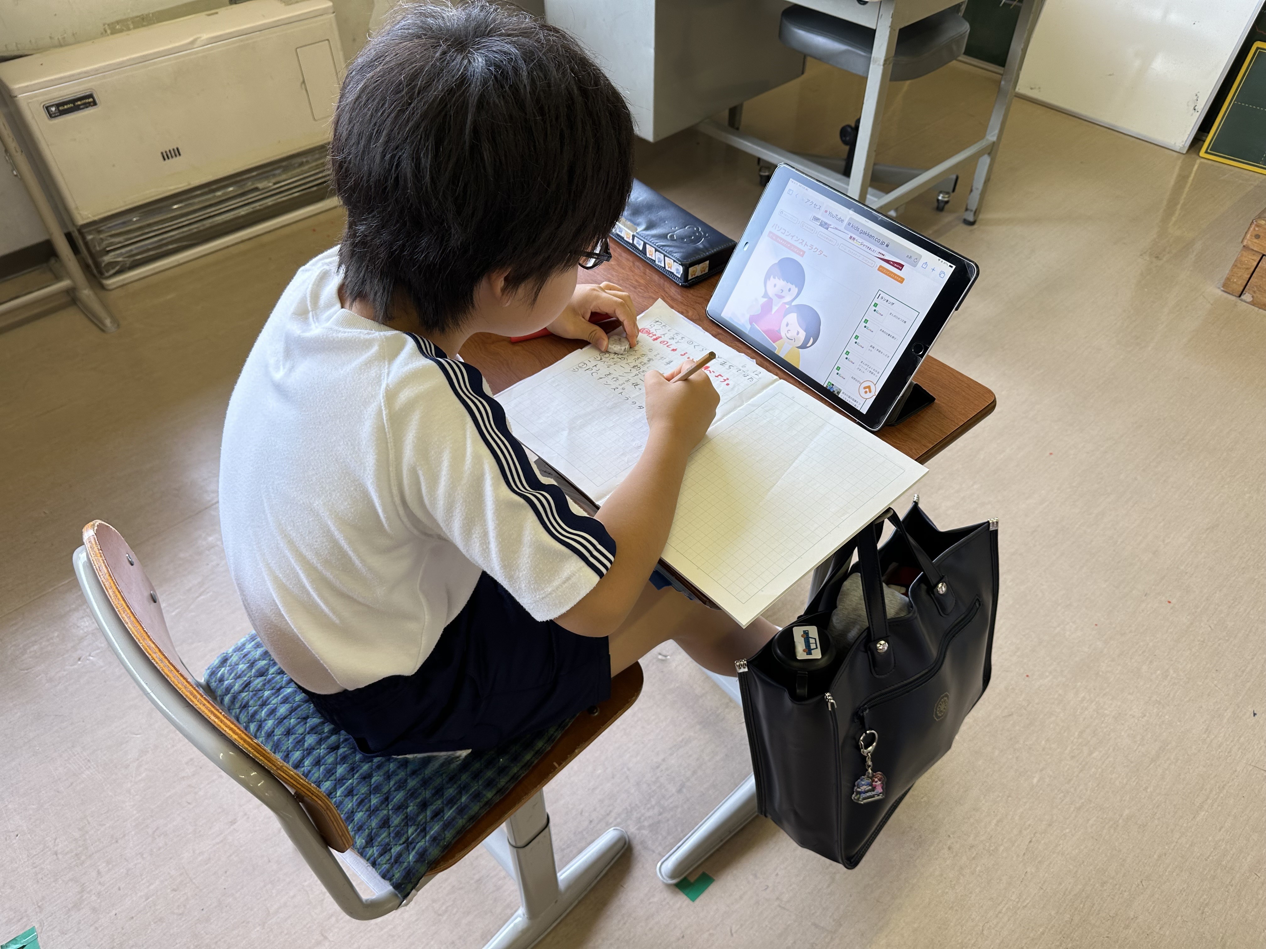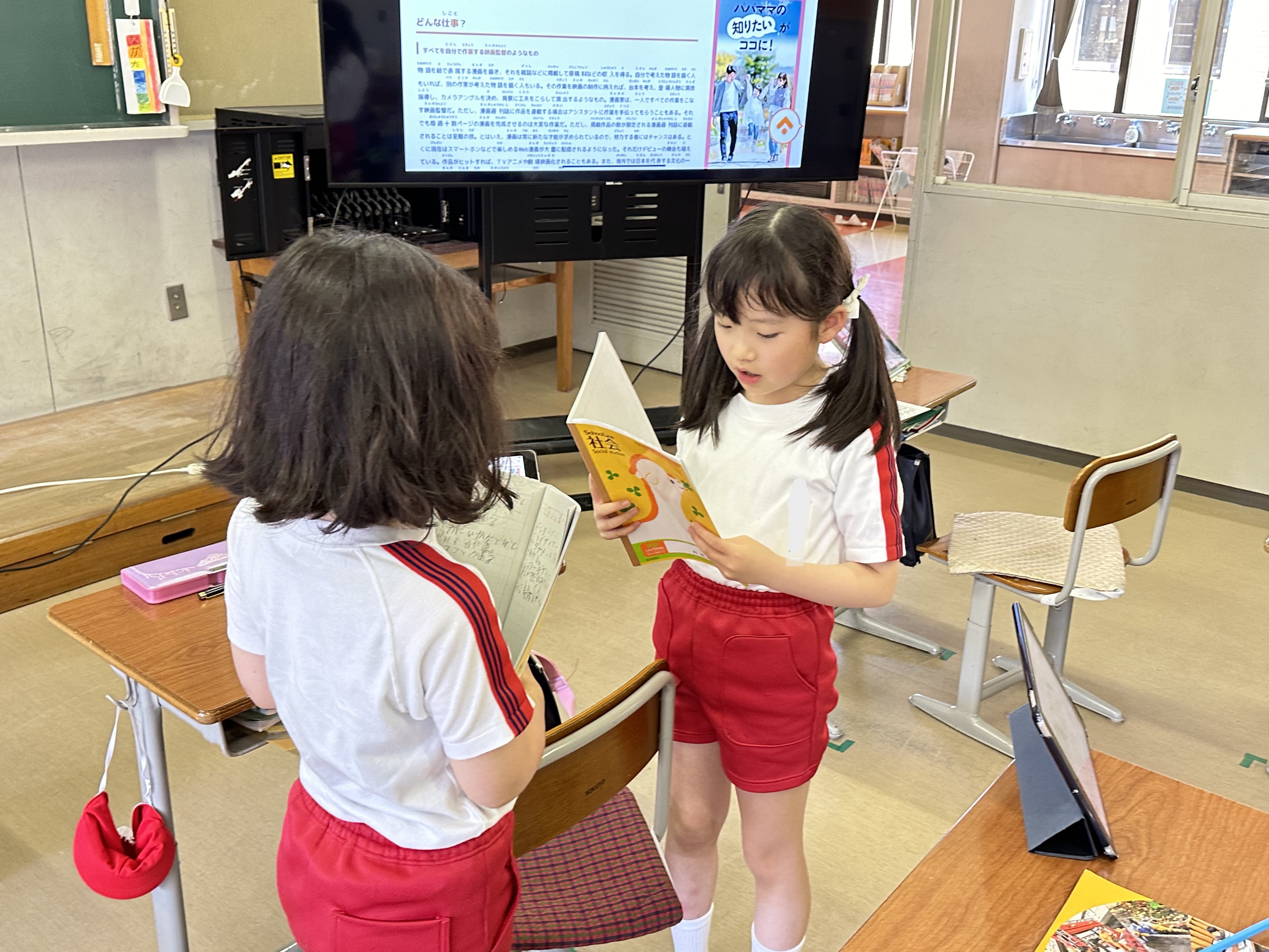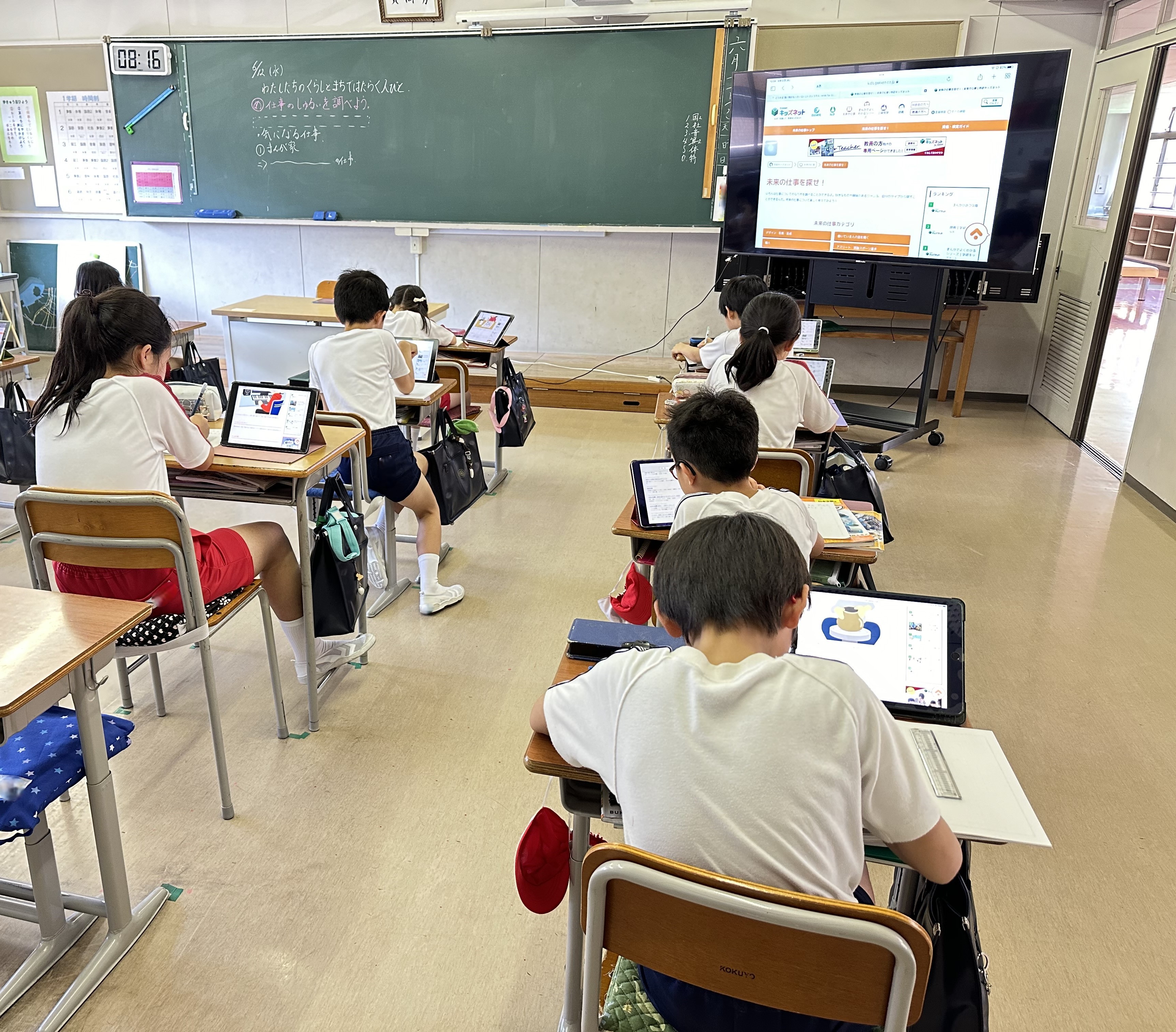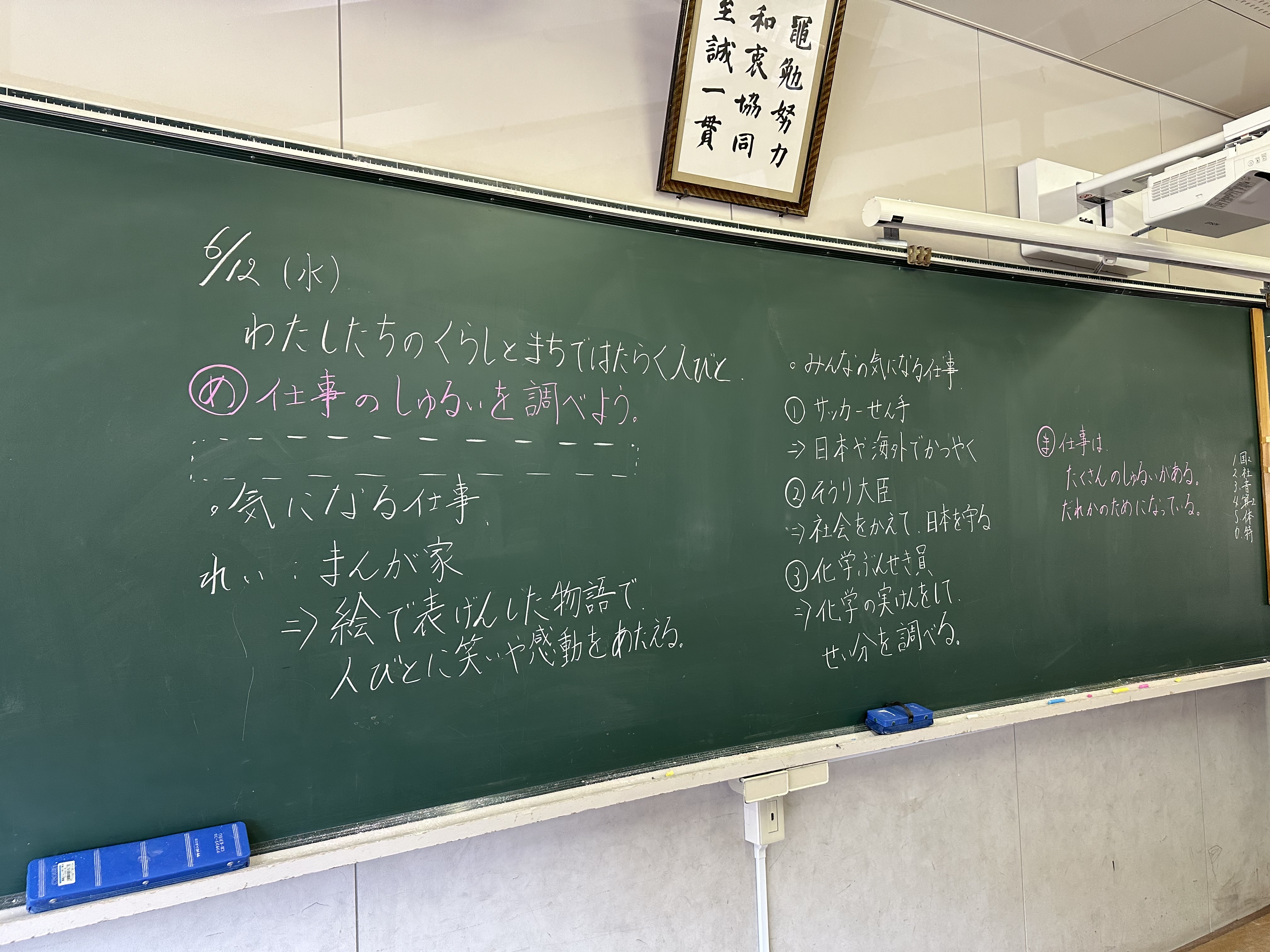社会の授業で「仕事」について学習しました。自分の将来の夢や気になる仕事をタブレットで調べ、ノートにまとめました。友だちとの交流の時間と全体での交流の時間でたくさんの仕事があること、そして、「仕事」はだれかのためになっていることを学びました。