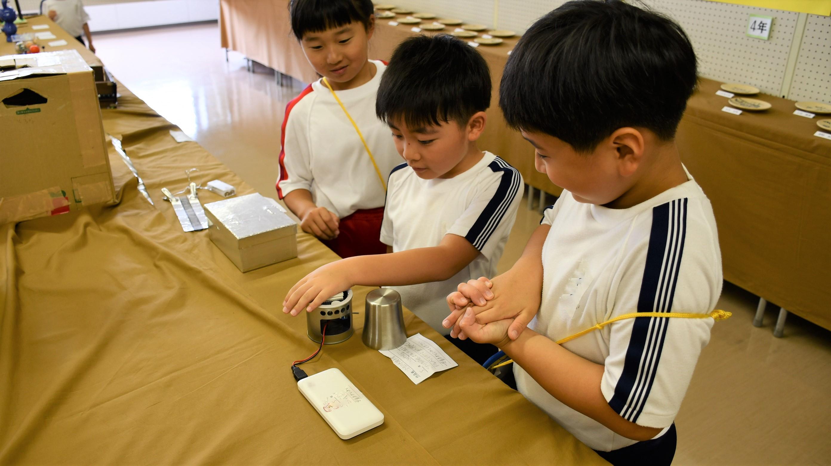 1・2年生で夏休みに作った自由研究の鑑賞をしました。