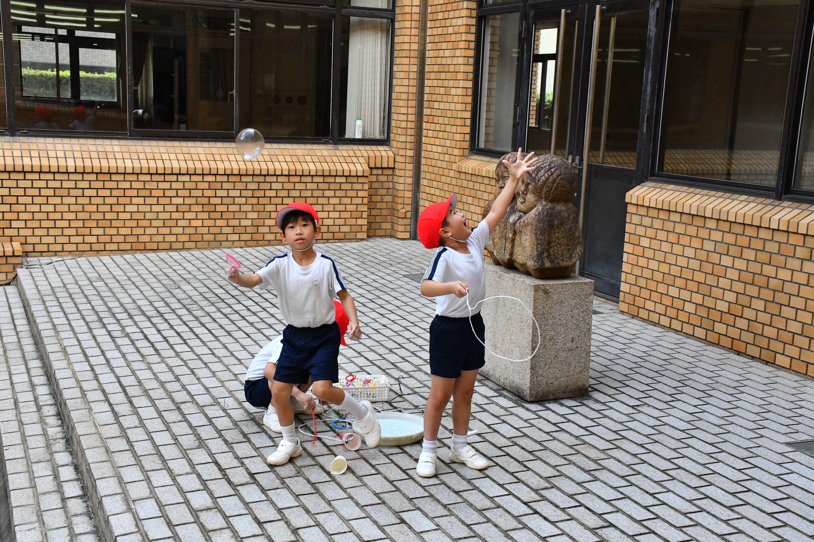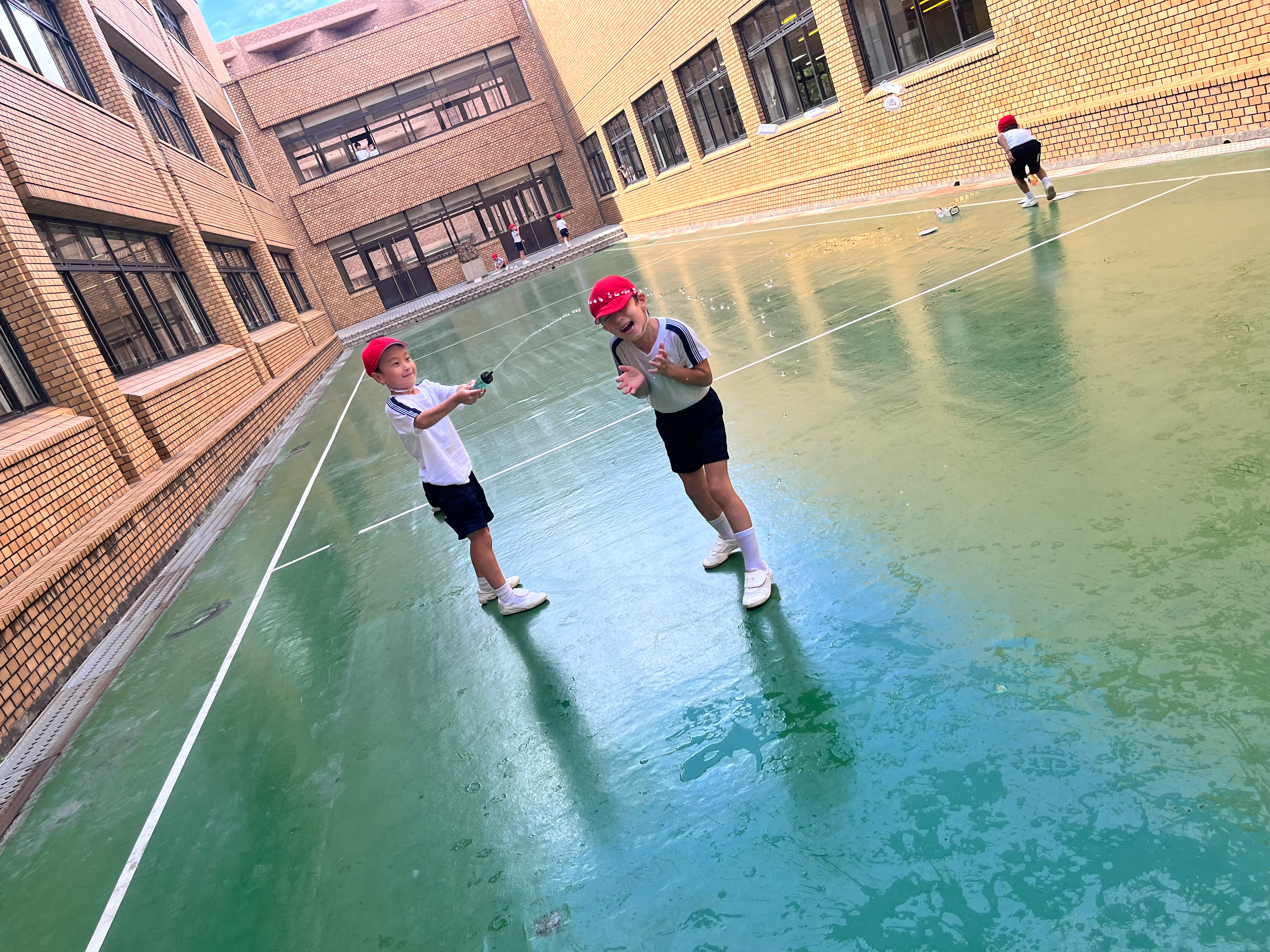 1年生は、生活科「水あそび」を行いました。1学期に企画していたものが雨で延期になってしまいましたが、その分たくさん準備をすることができました。