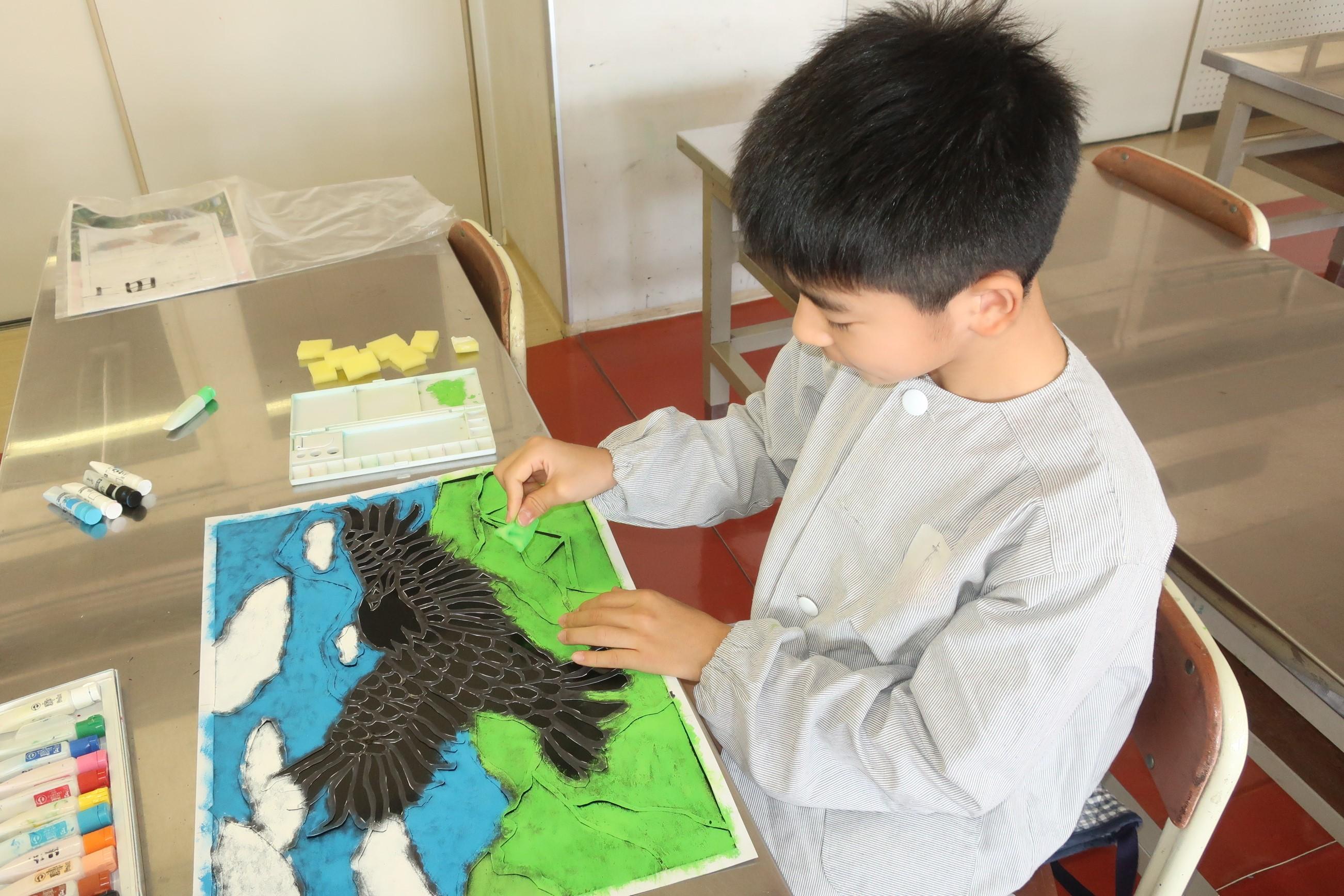 図工科「ステンシル版画(色付け)」