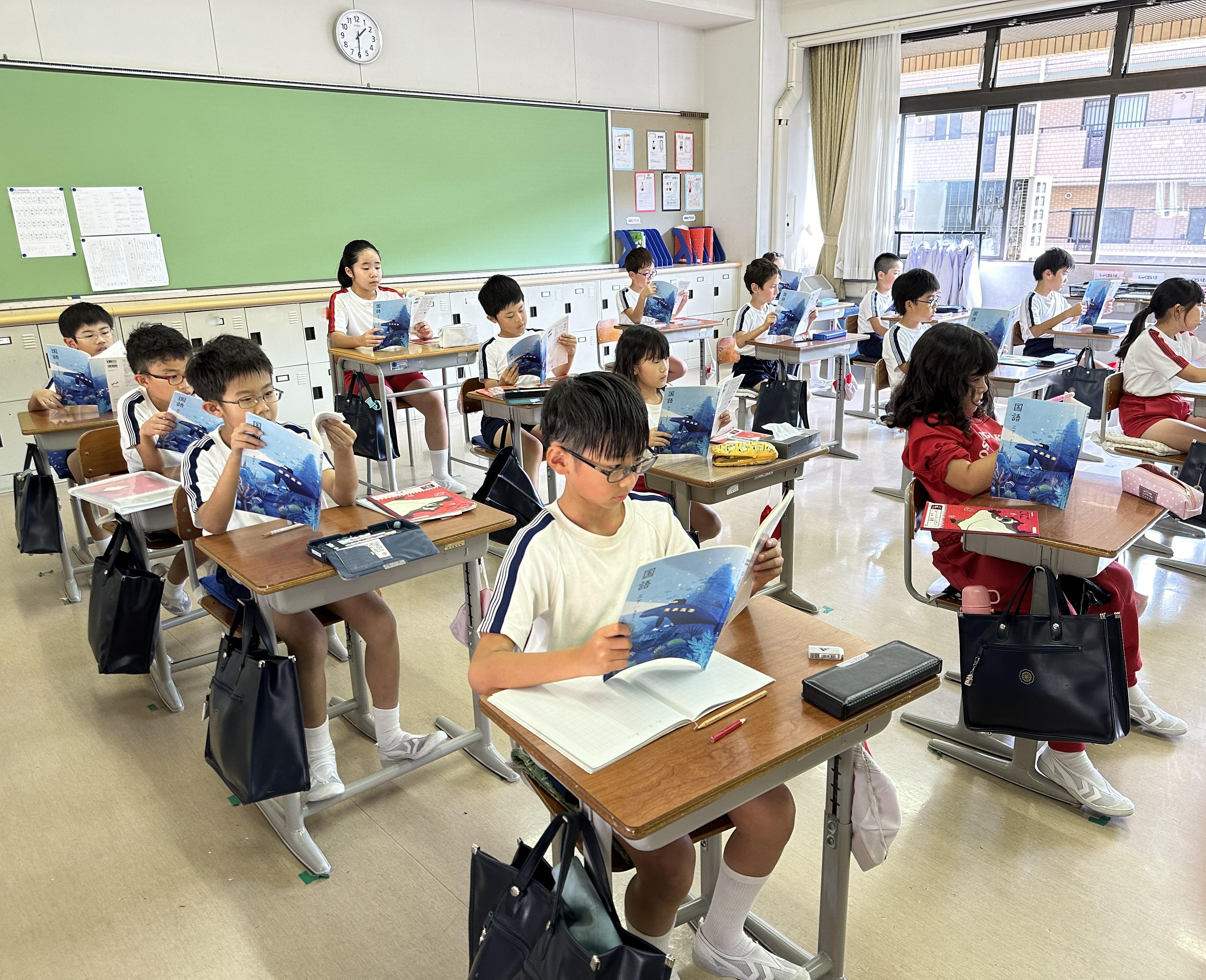 単元「ちいちゃんのかげおくり」の授業が始まりました。戦争の話であることからシリアスな雰囲気で音読をしました。音読後、感想を書いているときに、「亡くなってしまうちいちゃんは幸か不幸か」という話題が上がりました。単元の終了が近づいたときに再度皆で考えます。授業の最後に広場でかげおくりをして遊びました。