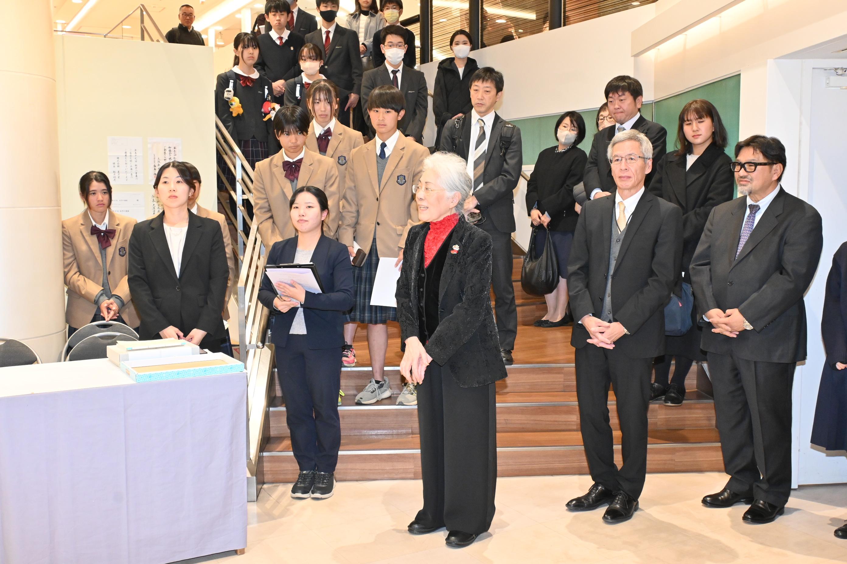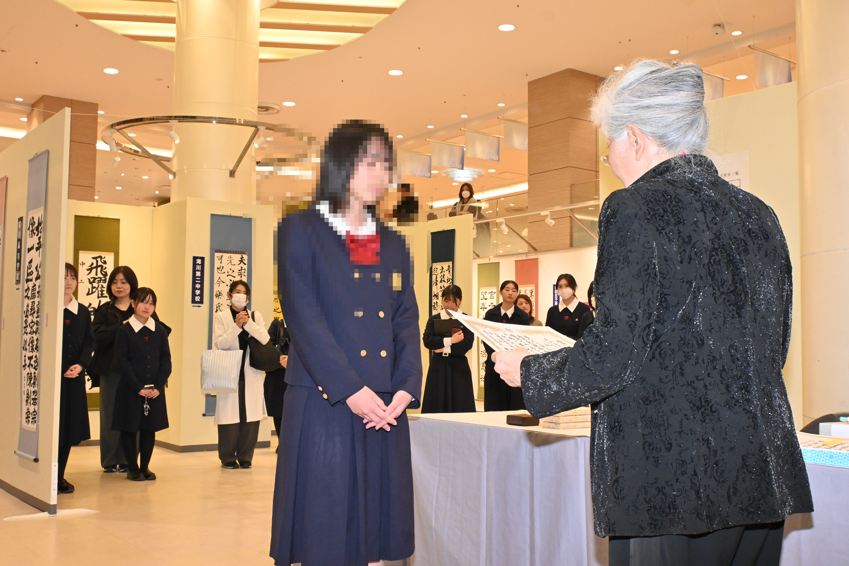 神戸三宮地下街「さんちかホール」で開催されていました「私学の書展」の表彰式が行われました。県内私立小中高等学校35校が参加、154名の出品者の中から、本校2年生女児が「一休園賞」に輝き表彰されました。また、本学院中学生が「墨運堂賞」、高校生が「呉竹賞」を受賞しました。