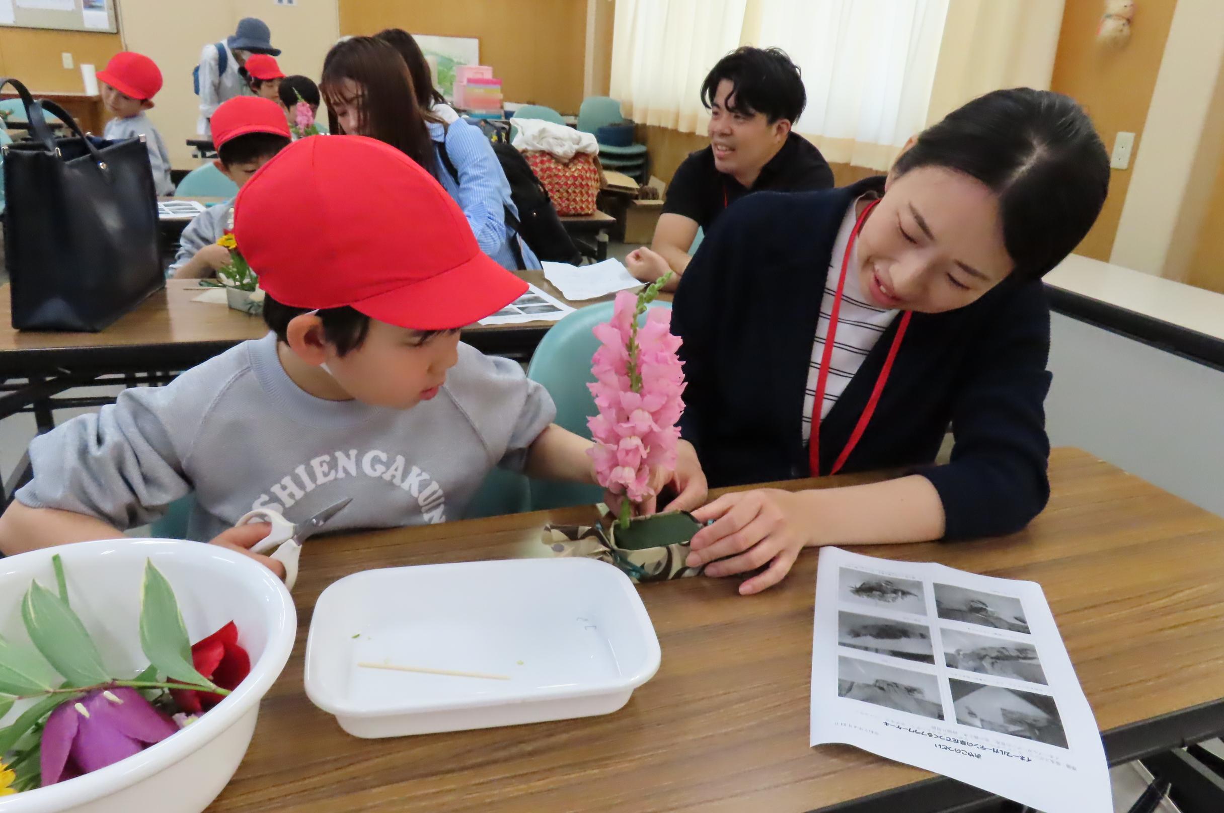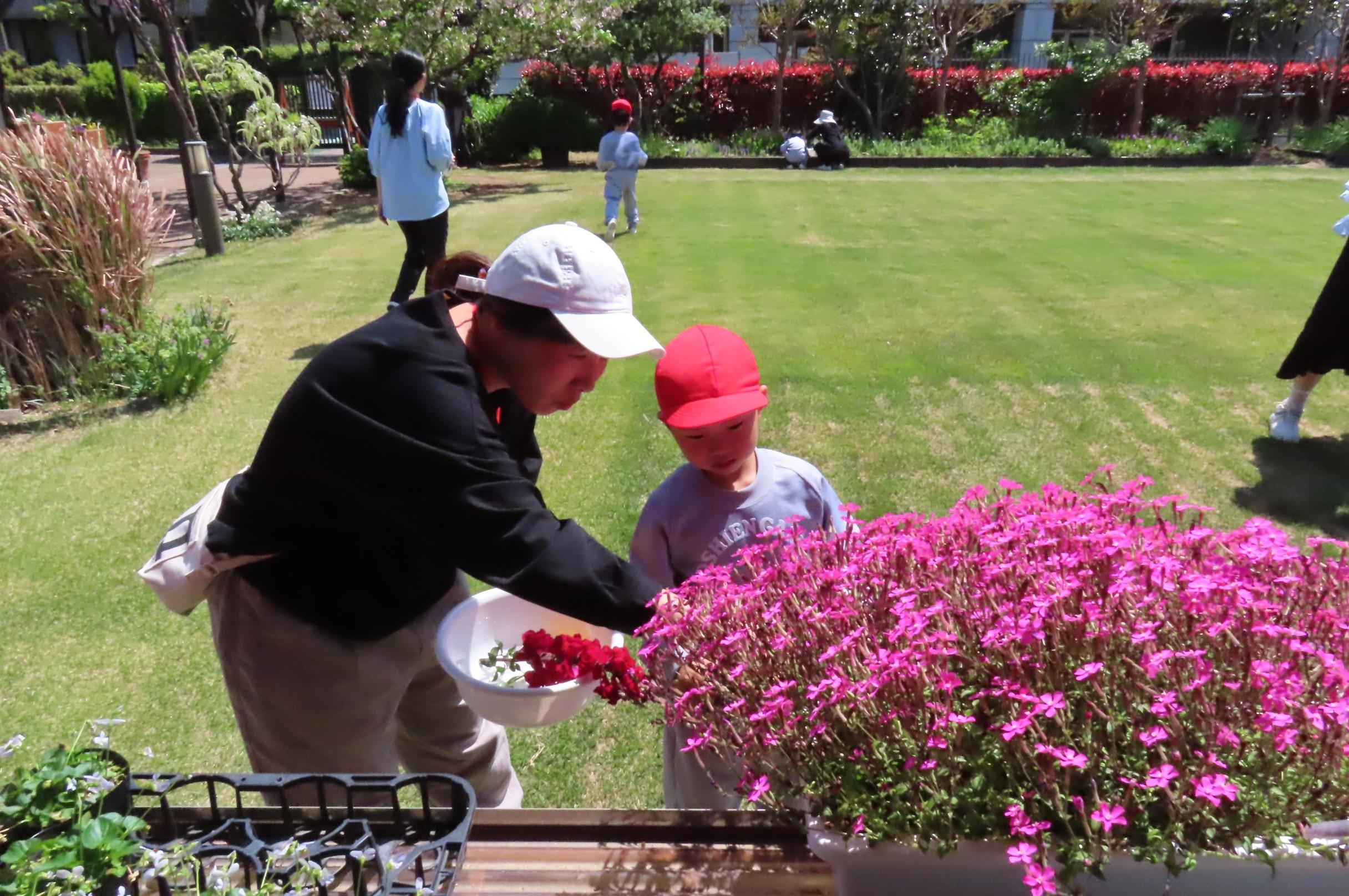 施設内から好きな花を選んで作るフラワーケーキ作りでは、たくさんの花を摘み、素敵な作品を作ることができました。
