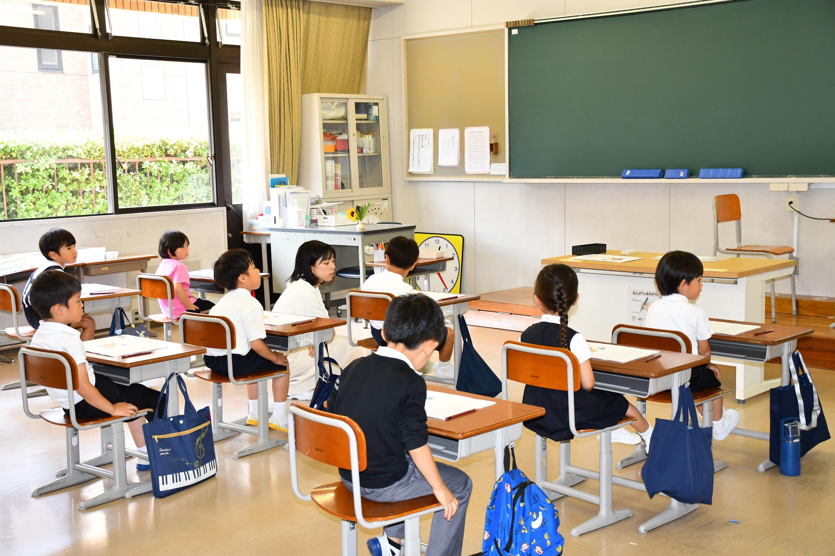 子どもたちはまず入試プレテストに挑戦し、その後、算数・国語・理科の体験授業を楽しく受講しました。