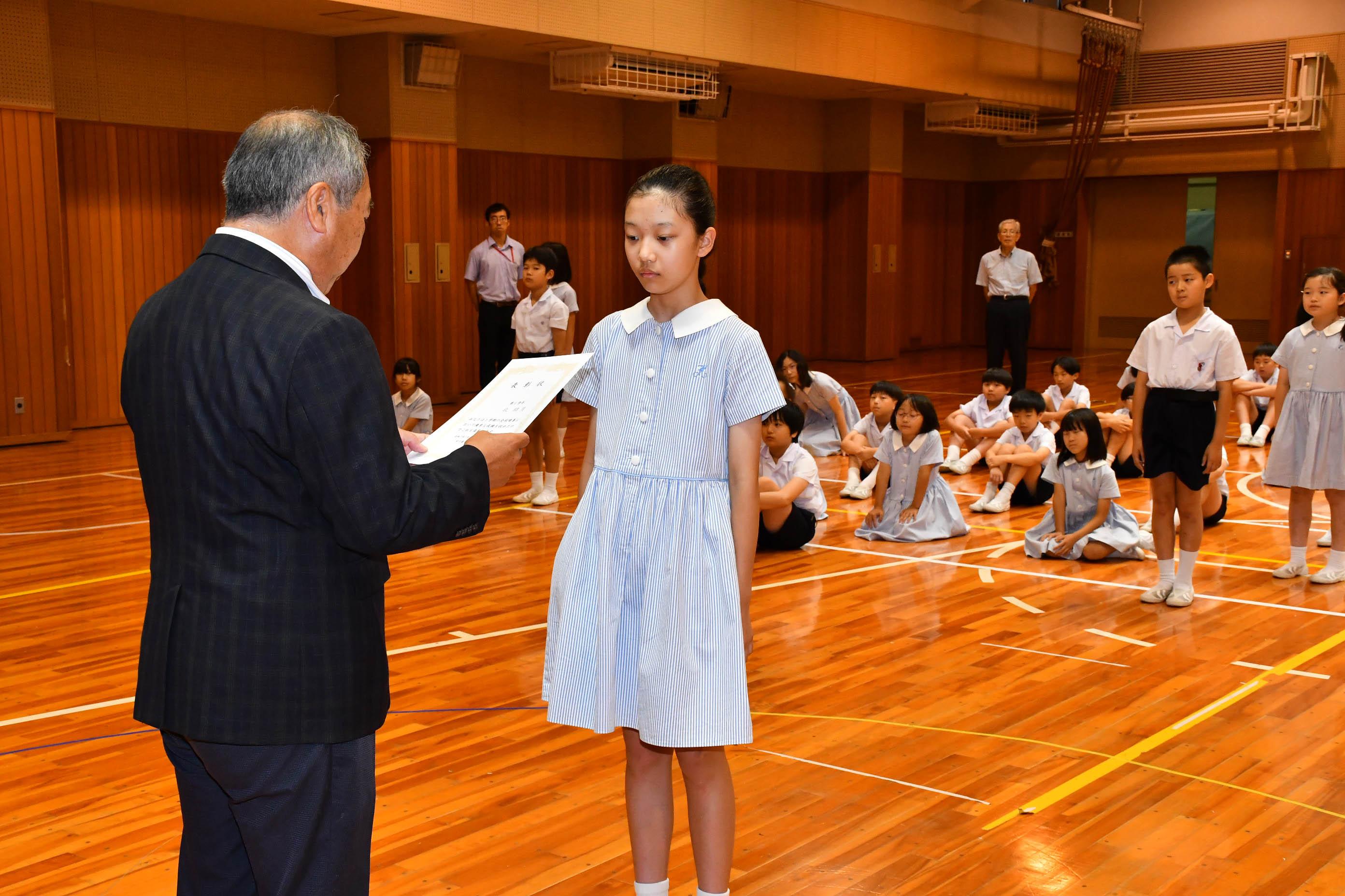 式後,1学期全校暗算の優秀者の表彰も行いました。