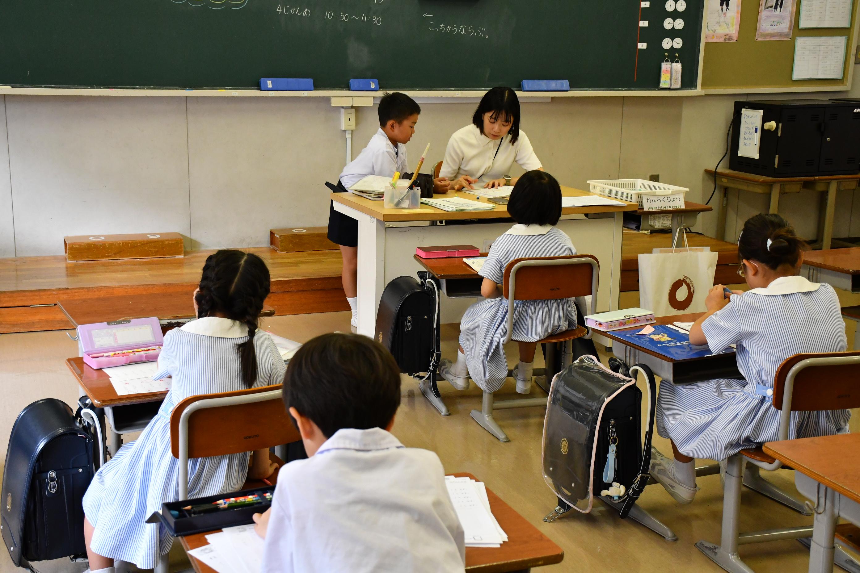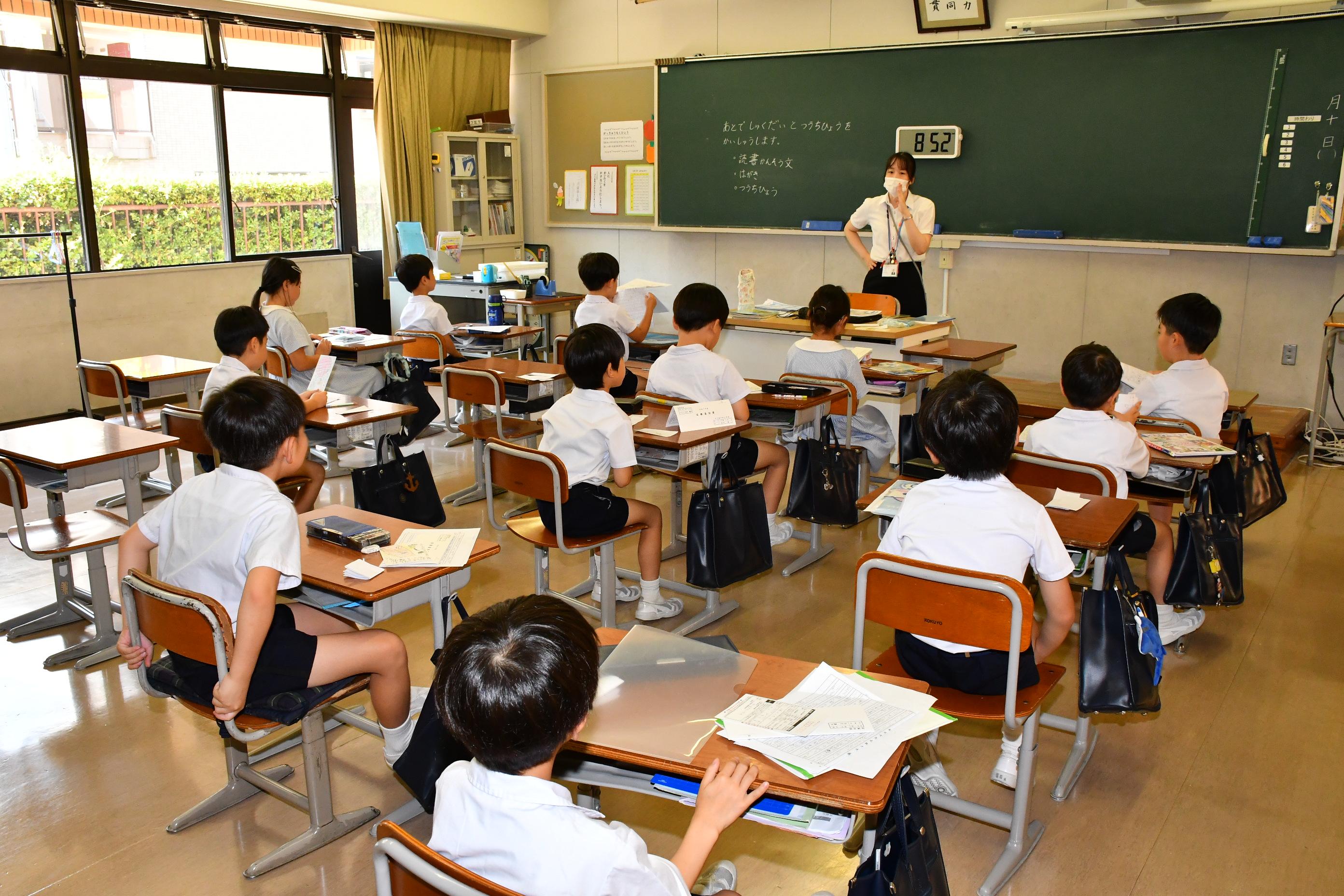 また、各学年で夏休みの宿題提出に加え、高学年では模試を実施。1か月ぶりの登校に子どもたちは笑顔を見せました。