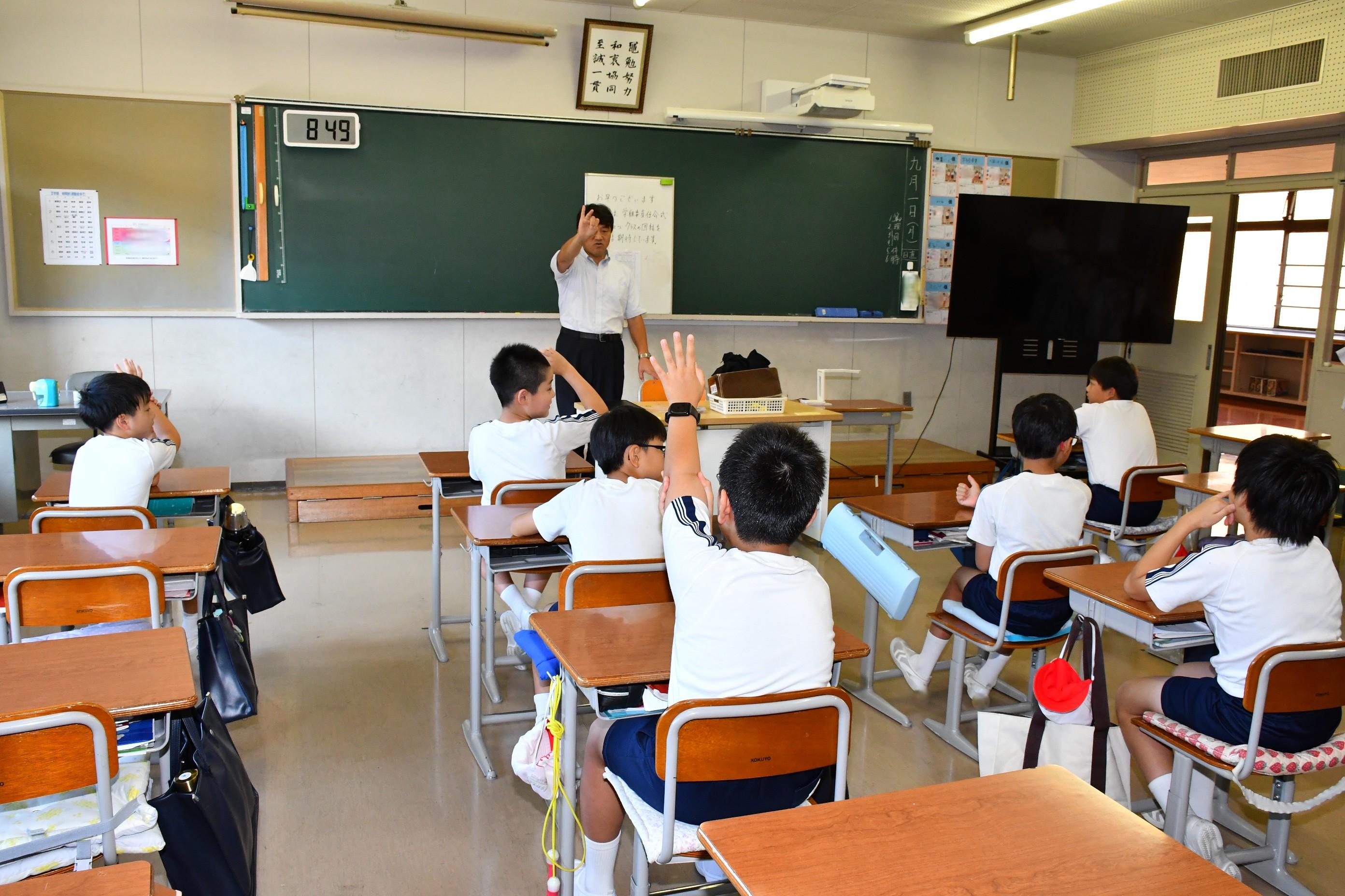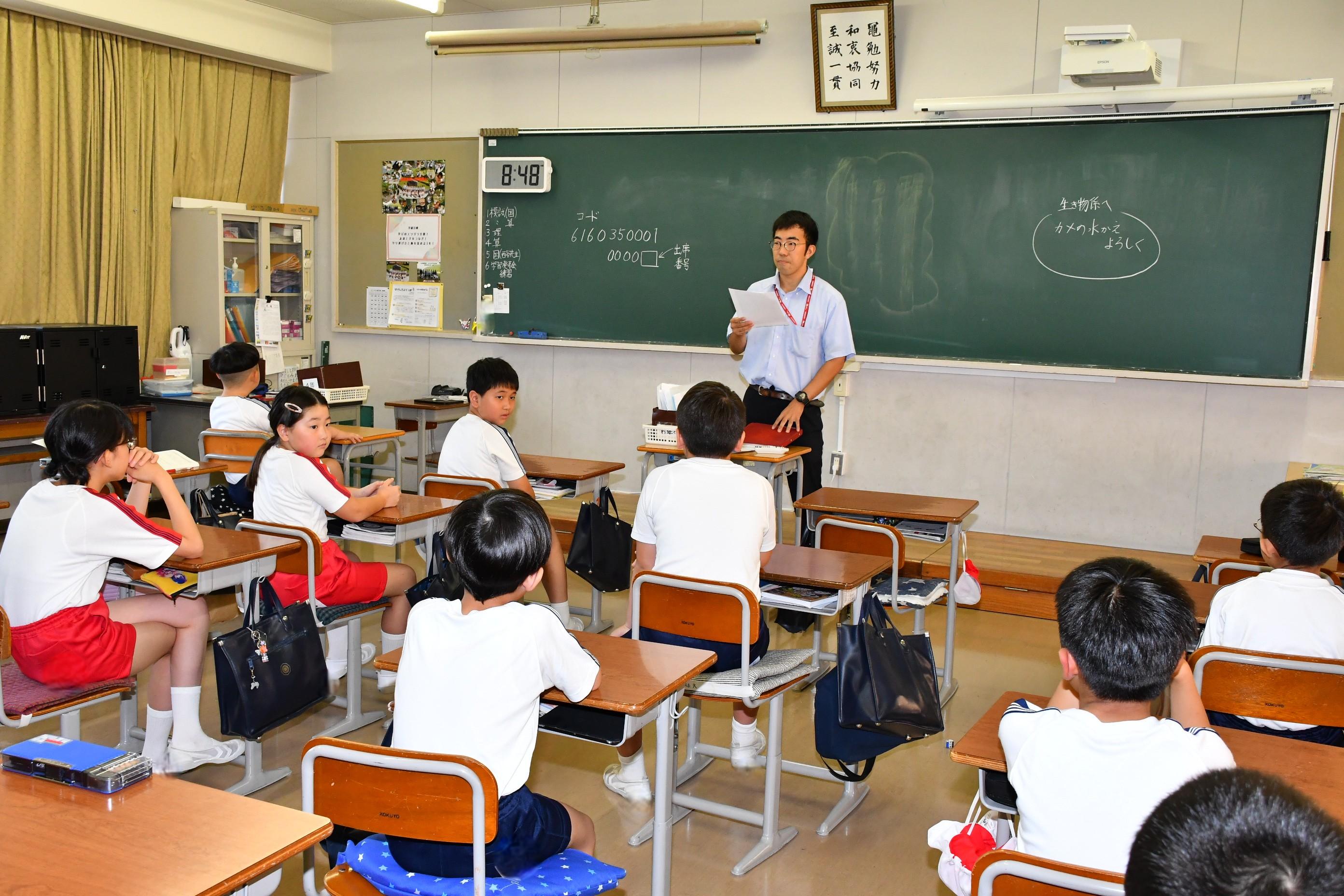 児童朝礼の後、下校指導を実施しました。1学期に引き続き、各公共交通機関別に分かれて、登下校中のマナーについて話を聞きました。