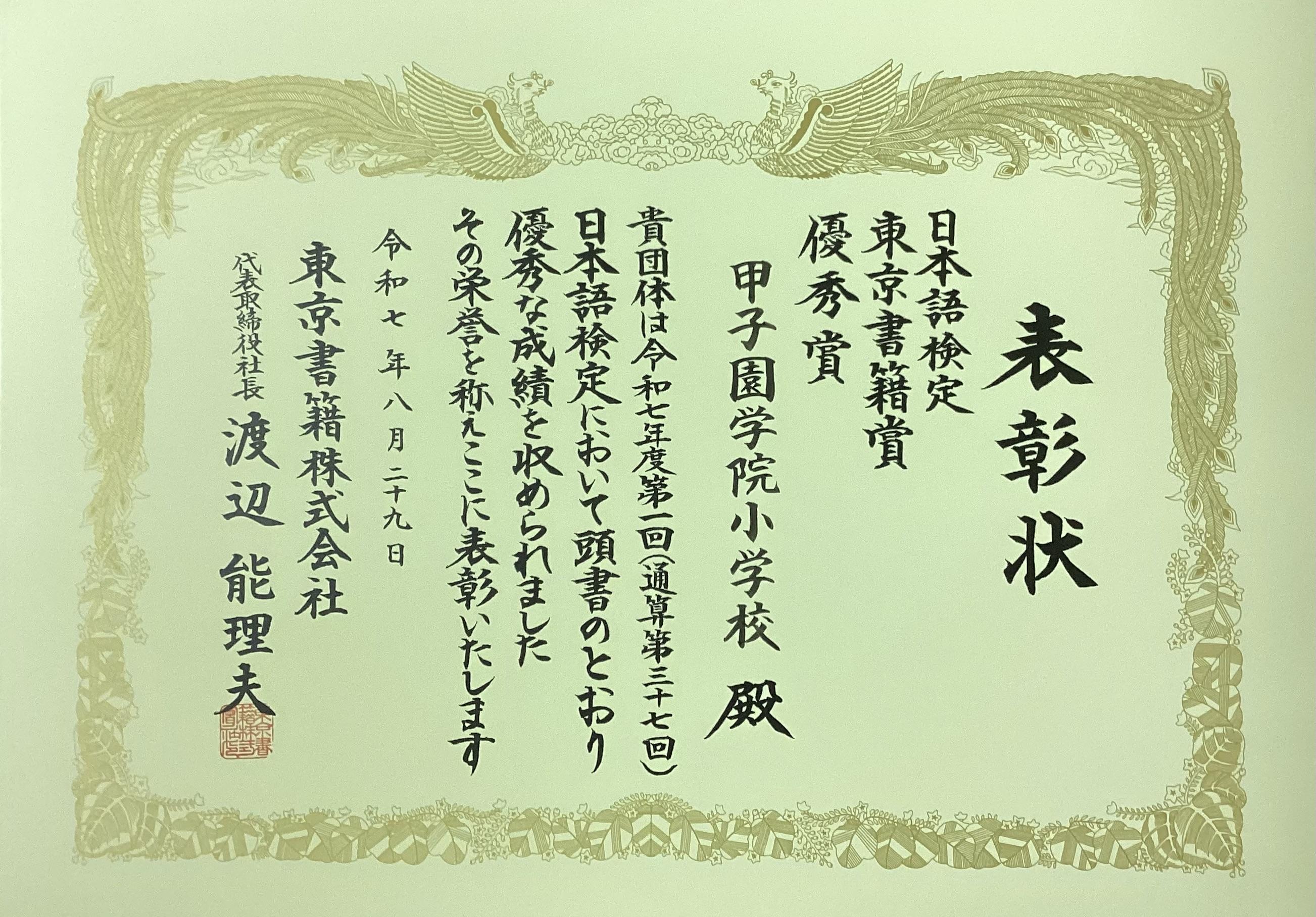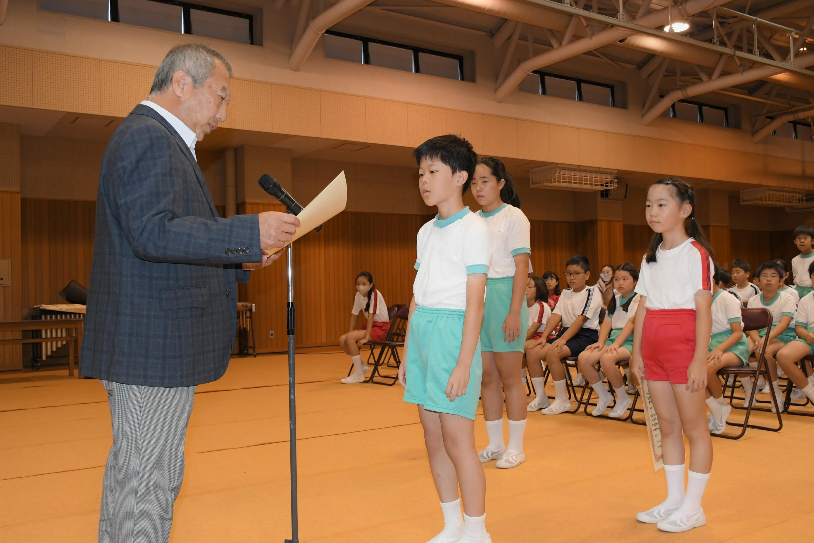 令和7年10月14日(火)、児童朝礼を行いました。はじめに1学期に実施した日本語検定の最優秀賞、優秀賞を受賞した児童の表彰を行いました。3年生1名、4年生2名の合わせて3名が最優秀賞、1年生2名、3年生1名、4年生3名の合わせて6名が優秀賞を受賞いたしました。また、本校は団体賞として東京書籍賞の最優秀賞を受賞いたしました。