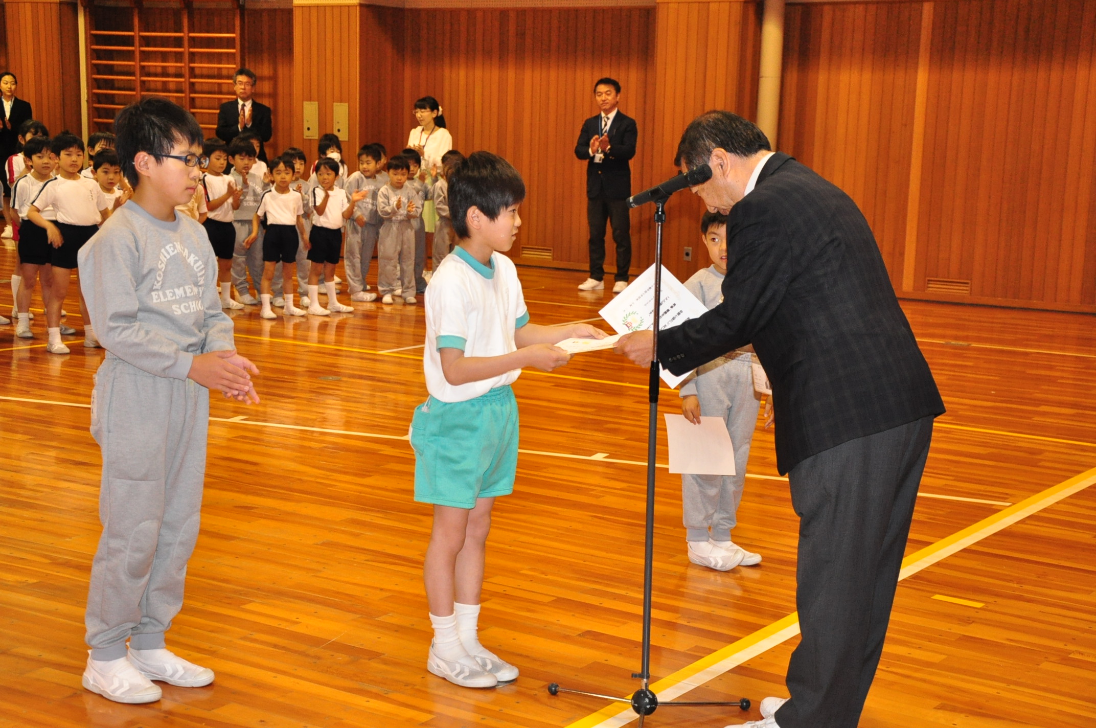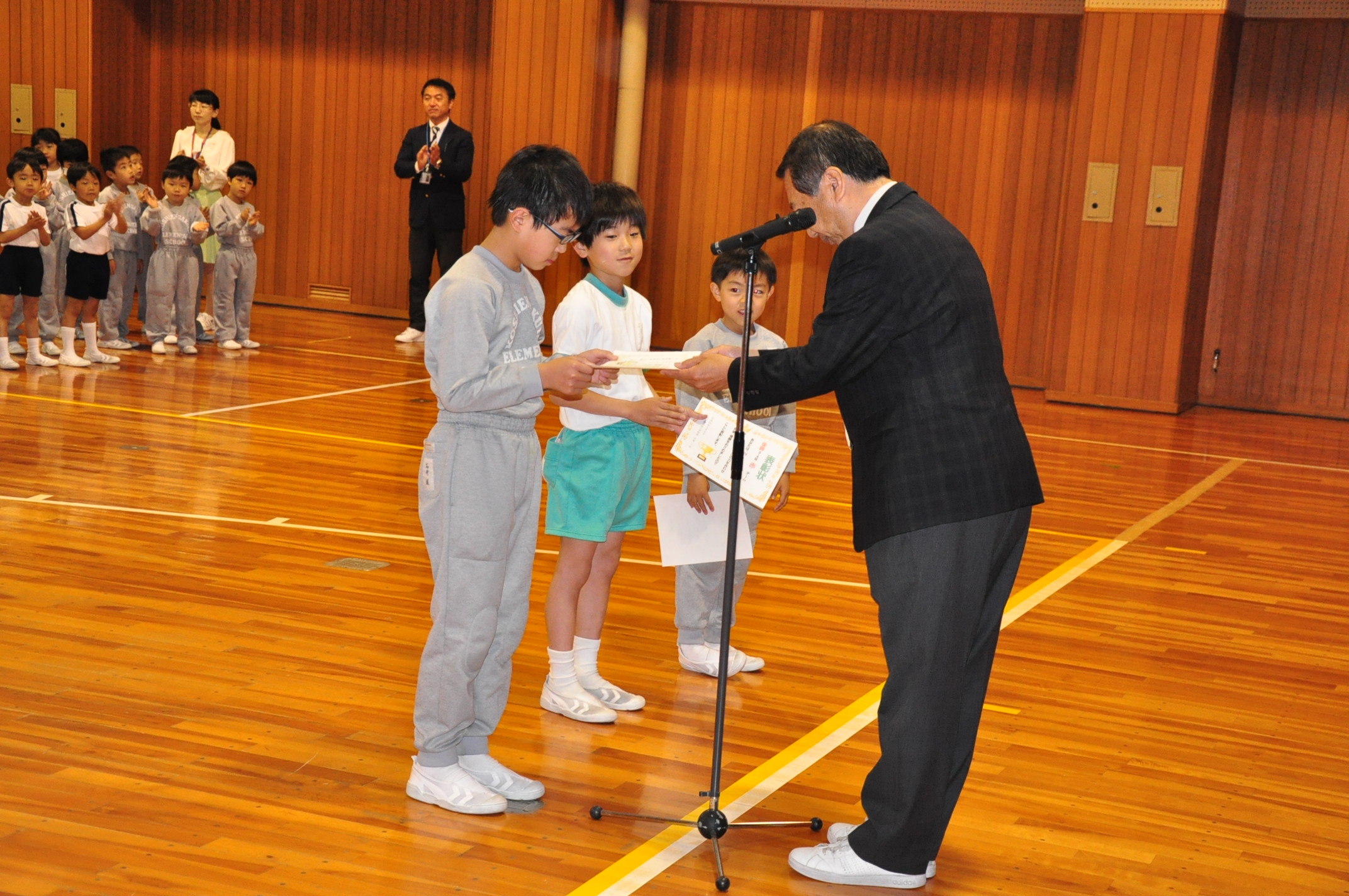 球技大会 表彰式[投稿日:2018年05月07日] 5月2日に実施した「球技大会」の表彰式を行いました。 みなさん、よくがんばりました。 みなさん、よくがんばりました。 1,2年の部 3,4年の部 5,6年の部 一覧へ戻る