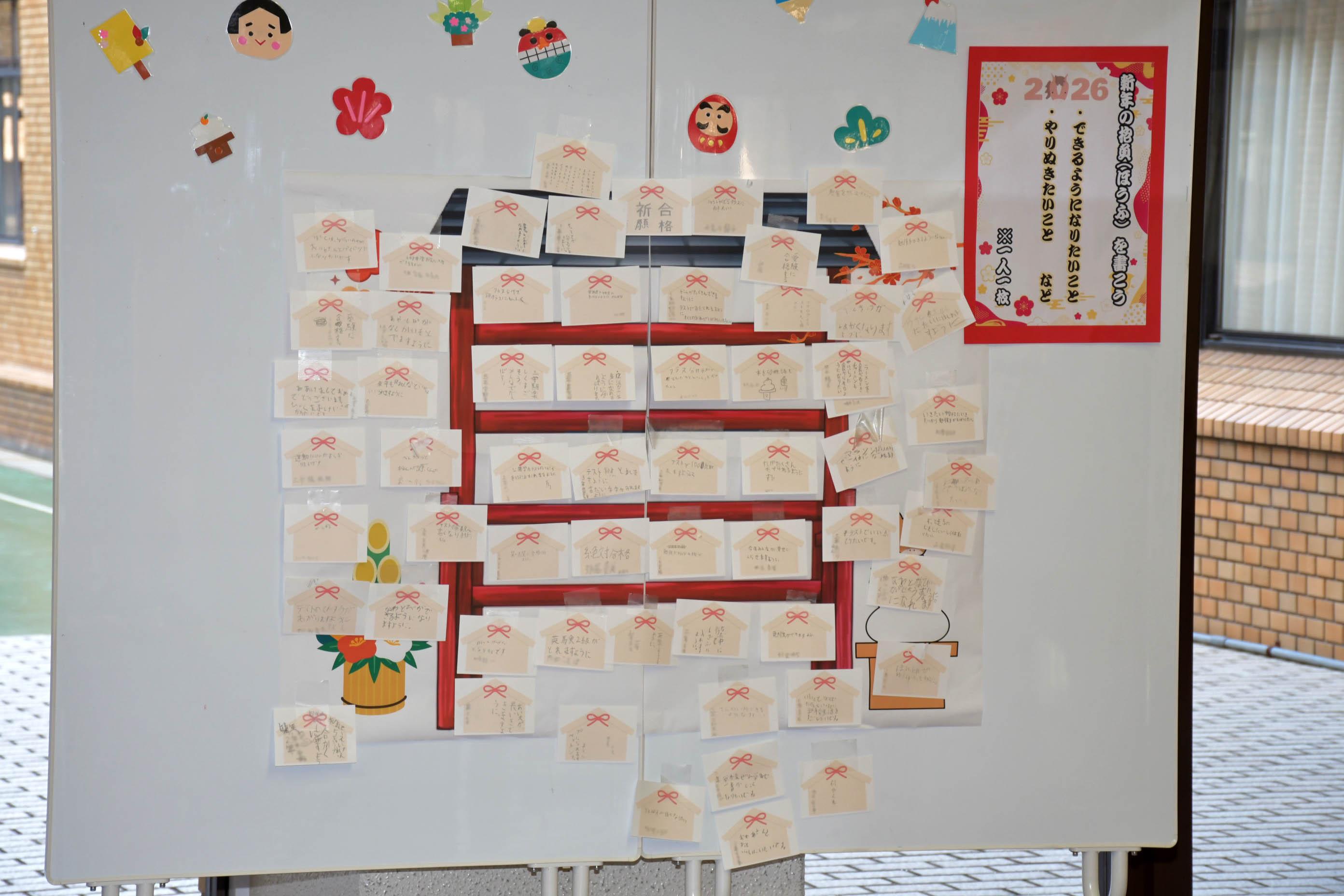 また,年初の目標や願いを一人ひとり紙に書き,みんなで玄関ロビーに飾りました。