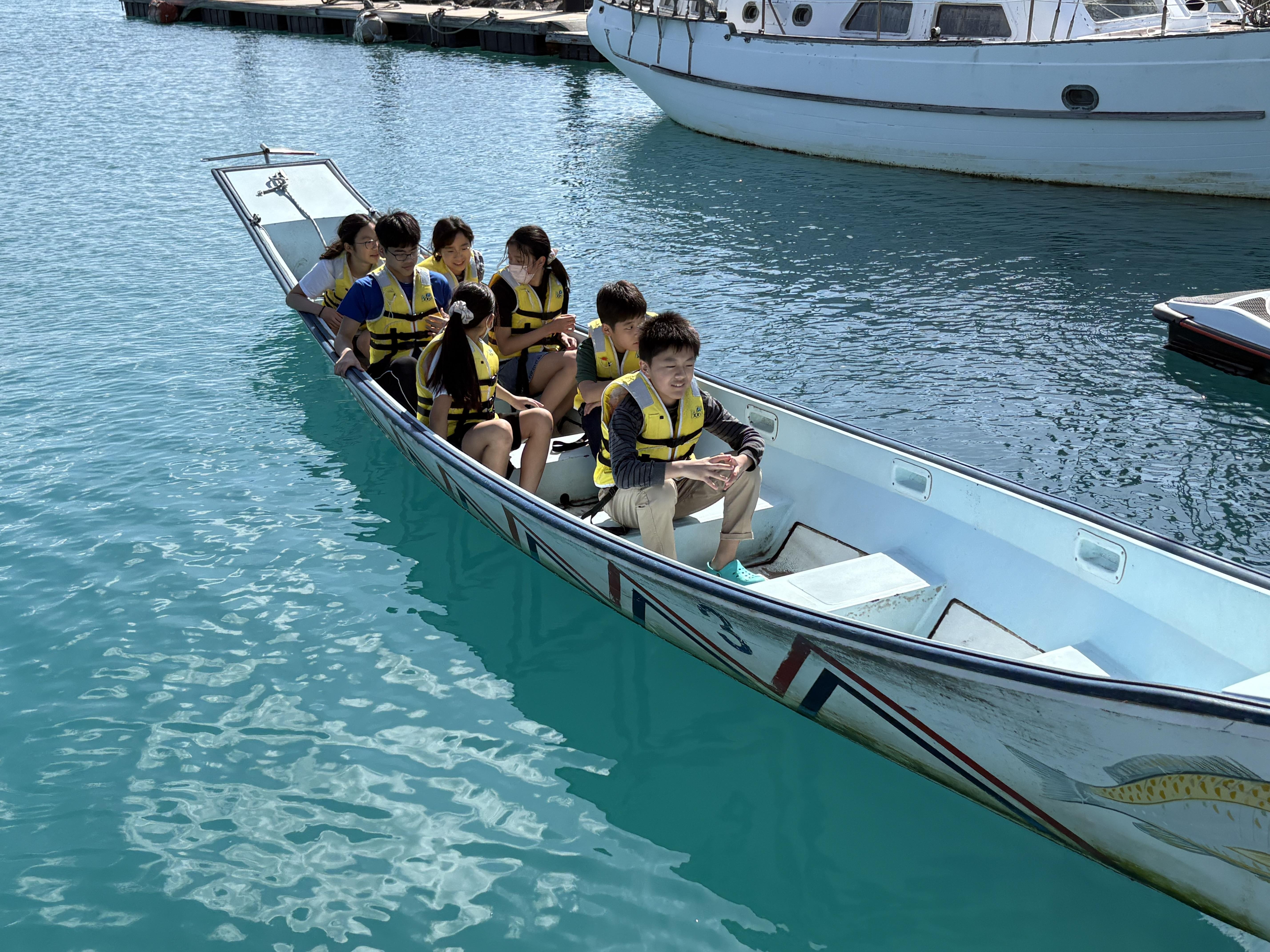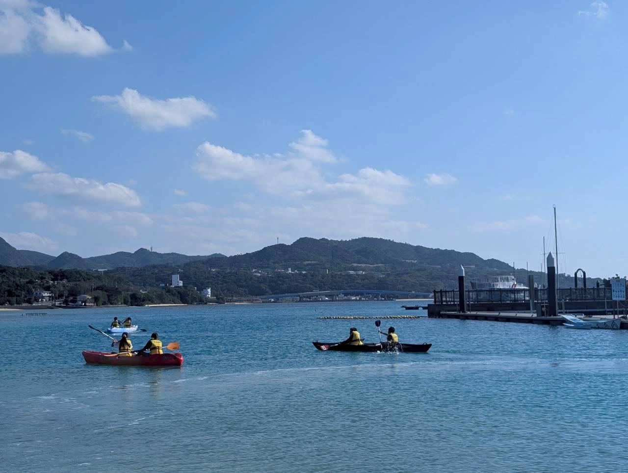 本日は「もとぶ元気村」にて海洋プログラムを楽しみました。午前中はコーラルビュークルージング・ドルフィンガイド・紅型体験をしました。お昼はカレーをいただき、午後からは、ヨット・サバニ・カヌーを体験。晴天に恵まれたなか、広く澄み切ったエメラルドグリーンの海で、全員元気に活動することができました。