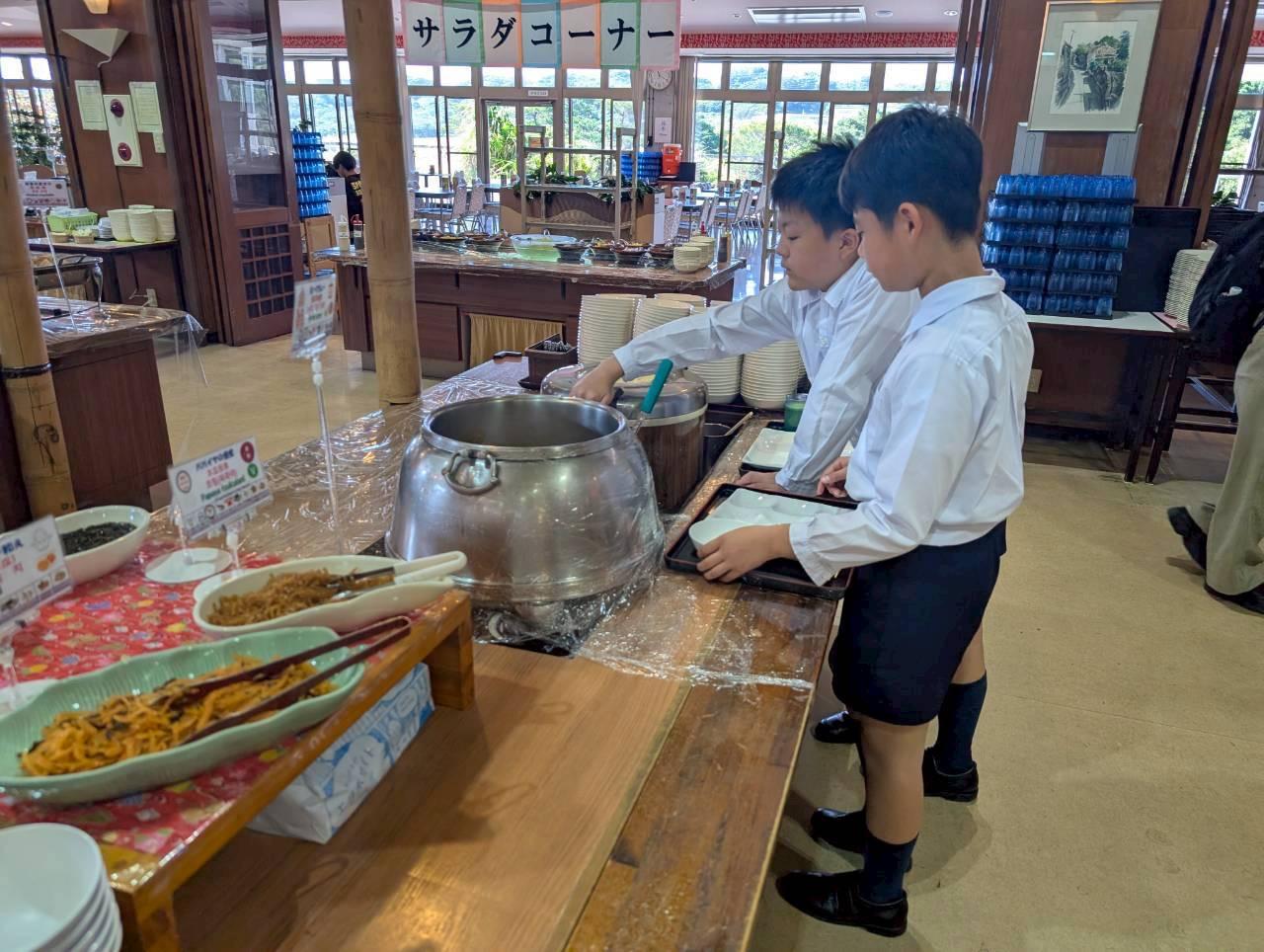 最終日は、朝からおきなわワールドへ。玉泉洞では大自然の神秘を感じ、メインステージでは本場のエイサーを鑑賞しました。三線の早弾きに合わせ、沖縄の伝統的な踊りである「カチャーシー」をして盛り上がりました。その後、バスに揺られ首里城公園へ行きました。守礼門をくぐり、公園内にある歴史的建造物や史跡を見て周りました。首里城の復元に向けて行われている工事を見学し、沖縄の人々の熱意やエネルギーを感じることができました。6年生はこの修学旅行4日間を全力で楽しみ、真剣に学び、かけがえのない思い出を作ることができました。