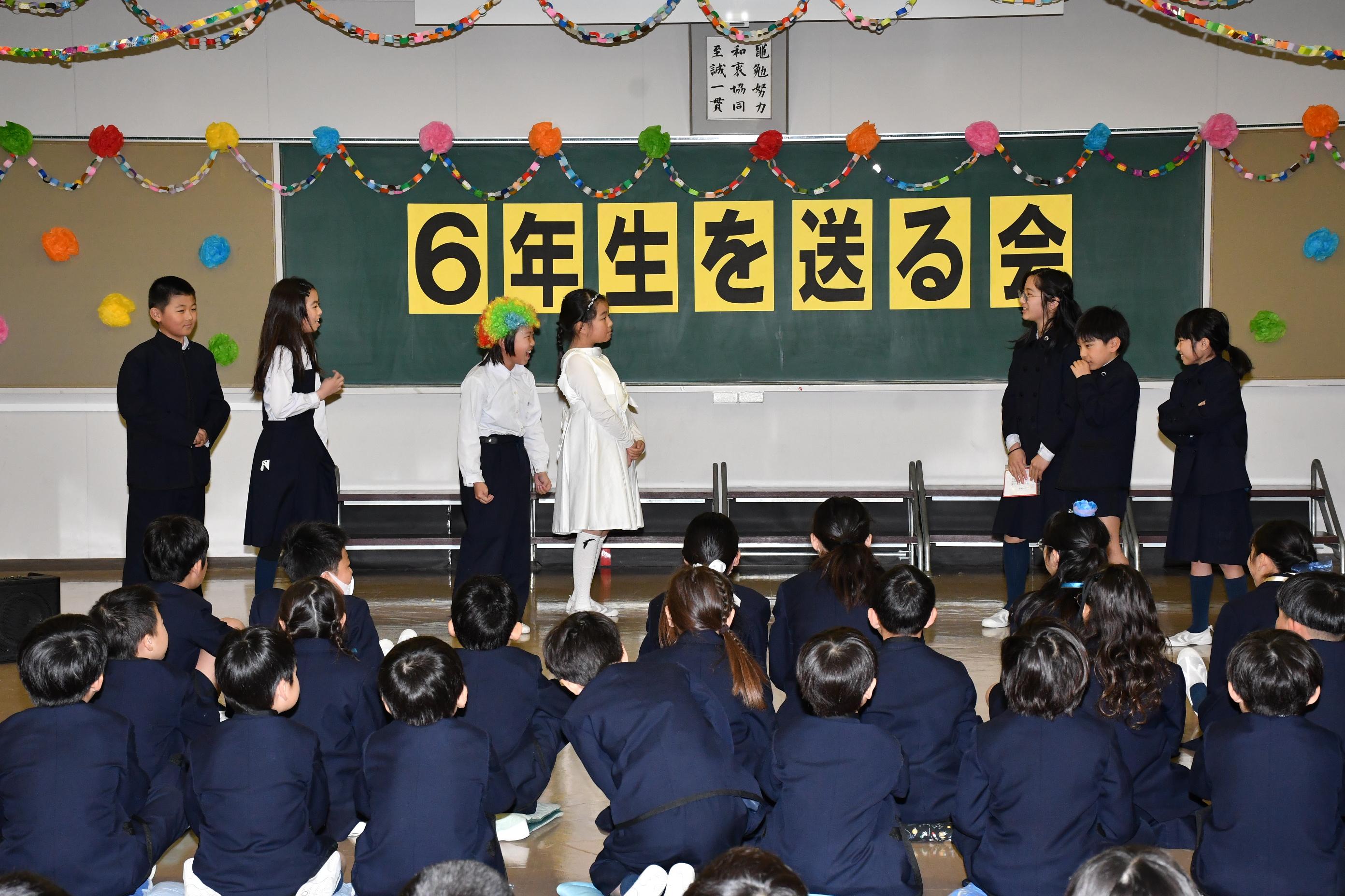 3月6日(金)、6年生を送る会を行いました。各学年が、6年生に楽しんでもらえるように一生懸命考え、練習した歌やゲーム、クイズ、劇などを披露しました。最後には、6年生が一人ひとり卒業宣言を行いました。