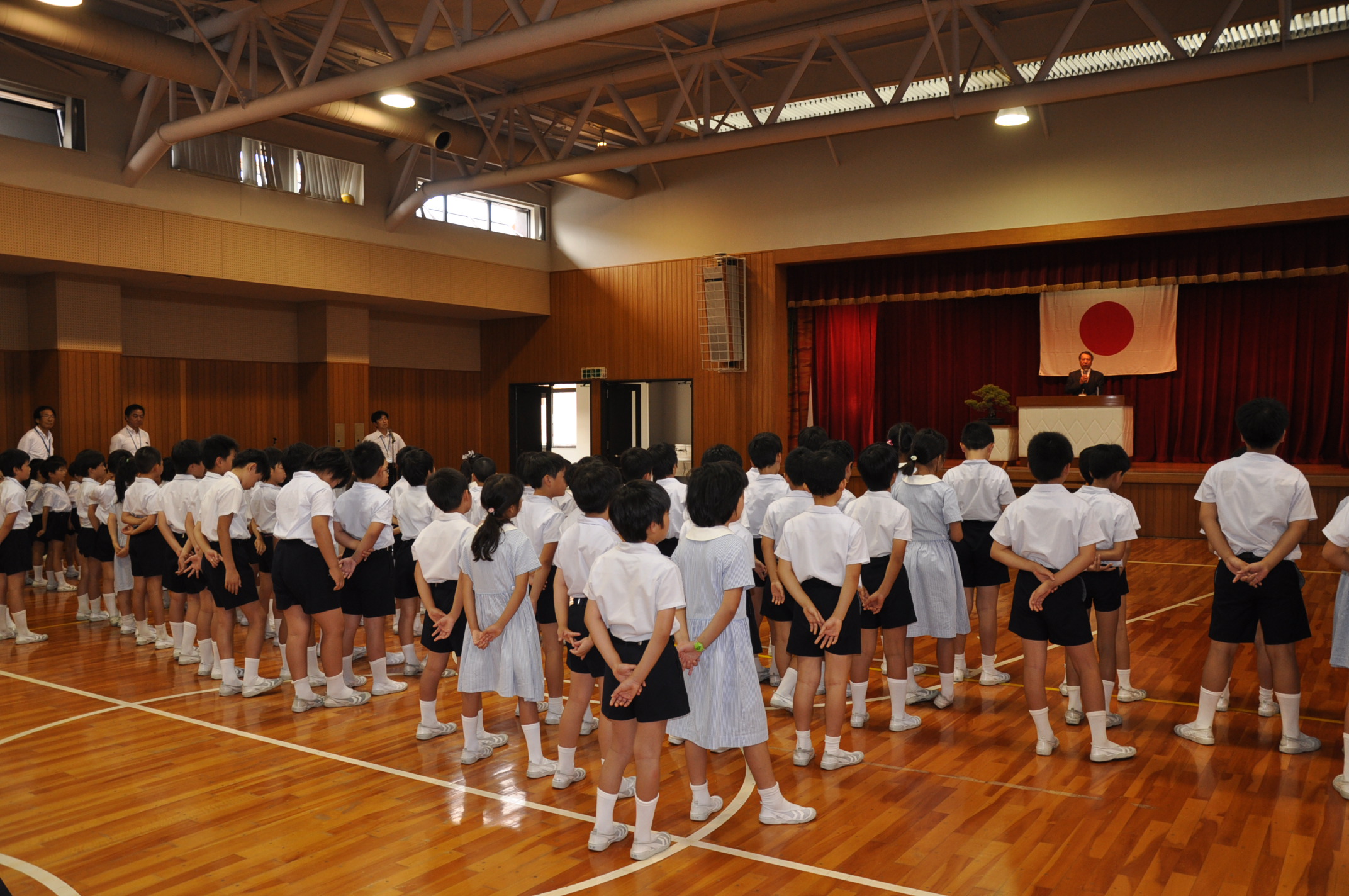 第1学期 終業式[投稿日:2018年07月20日] 平成30年7月20日(金),1学期の終業式を行いました。 終業式が始まります。 終業式が始まります。 校長先生のお話です。 健康に気を付け,学習に励み 有意義な夏休みを過ごしましょう。 最後に,全員で校歌を歌いました。 一覧へ戻る