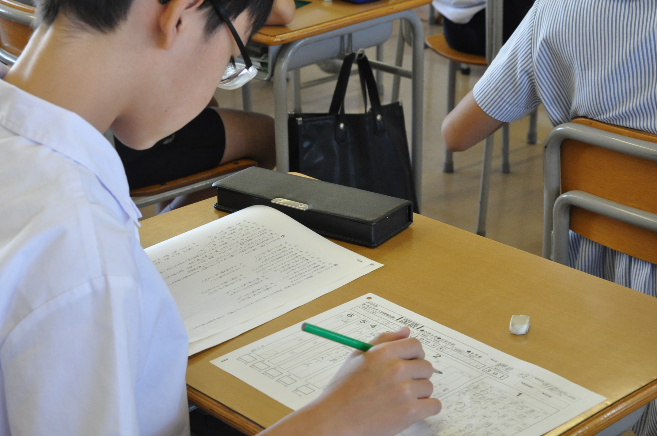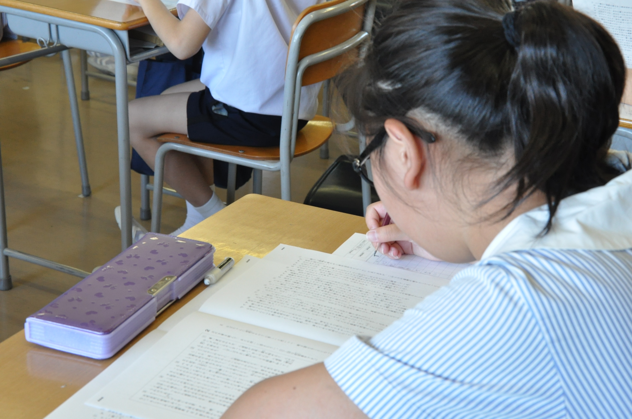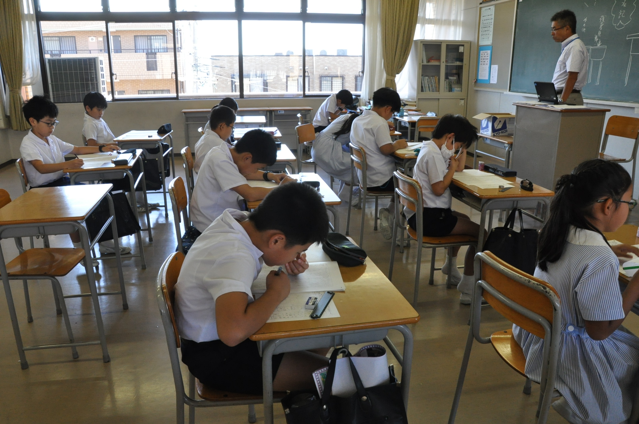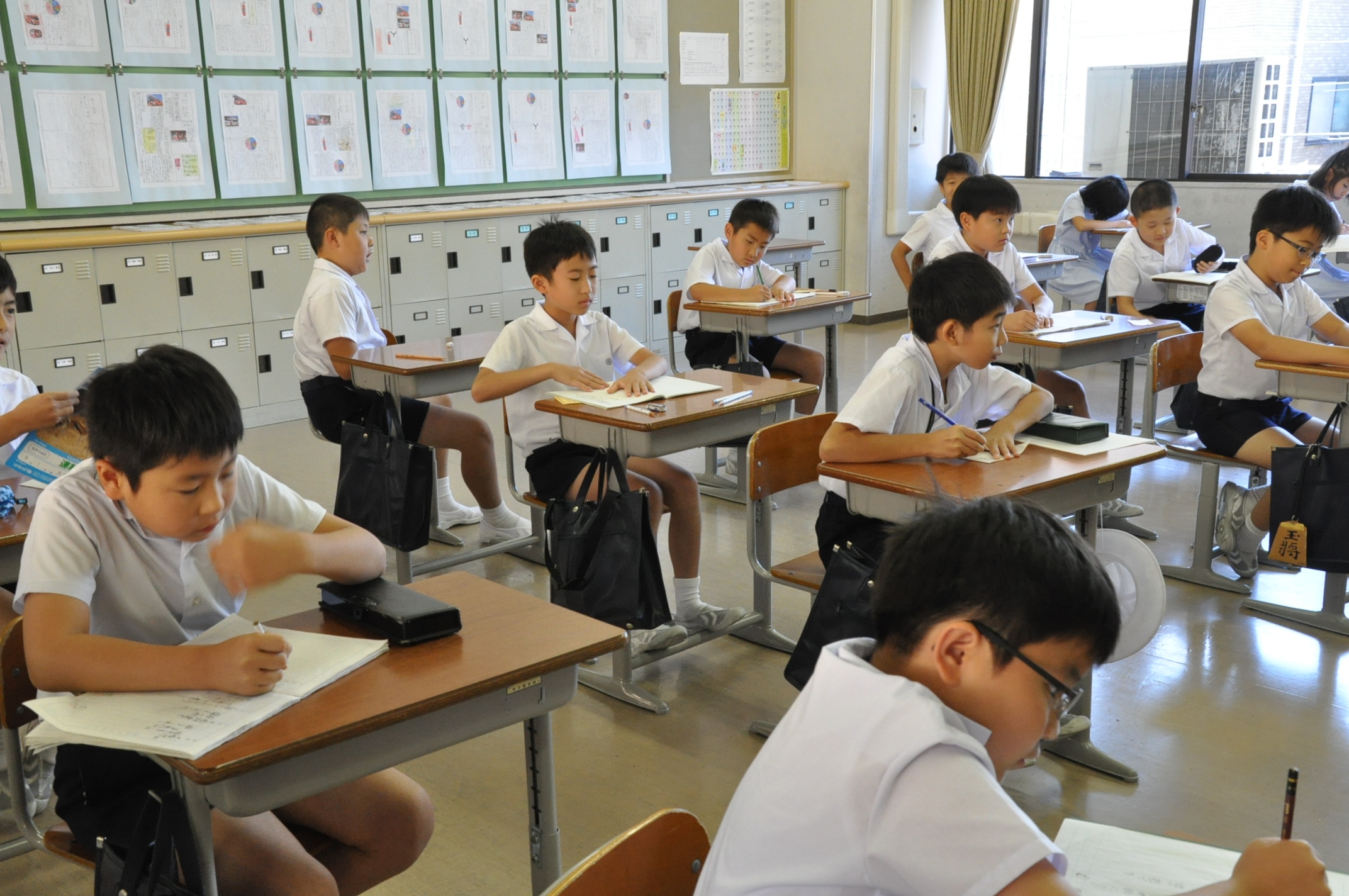 教室では、夏休みの宿題を提出したり、夏の思い出を発表したり、また4年生から6年生までは模擬テストの受験もしました。