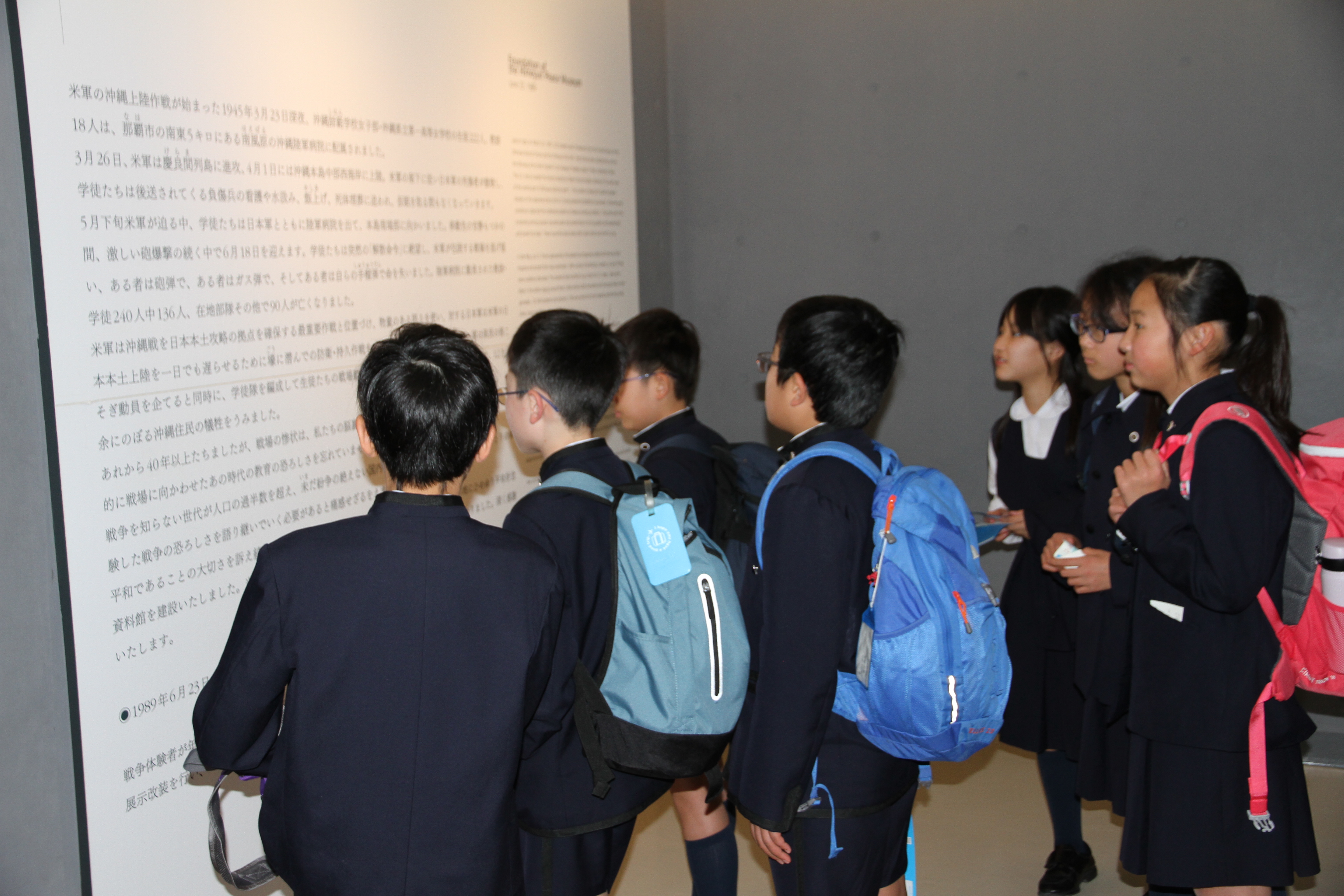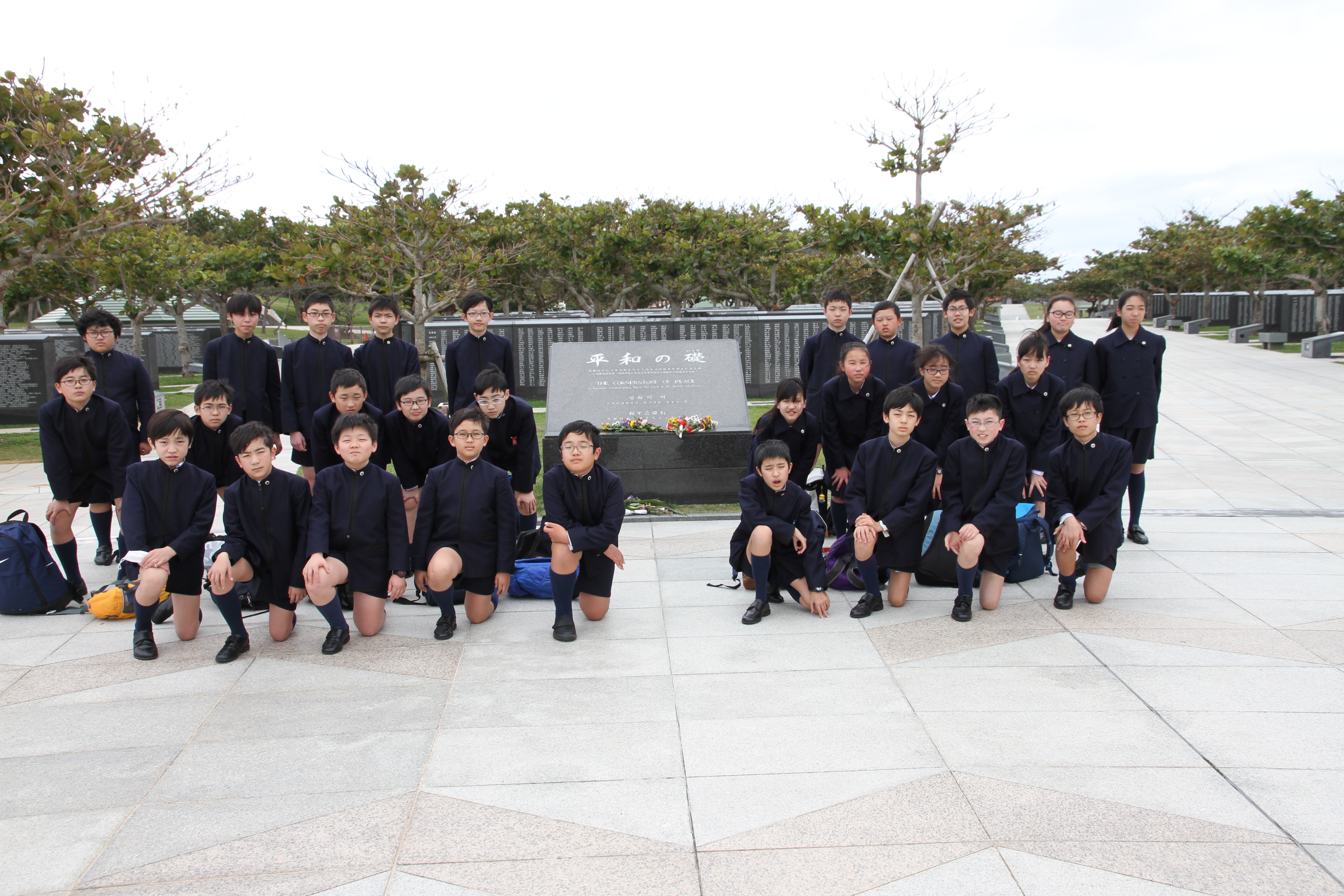 初日は,沖縄本島南部の戦跡地,「ひめゆりの塔」「平和祈念公園」などをめぐり,平和について学習しました。