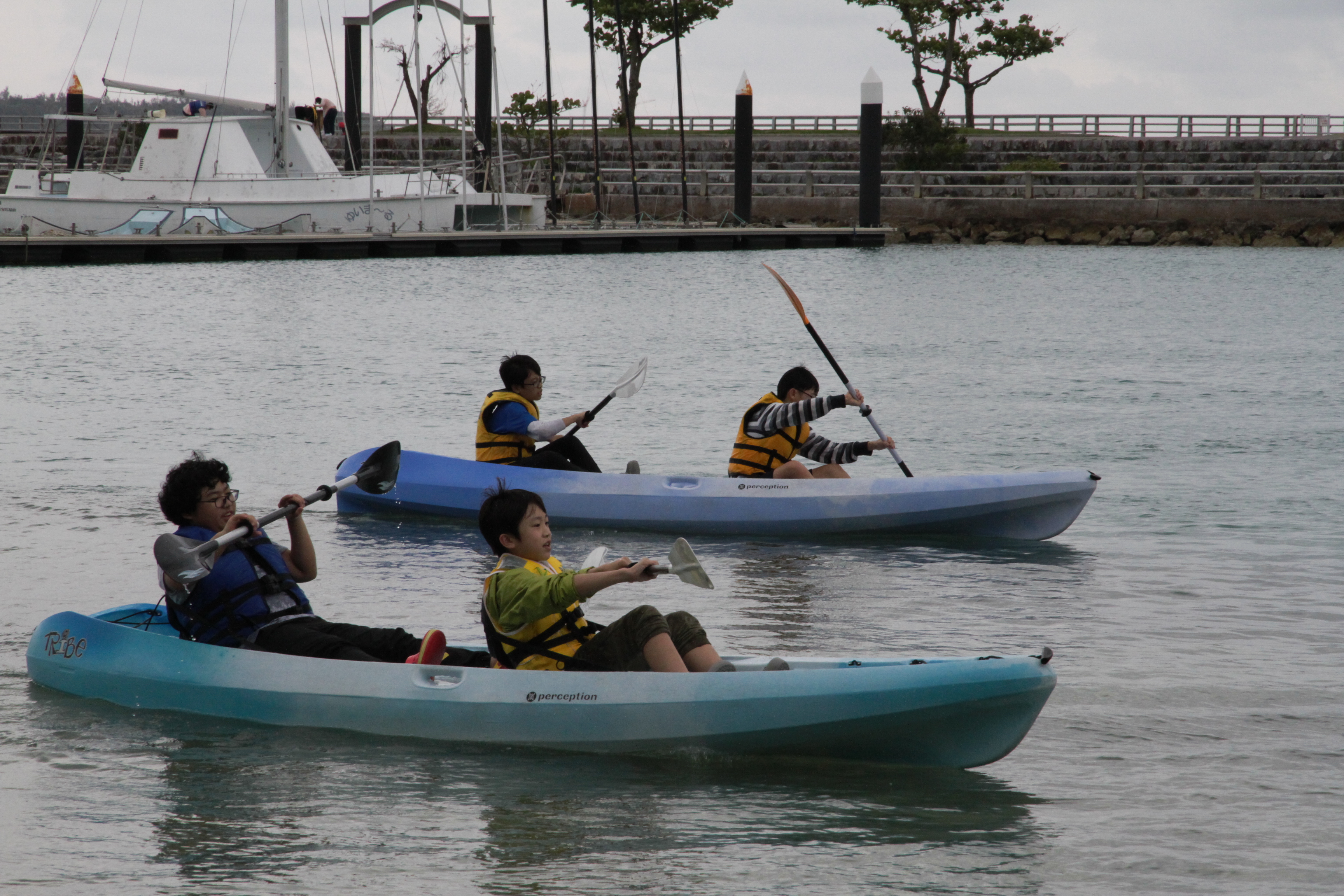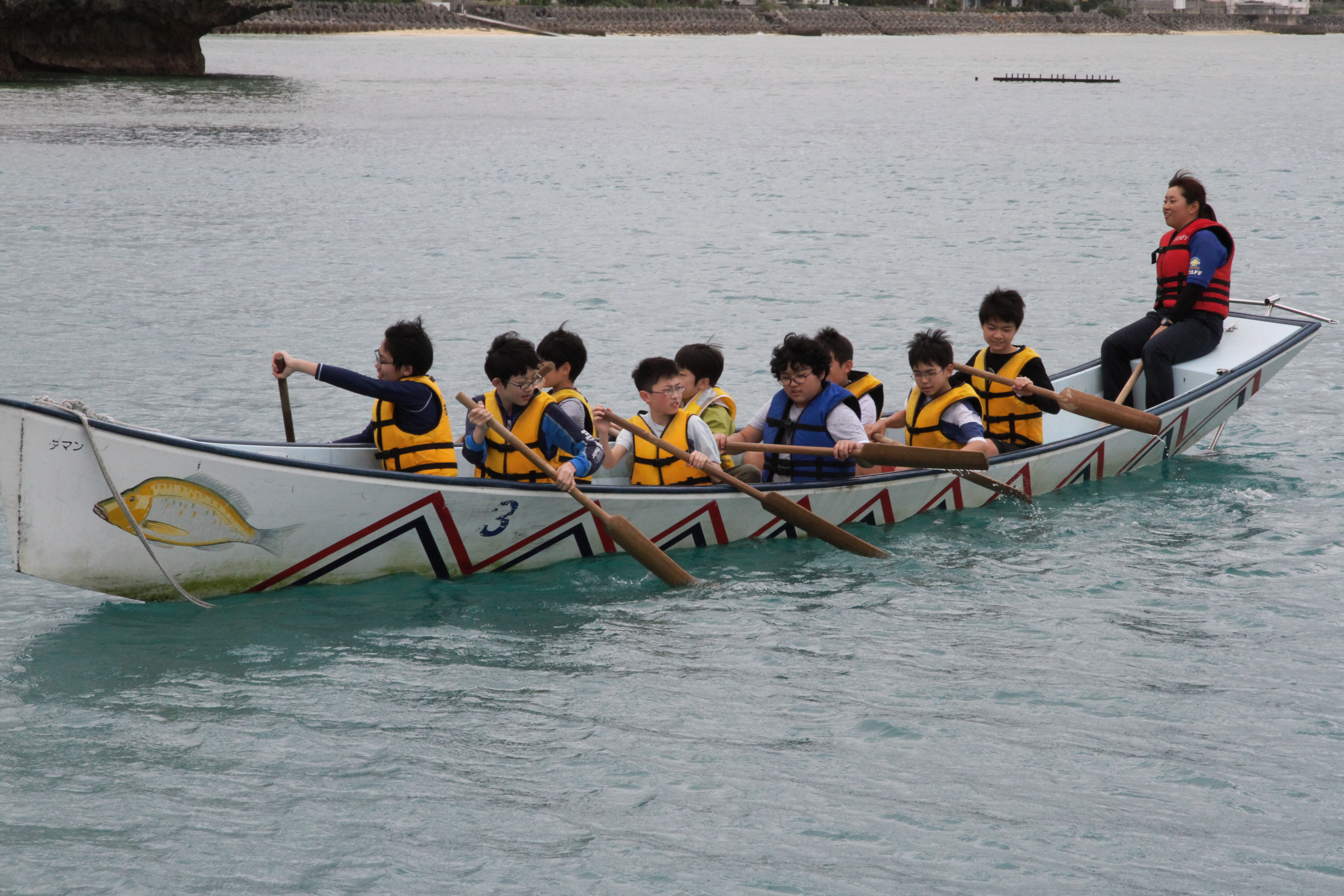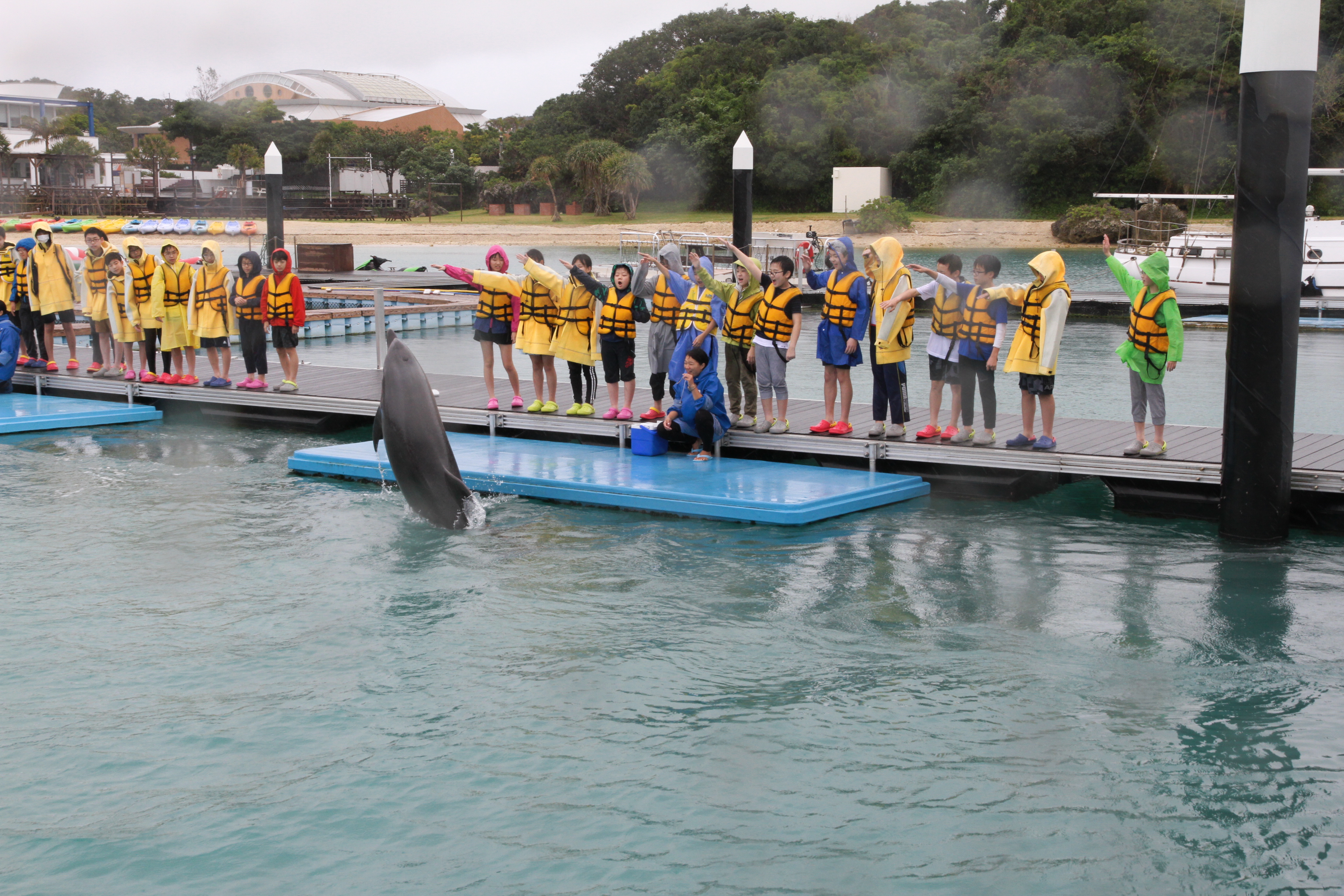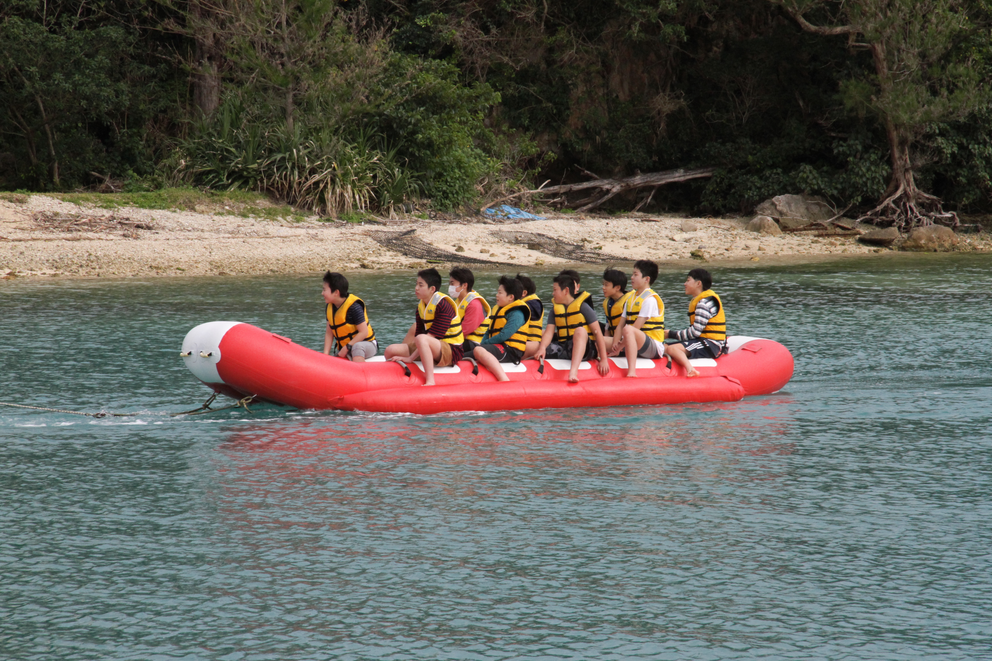 午前中は少し雨が降りましたが午後からは回復し,「もとぶ元気村」での海洋プログラムを楽しみました。