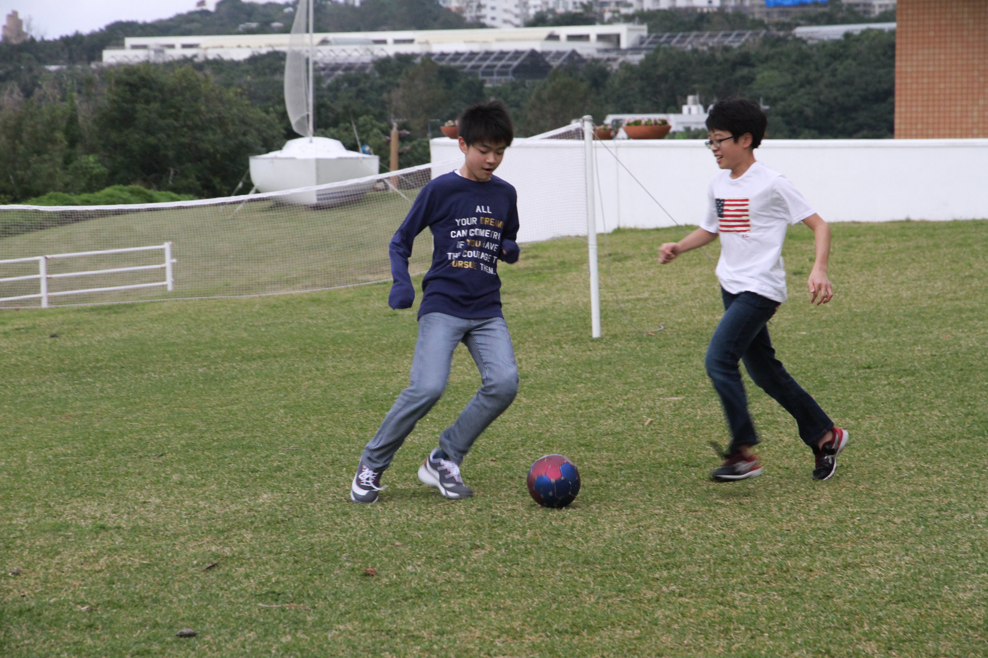 芝生でサッカーもしました