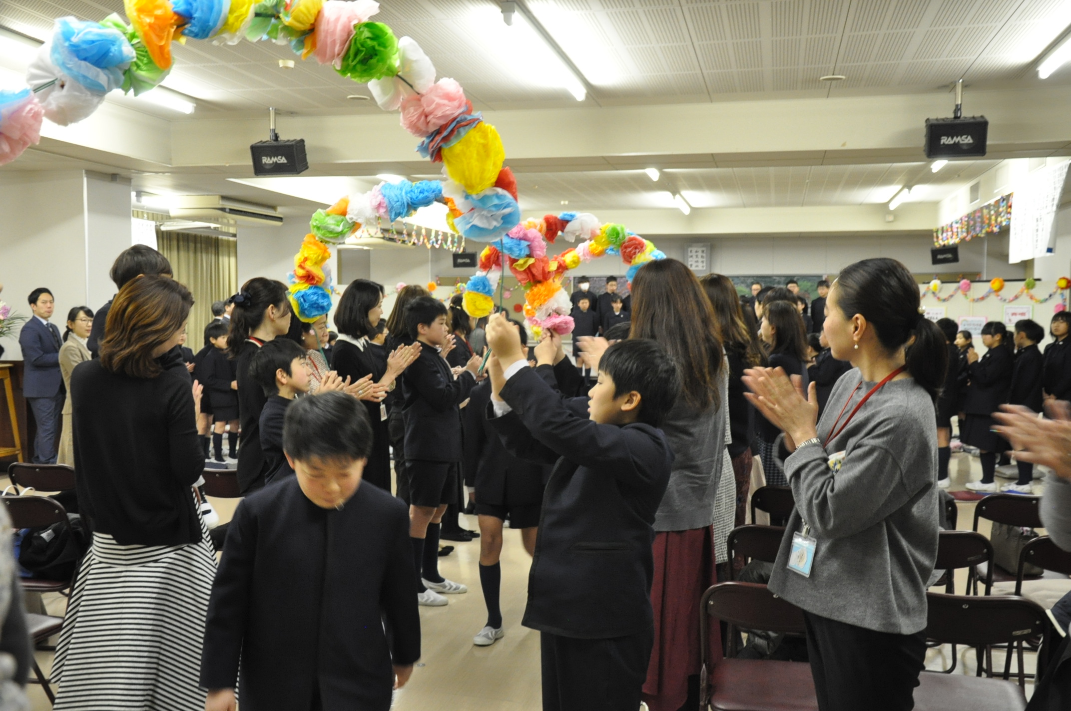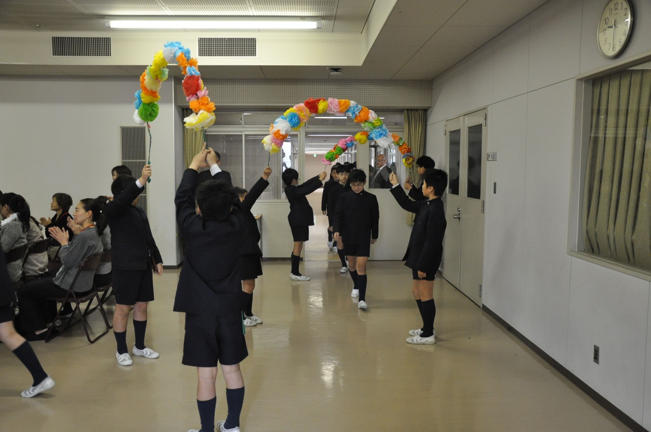 在校生,保護者に見送られて退場しました。