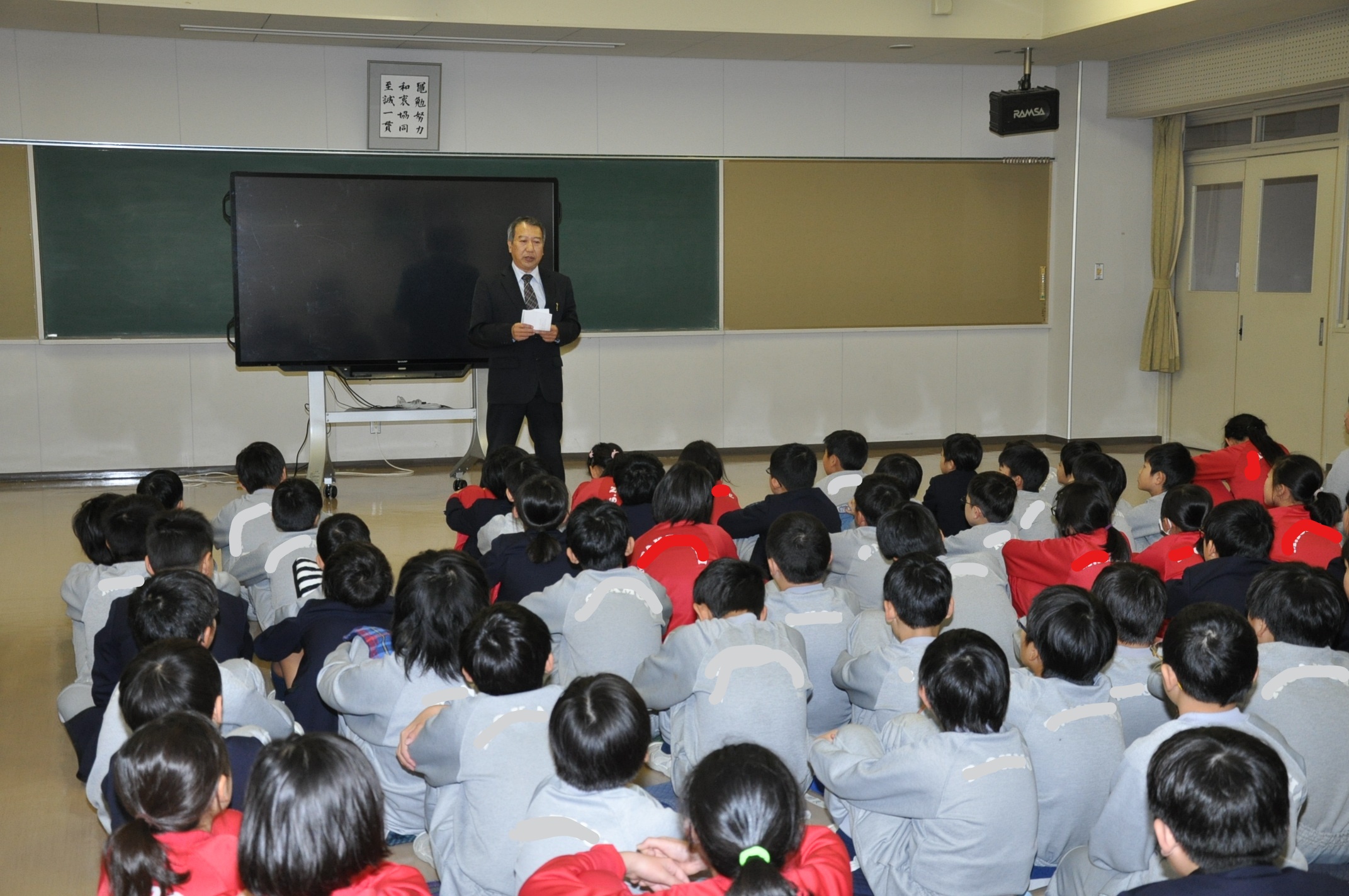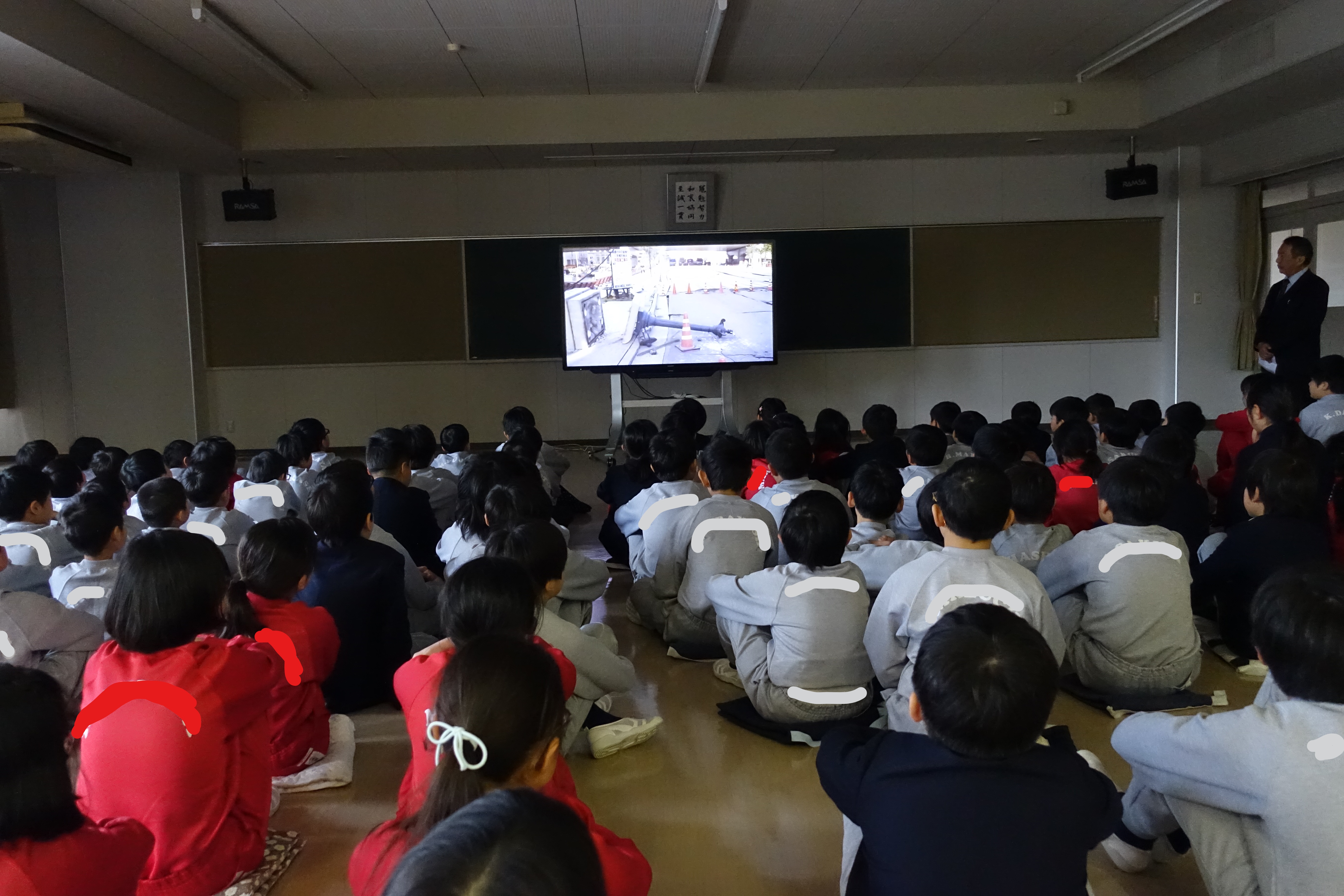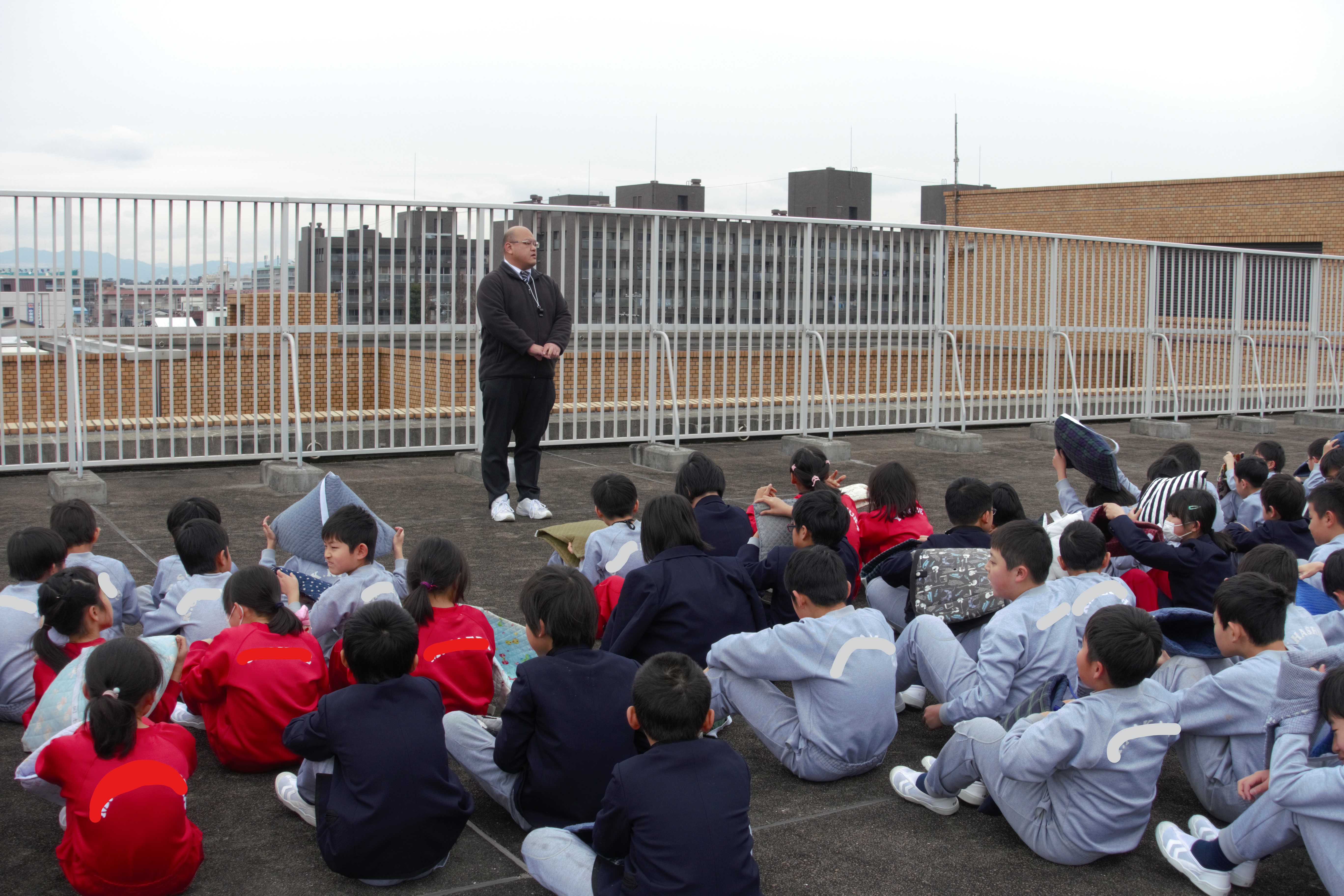 学校近くの二見公園へ一度避難し、大津波警報が発令されたということで、再度小学校の屋上へ避難しました。震災時の町の様子の写真を見て学習し、校長先生から当時の甲子園学院小学校や西宮市の様子のお話を聞きました。