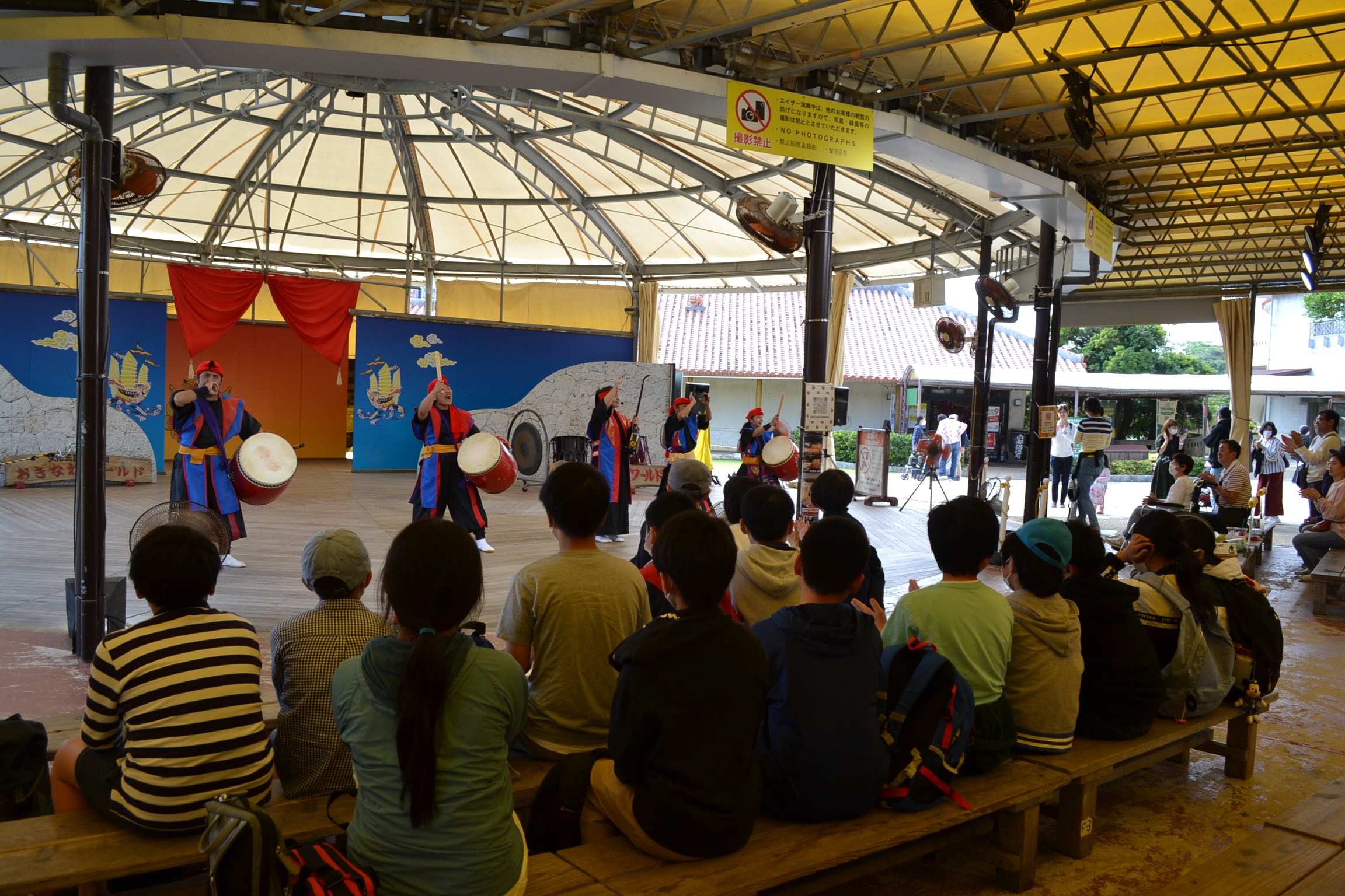 そして、午後は「おきなわワールド」。玉泉洞で大自然の神秘に触れたあと、本場のエイサーを鑑賞しました。また、紅型やガラス細工などの体験もできました。