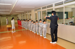 廊下で1列に並ぶ練習