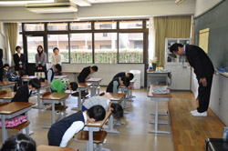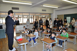 子どもたちは,学用品の置き場所や挨拶の仕方を学び,入学式の練習をしました。