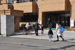 校門で「おはようございます」