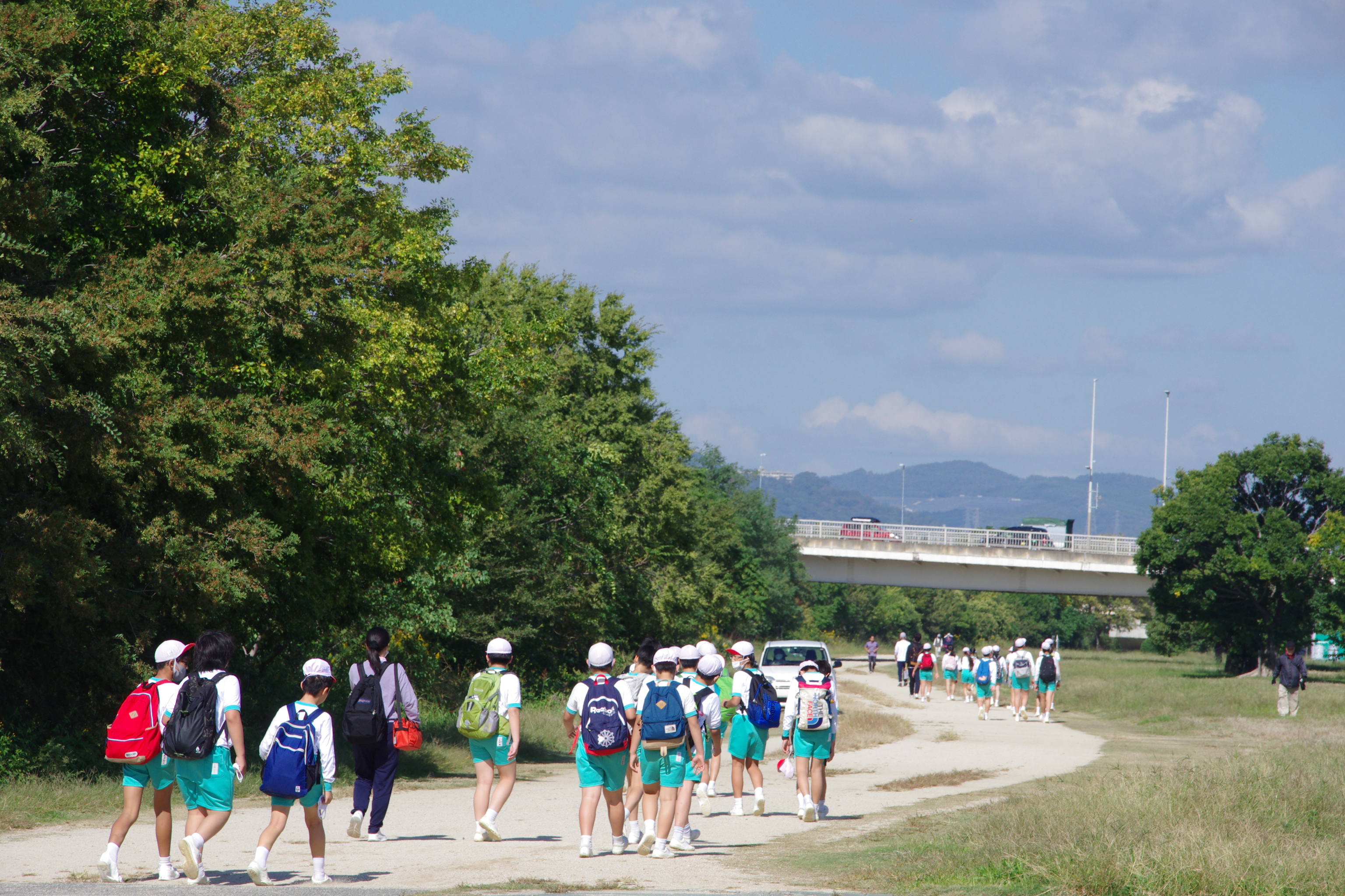 遠足[投稿日:2020年10月26日] 天気に恵まれ、秋の季節を感じながら学校から往復約8キロの道のりを歩きました。1・2年生、3・4年生、5・6年生に分かれて班で行動しました。武庫川の河川敷を北上し、尼崎市にある「西武庫公園」へ行きました。公園内で昼食をとった後、ボール遊びや鬼ごっこ、遊具など様々な遊びをして楽しみました。 一覧へ戻る