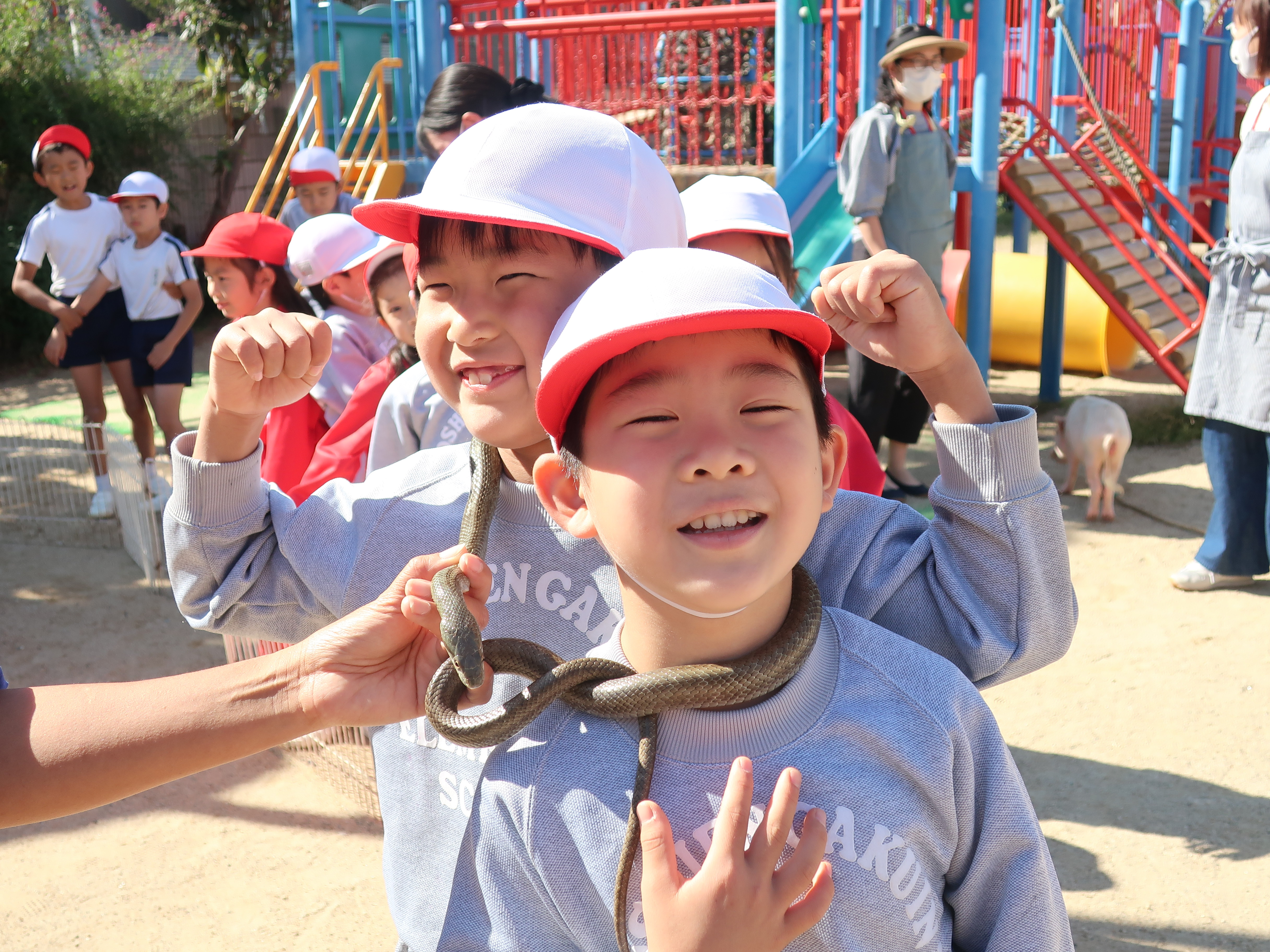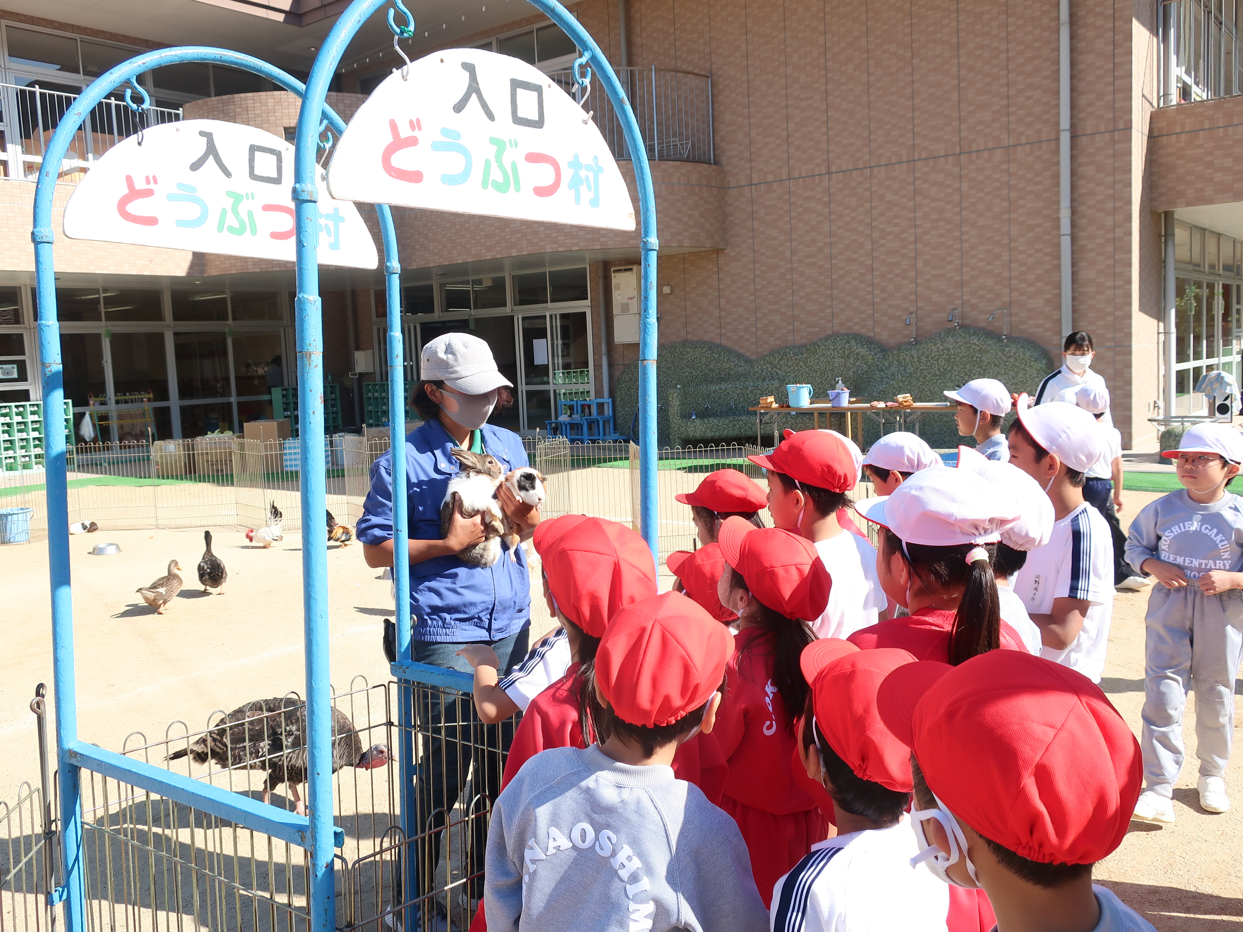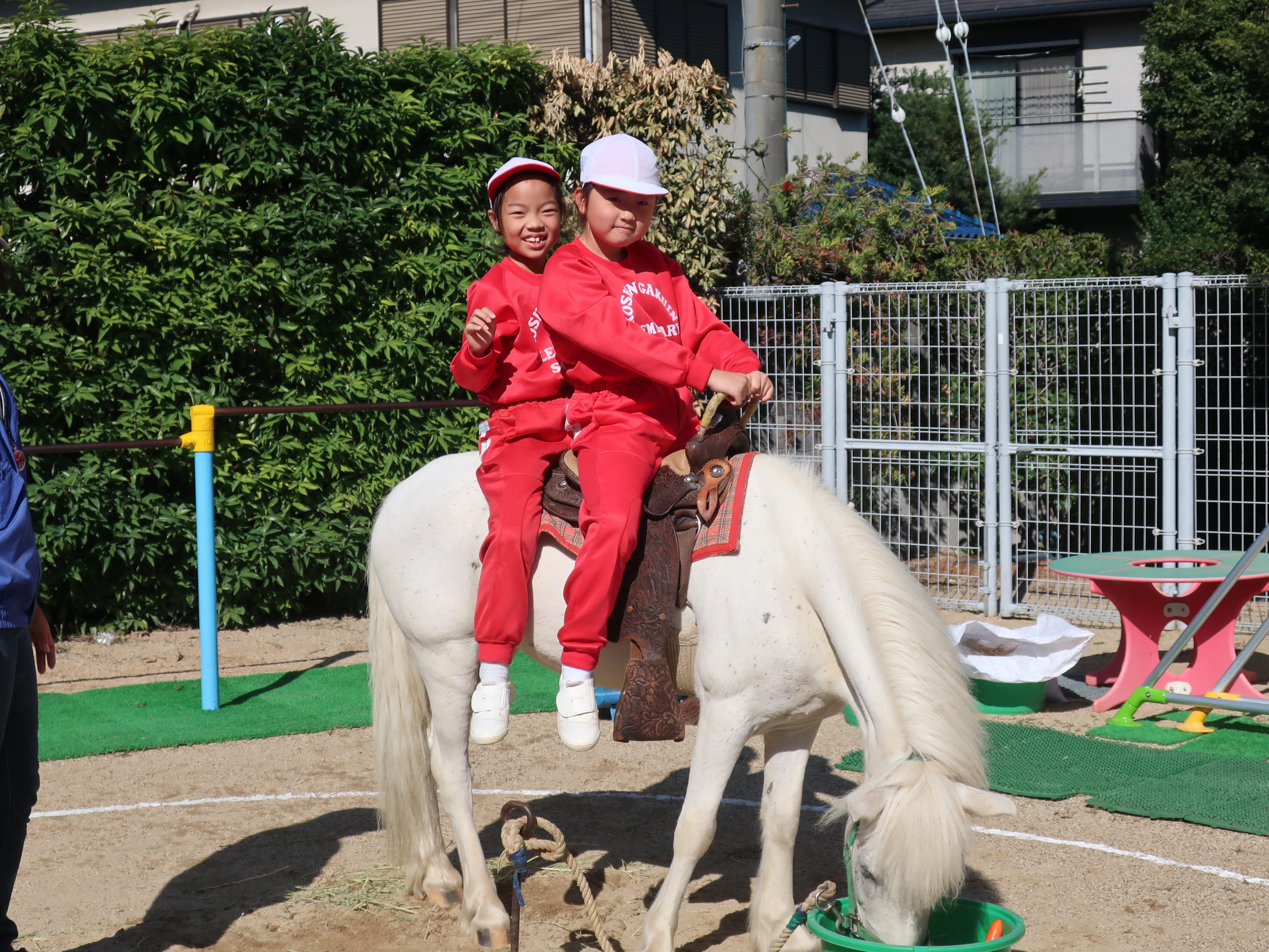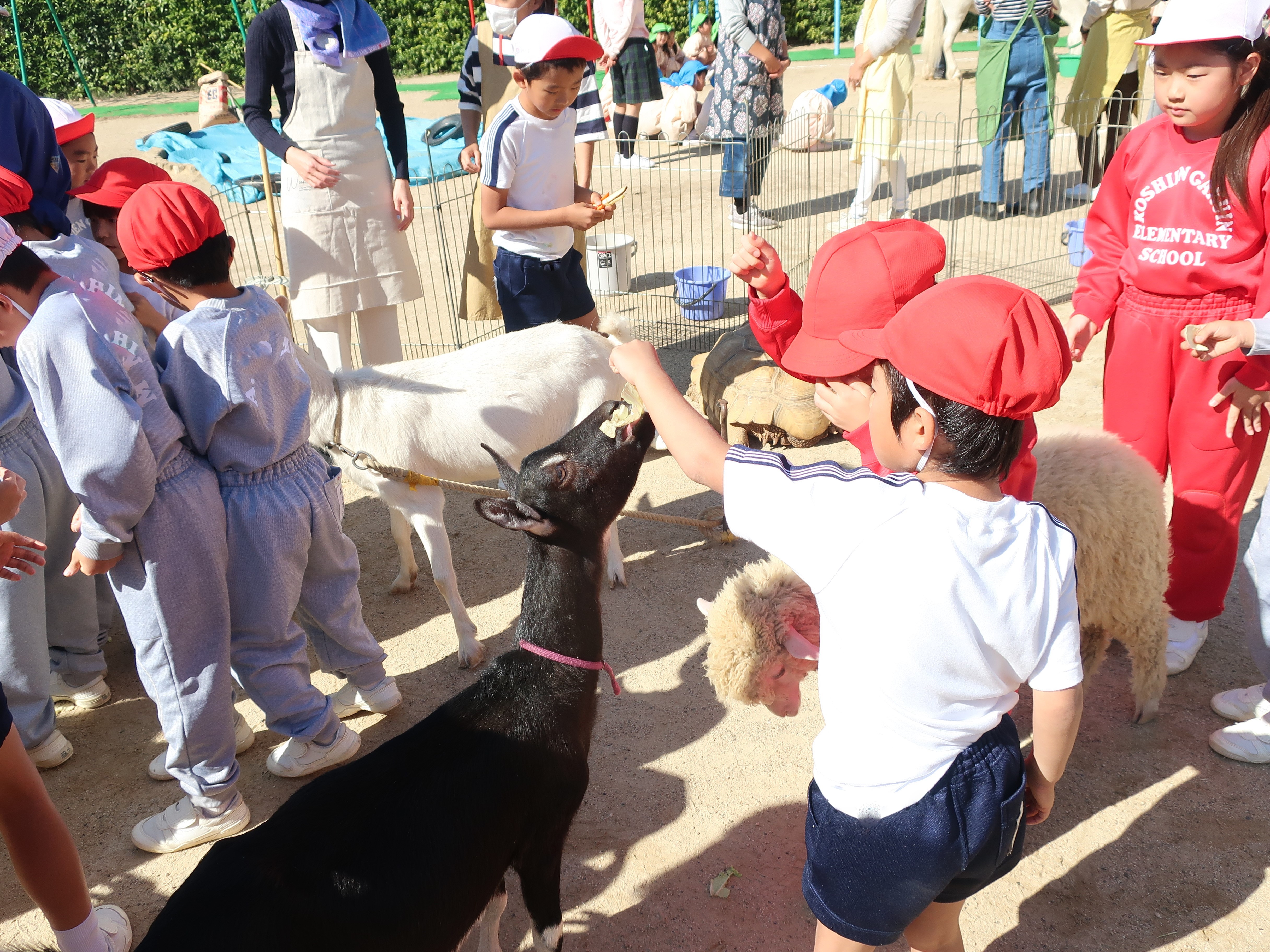 1・2年生 ふれあい動物村[投稿日:2020年10月27日] 学院幼稚園の園庭にて、ふれあい動物村を開催しました。ポニーに乗ったり、ヤギやウサギにえさを与えたりする等、たくさんのかわいい動物と触れ合いました。 一覧へ戻る