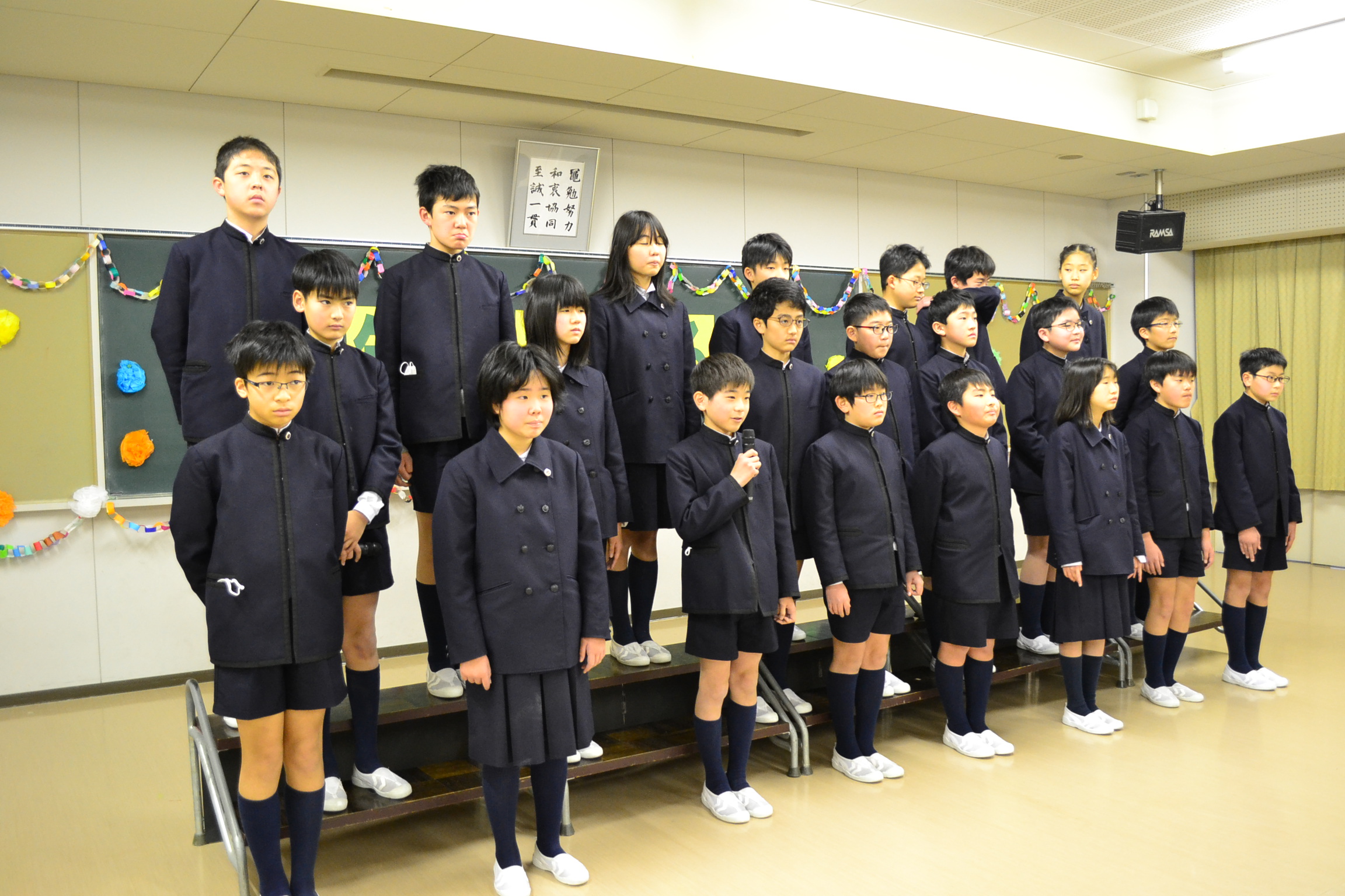 会終了後、習字クラブで「準優待生」に認定された6年生2名の表彰式を行いました。よくがんばりました。