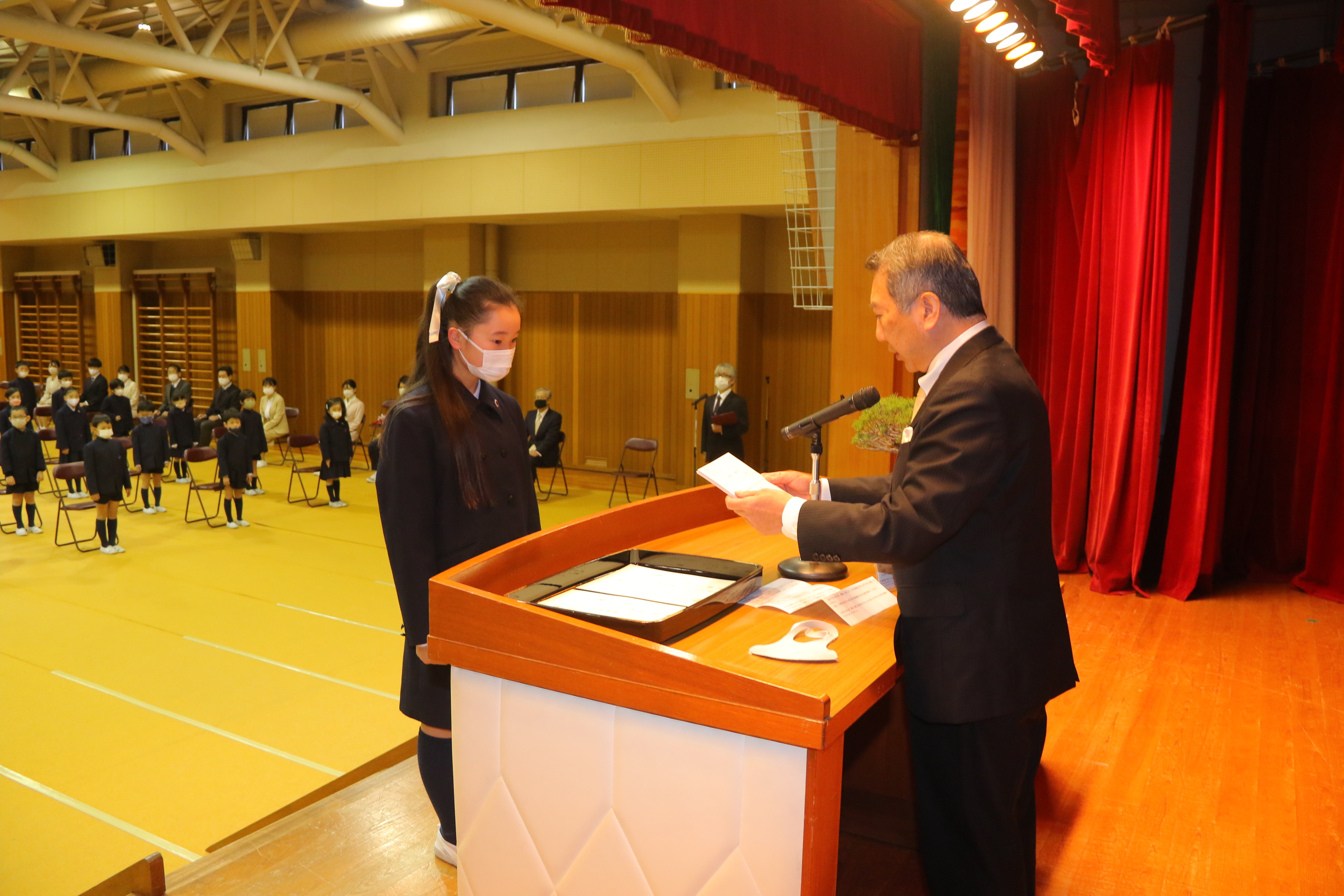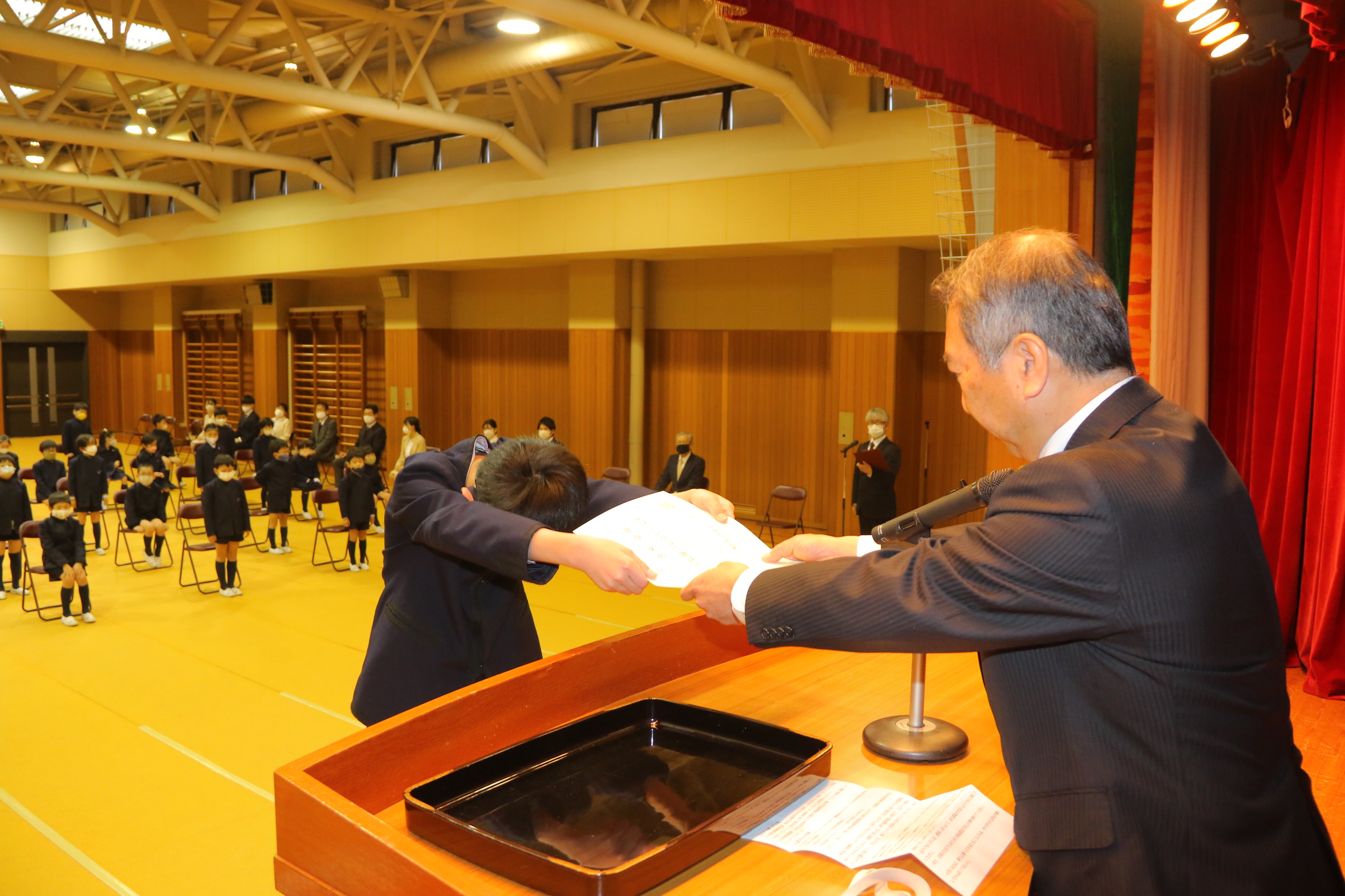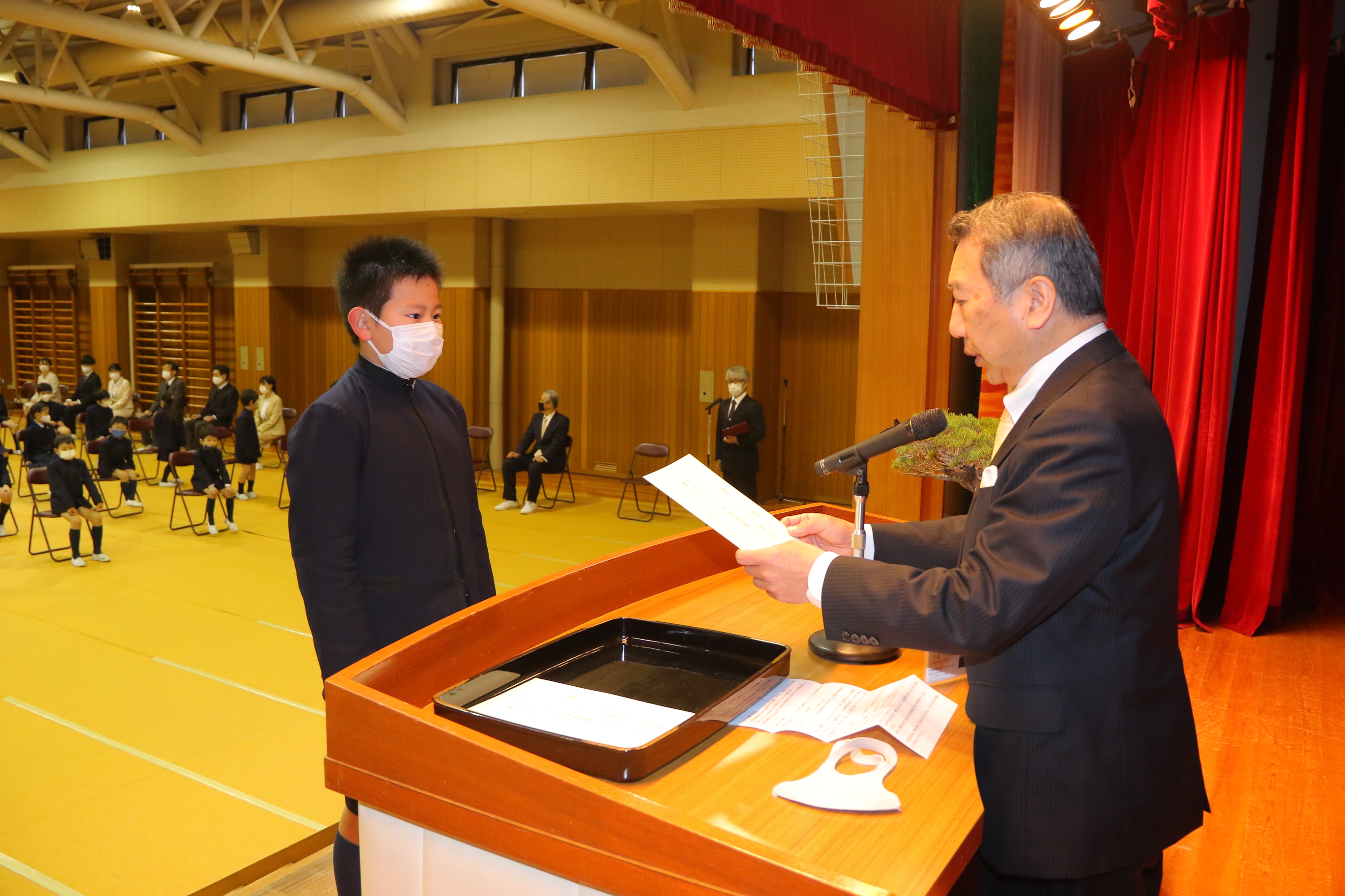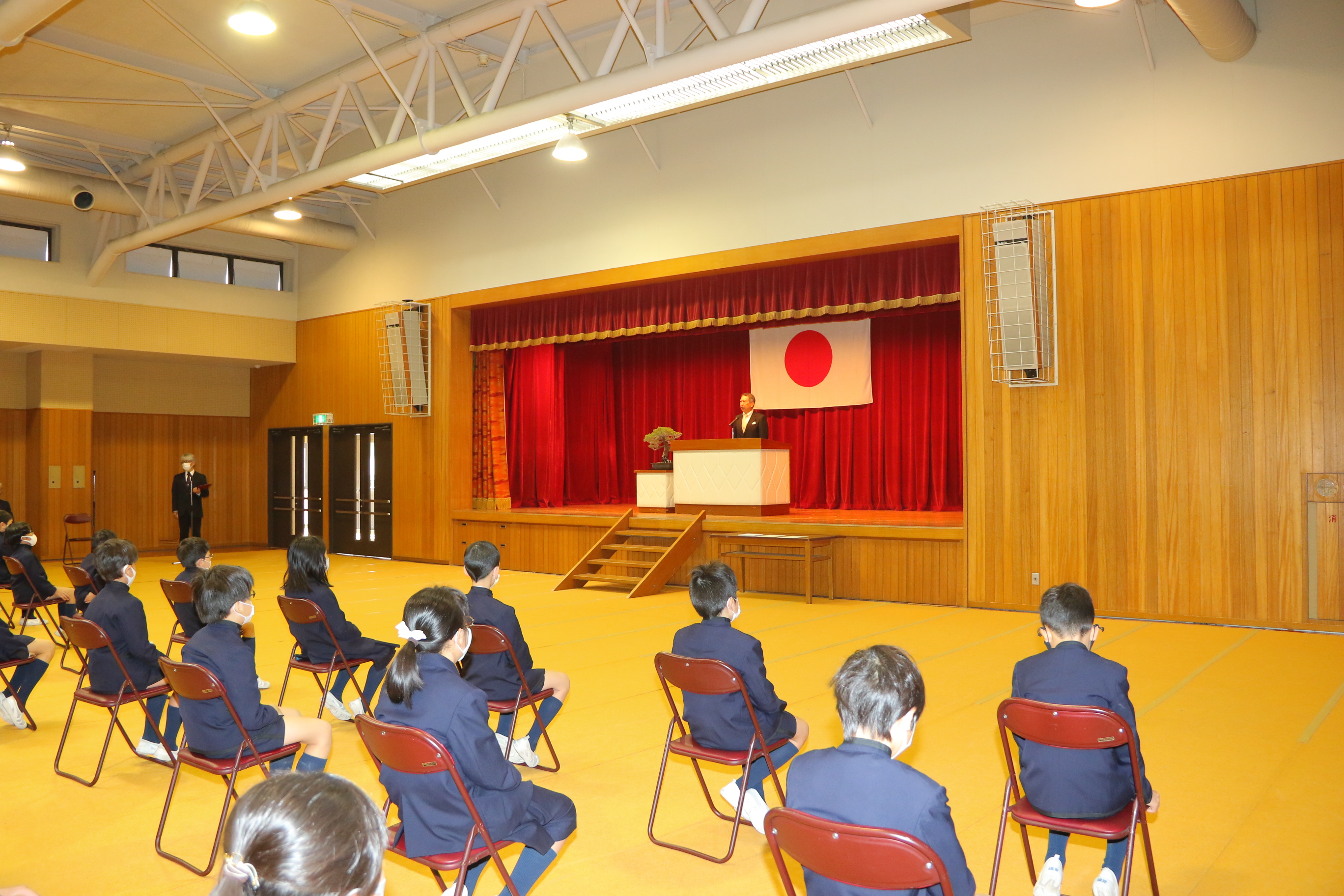 修了式[投稿日:2021年03月19日] 令和3年3月19日(金),令和2年度の修了式を行いました。新型コロナウイルス感染拡大防止のため、児童の座席の間隔を十分にとって実施しました。 国歌演奏 国歌演奏 通知表授与 皆勤賞授与 精勤賞授与 校長先生のお話 一覧へ戻る