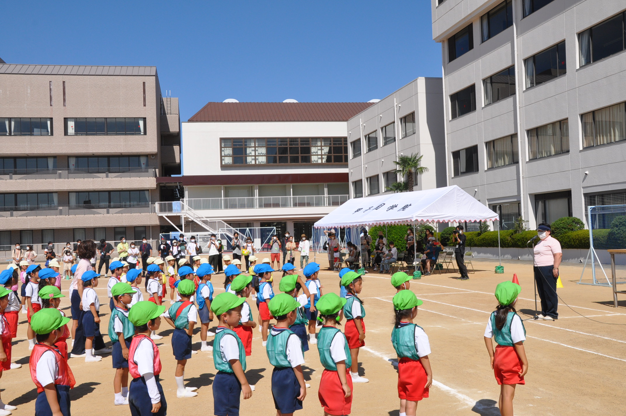 新型コロナウイルス感染防止の観点から,幼小あわせて5つの部に分け,参観者数を制限しての開催としました。