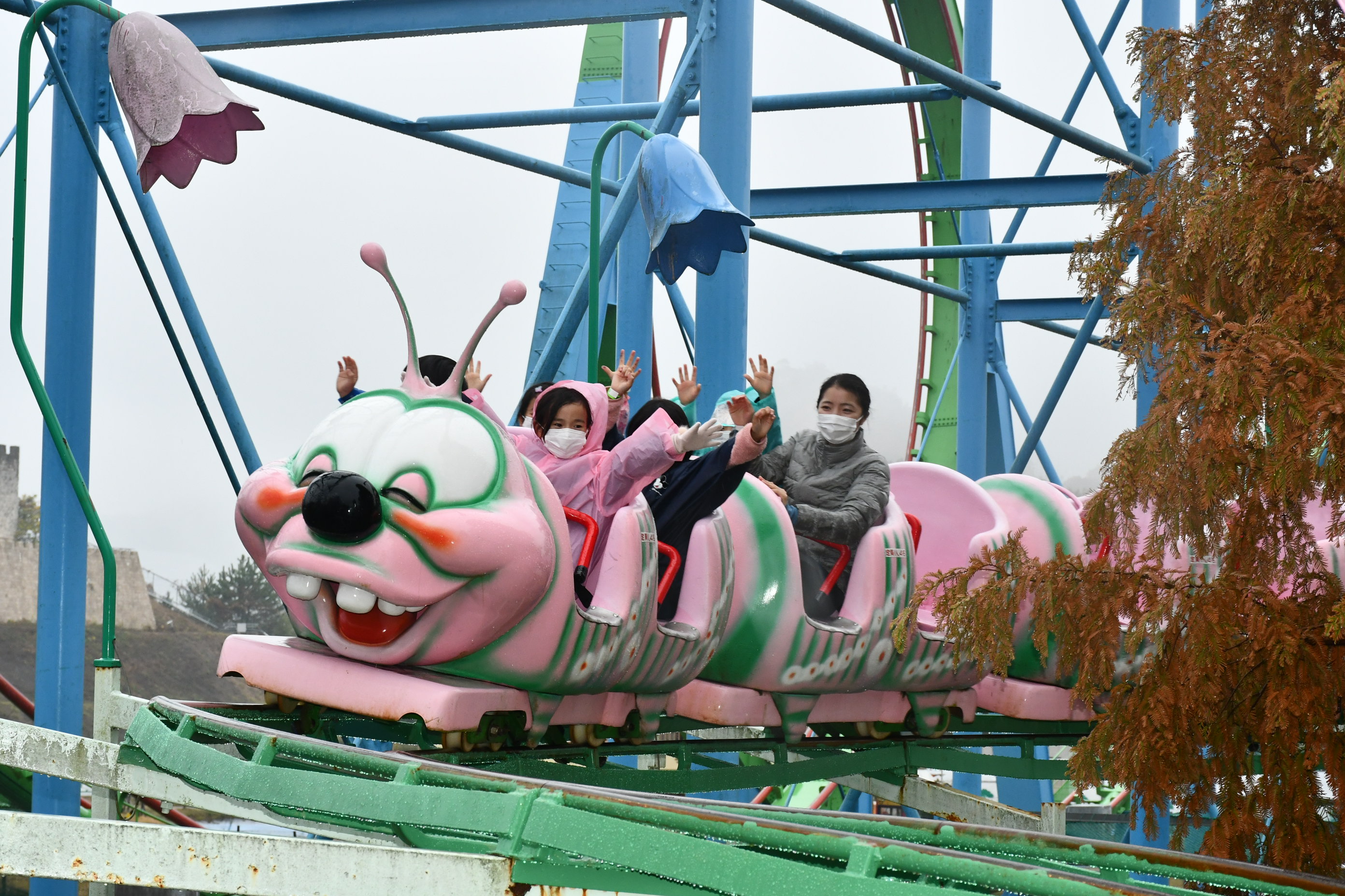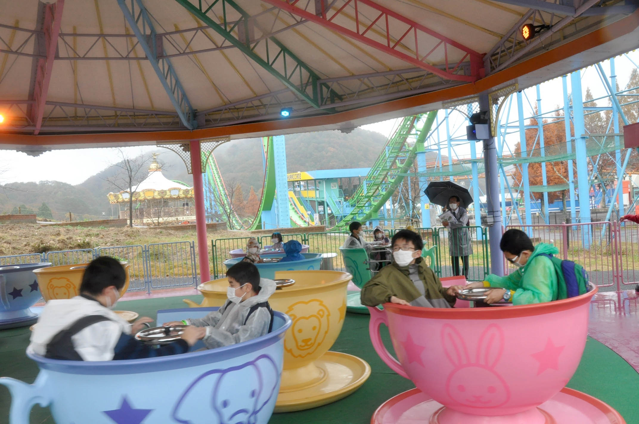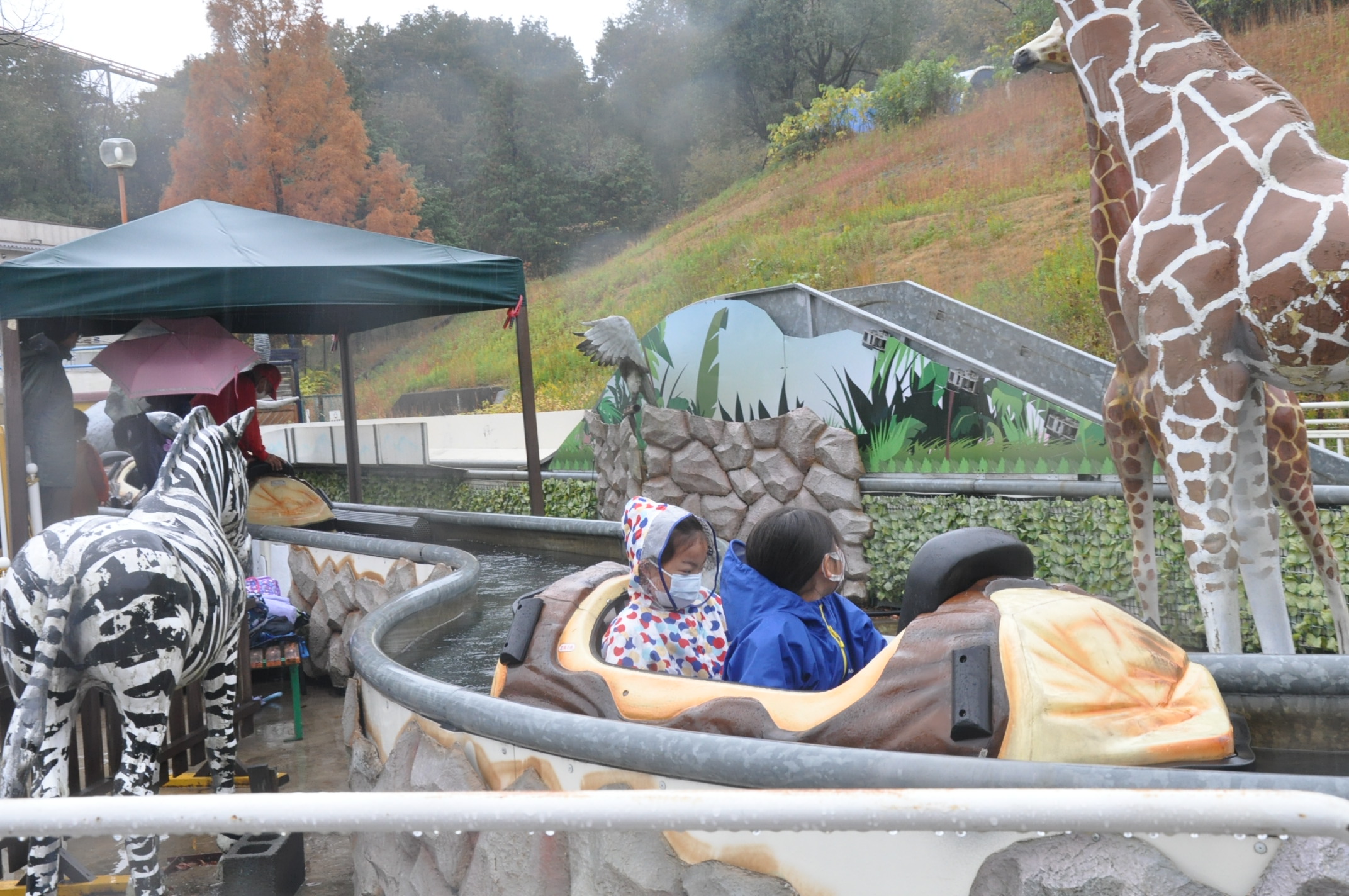 天気は残念ながら雨模様でしたが,子どもたちは様々なアトラクションを楽しみ,ドライブスルーでのサファリでは間近で見る動物たちに歓声を上げていました。
