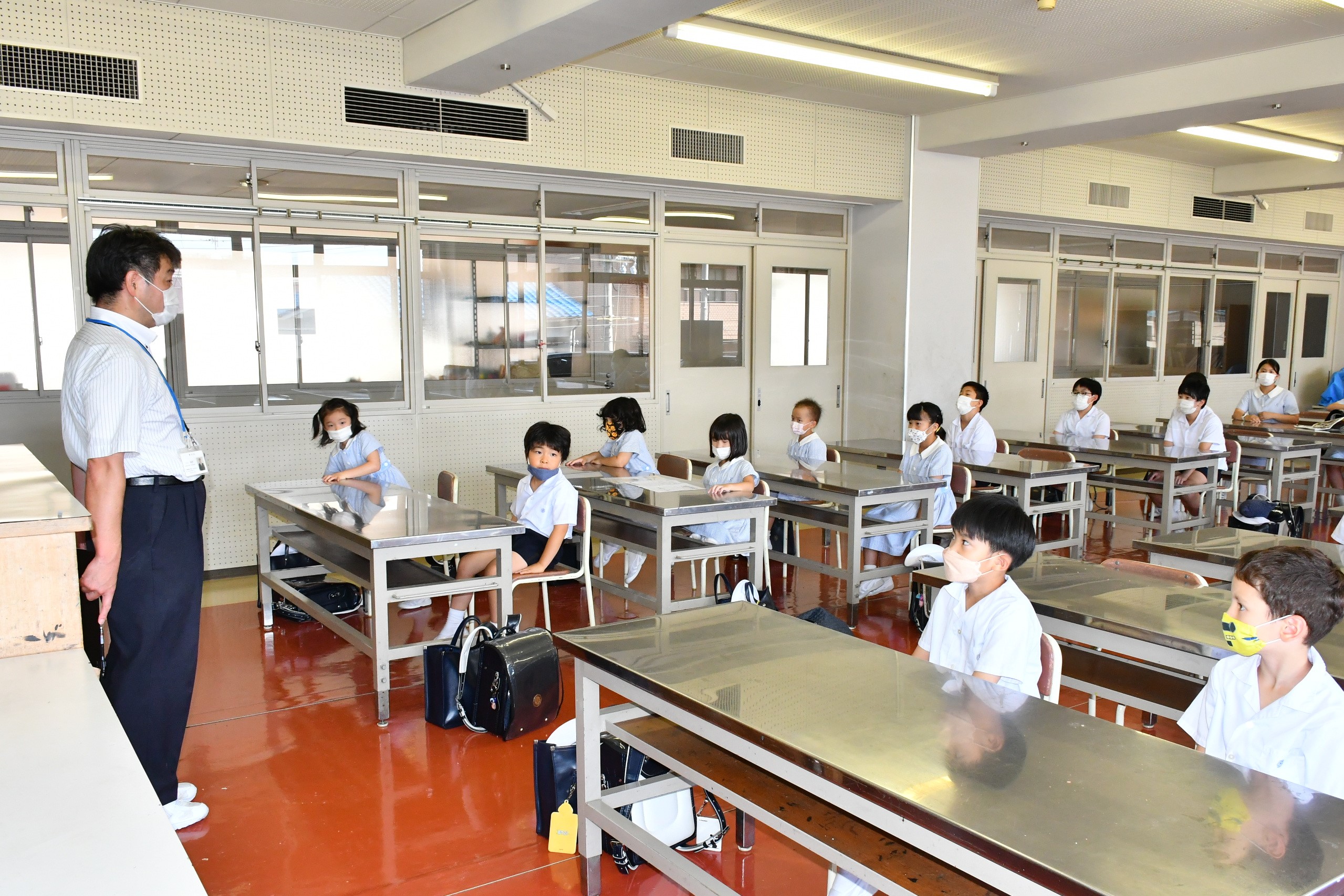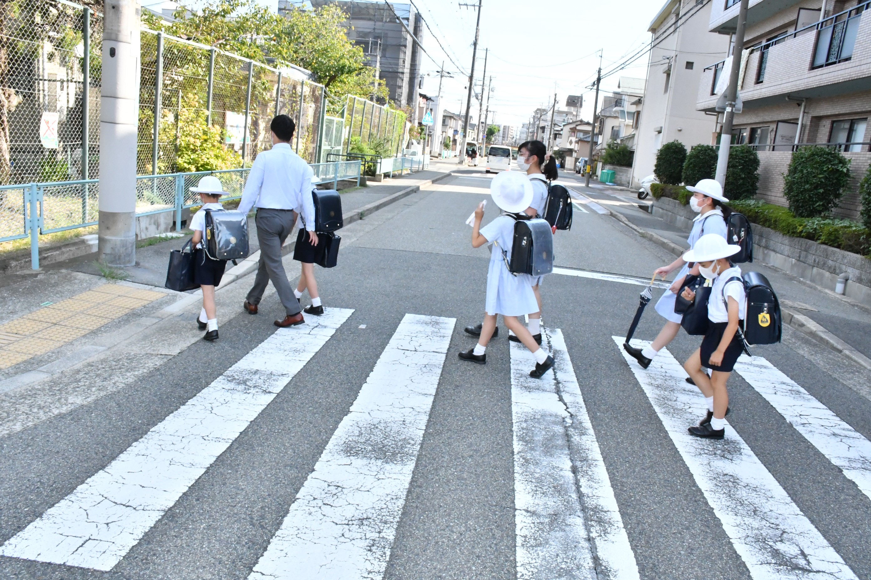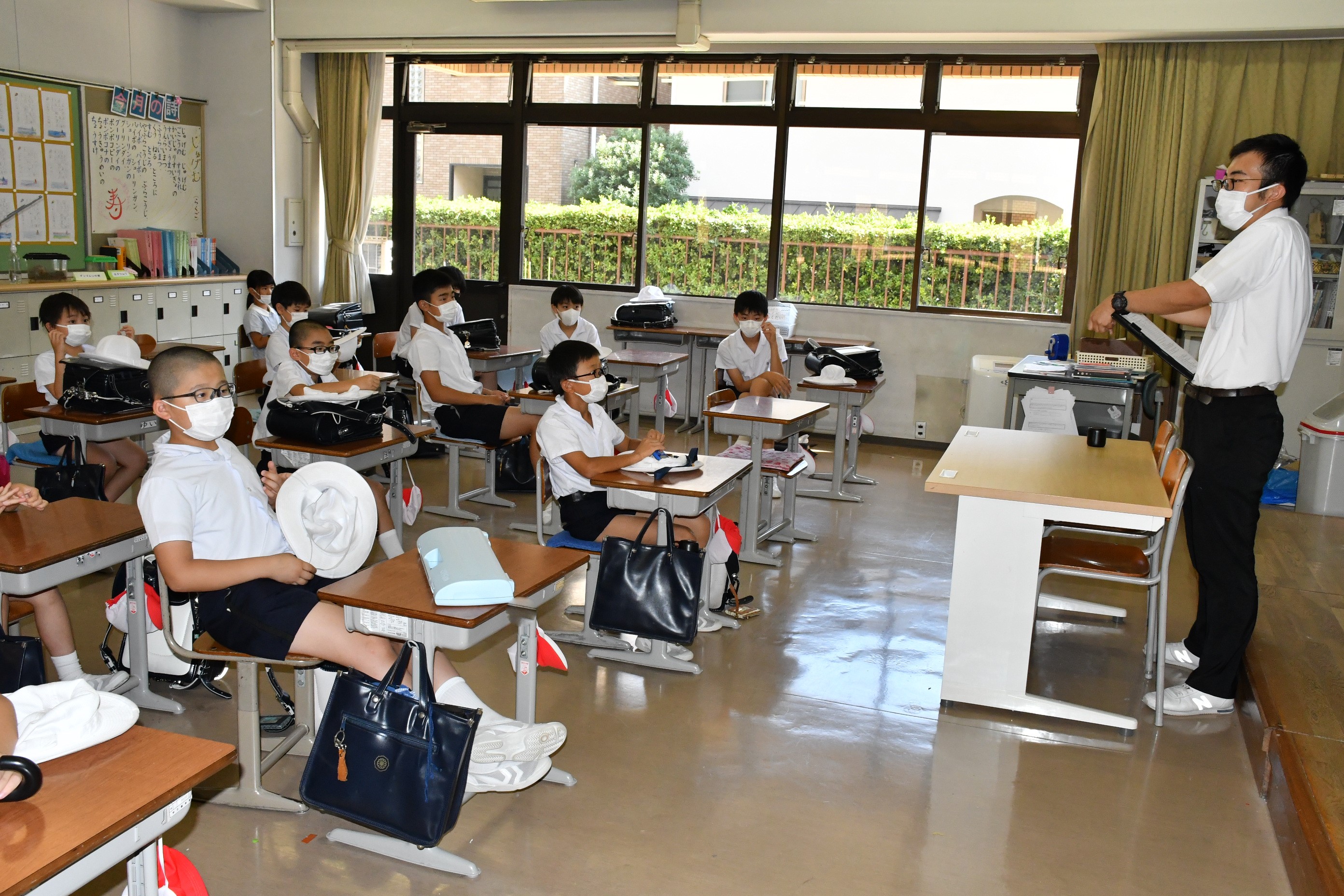 9月13日(火)、集団下校を実施しました。利用交通機関別に分かれ、指導を受けた後に下校しました。