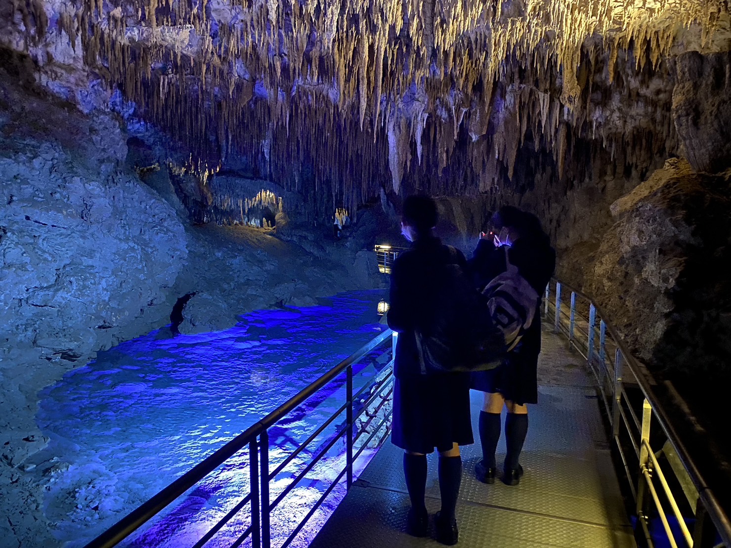 最終日は、朝から「おきなわワールド」へ行きました。玉泉洞では大自然の神秘に触れることができ、紅型や琉球ガラスの体験もできました。