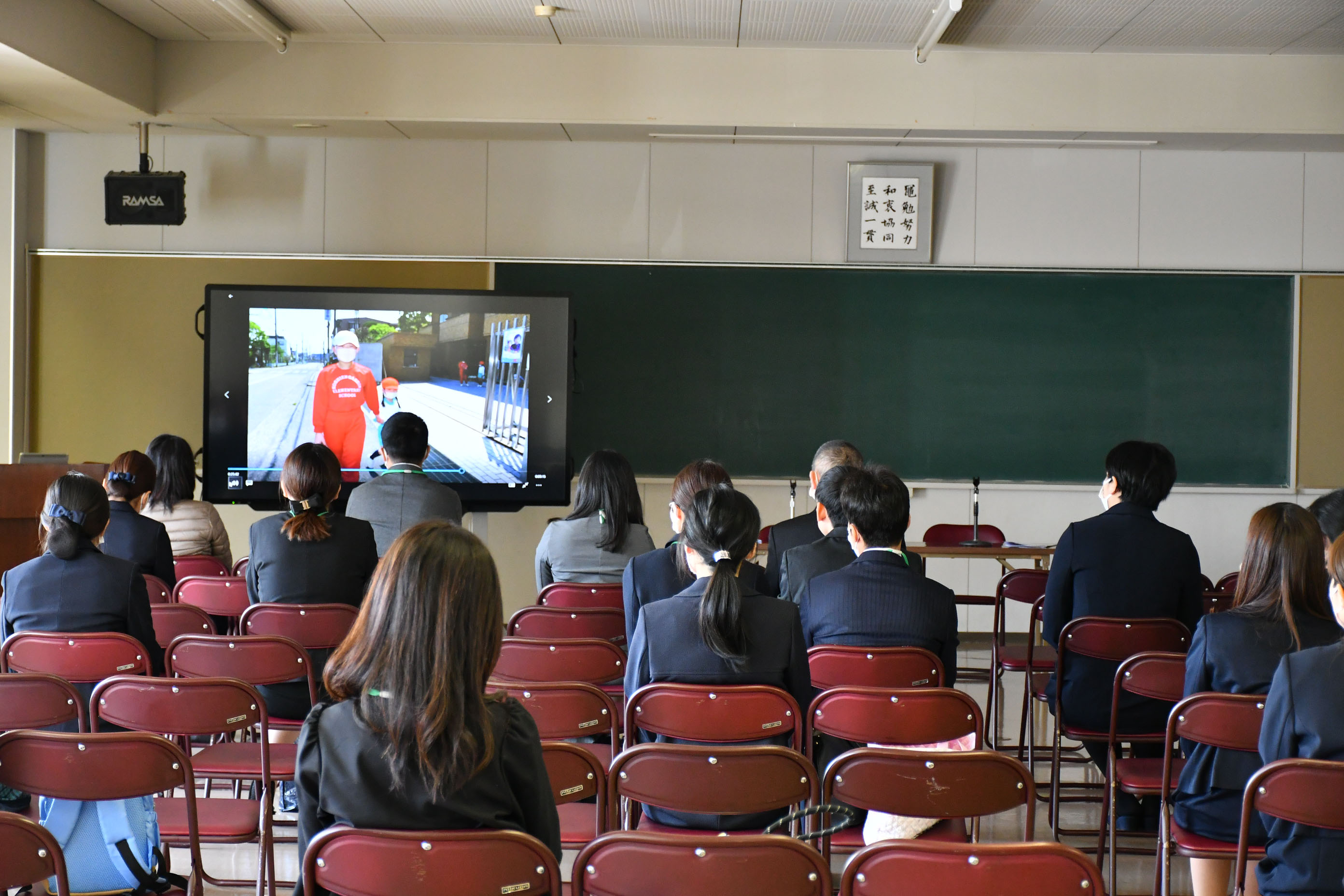子どもたちがプレテストや体験学習をしている間に,保護者の方には学校紹介やテスト解説を聞いていただき,また学校内を見学していただきました。
