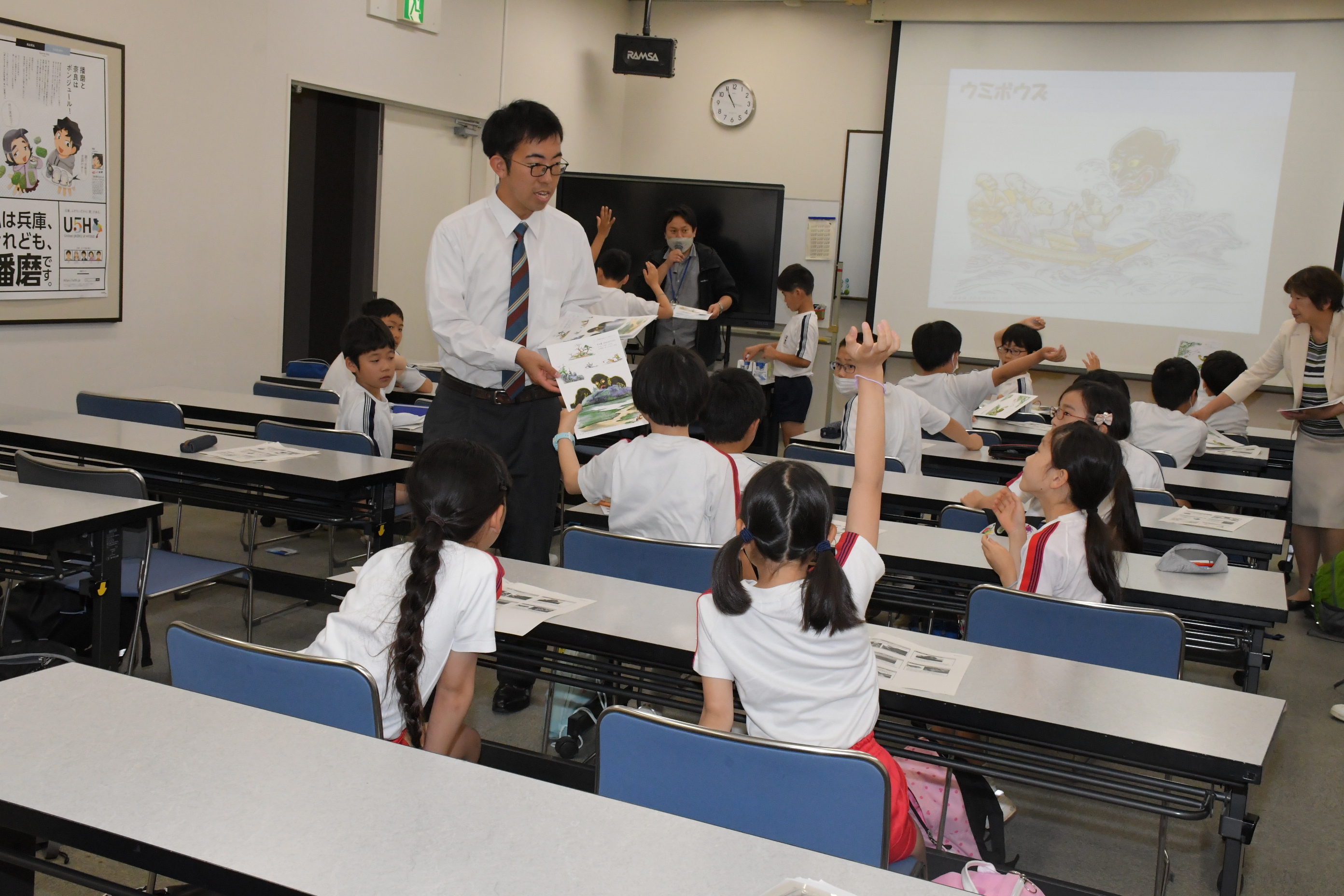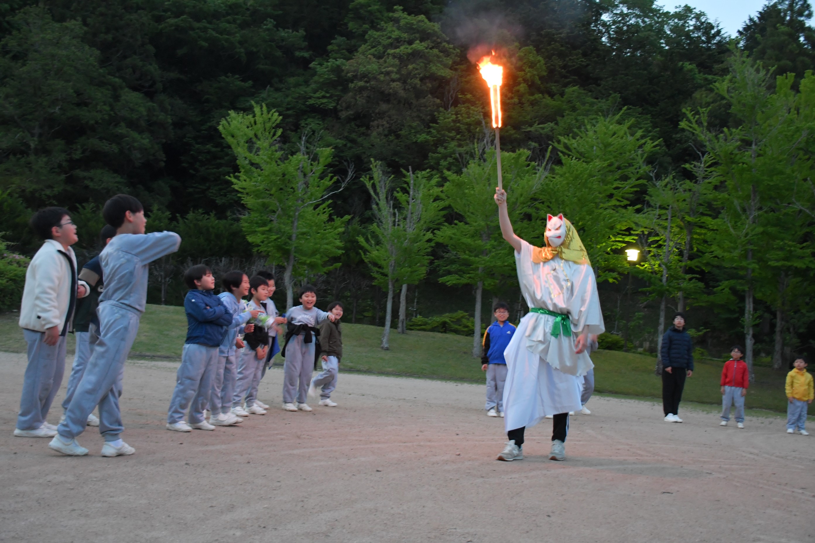 林間学校(1・3・4・6年)1日目[投稿日:2023年05月17日] 今日から1・3・4・6年生は、丹波篠山方面へ林間学校に来ています。午前は、兵庫県立人と自然の博物館でセミナーを受けたあと館内を見学しました。さまざまな生物の生態系に触れることができました。午後、ユニトピアささやまへ。夜にはキャンプファイヤーを行いました。立ち上る炎を囲み、歌やゲームを楽しみました。 出発式 出発式 人と自然の博物館 高学年セミナー 低学年セミナー アンモナイト作り 博物館内見学 火の神 登場 キャンプファイヤー 一覧へ戻る