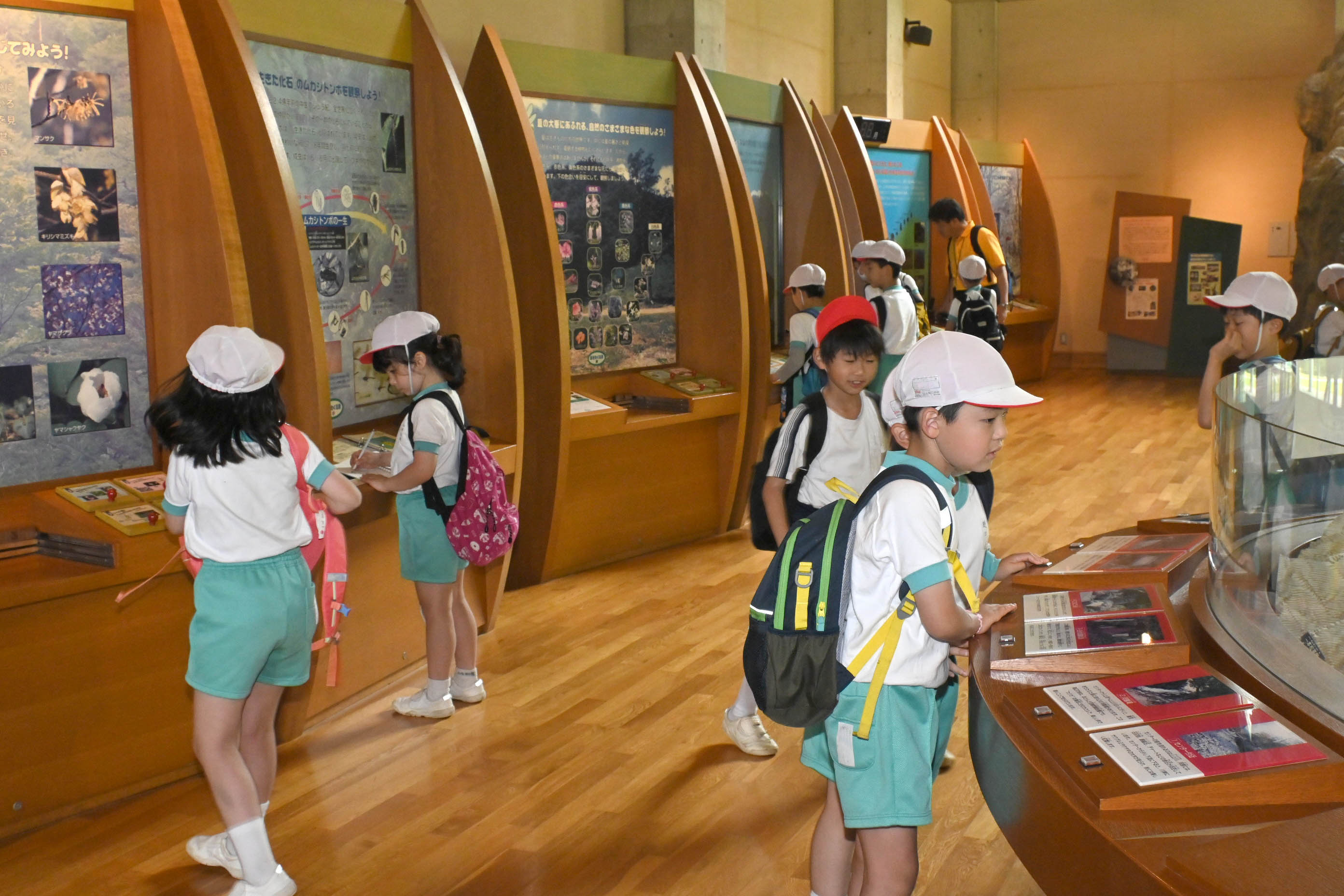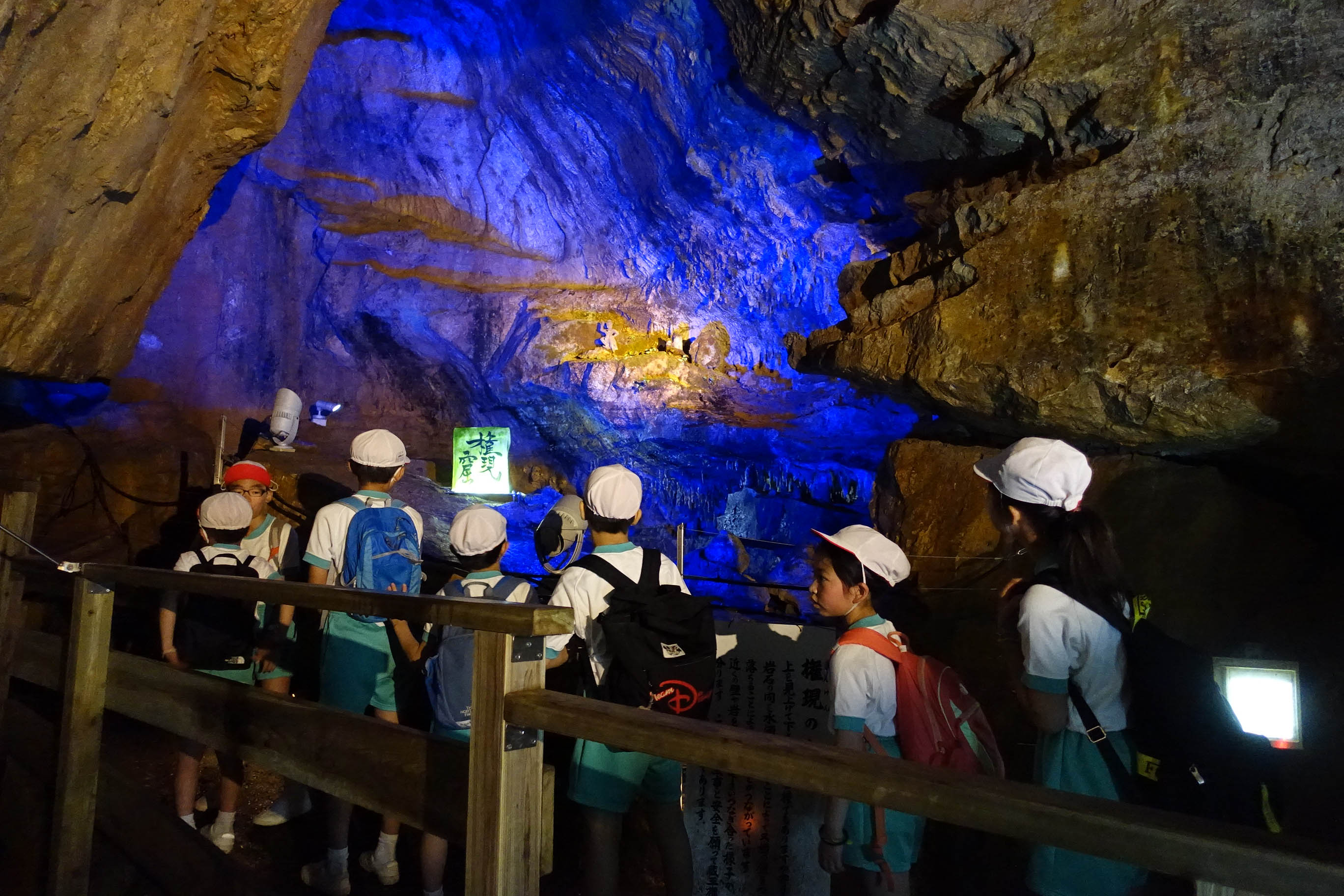 2日目のスタートは快晴。今日の大きな活動はハイキングです。朝食をしっかりとった後,まずは面不動鍾乳洞へ。中はヒンヤリ涼しく,気持ちよく見学できました。
