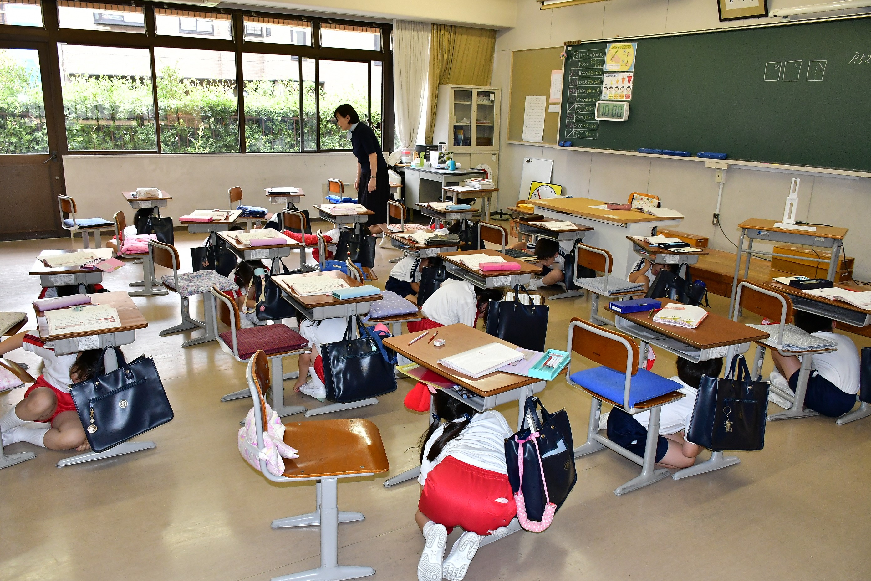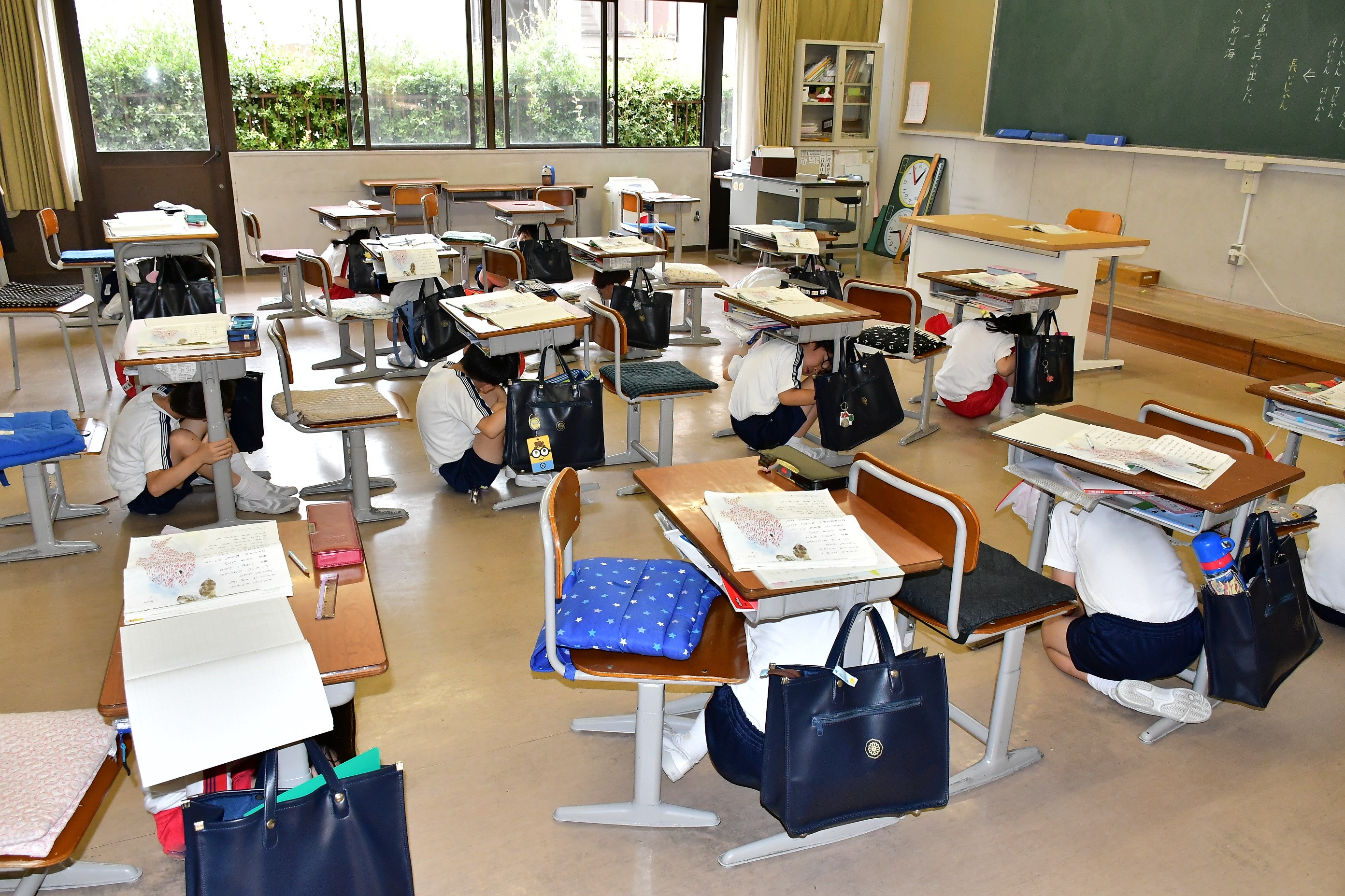 6月15日(木)、「緊急地震速報訓練」を全国一斉に実施されるのに合わせて、西宮市では南海トラフ巨大地震に備えたシェイクアウト訓練が行われ、本校も訓練に参加しました。地震の際の安全行動である「まず低く、頭を守り、動かない」の姿勢を身につけ、防災意識を高めることの大切さを改めて確認することができました。