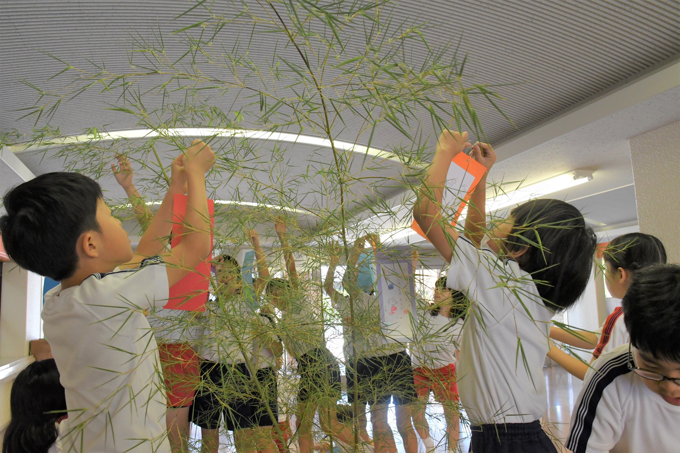 七夕に向け、短冊にそれぞれの願いを書きました。笹に託した子どもたちの願いが叶いますように…!
