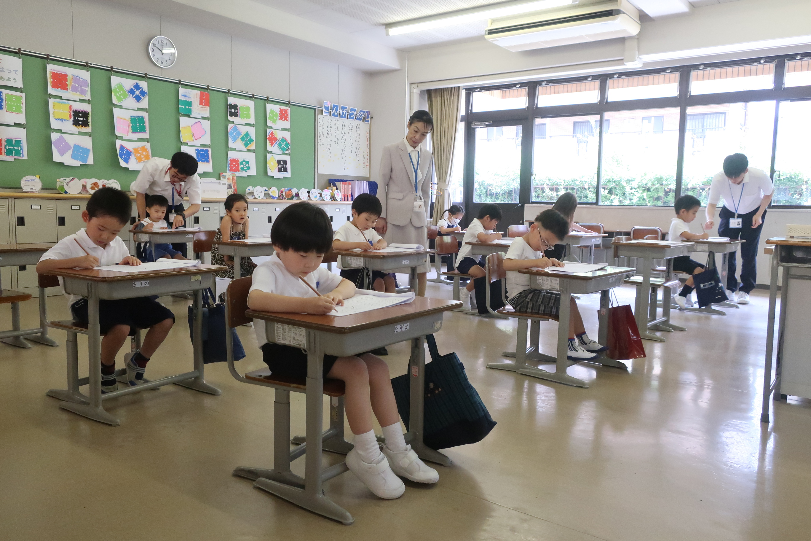 ◆子どもたちは、入試プレテスト(入試での筆記試験を想定した問題)を行ったあと、