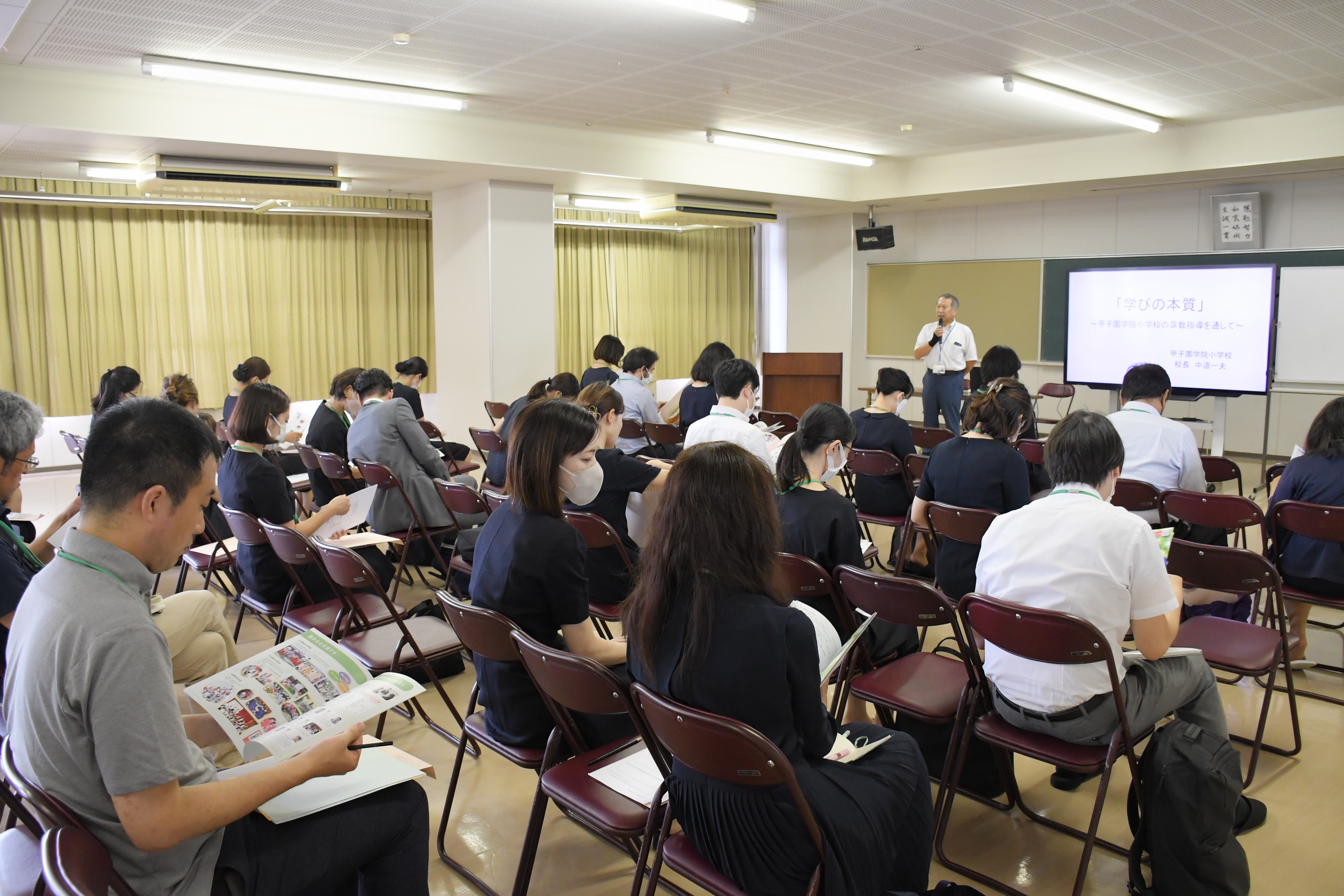 ◆保護者の方は、校長の教育講演会をお聴きいただきました。(演題「学びの本質」~甲子園学院小学校の算数指導を通して~)その後、校舎内見学や入試プレテスト問題解説も行いました。